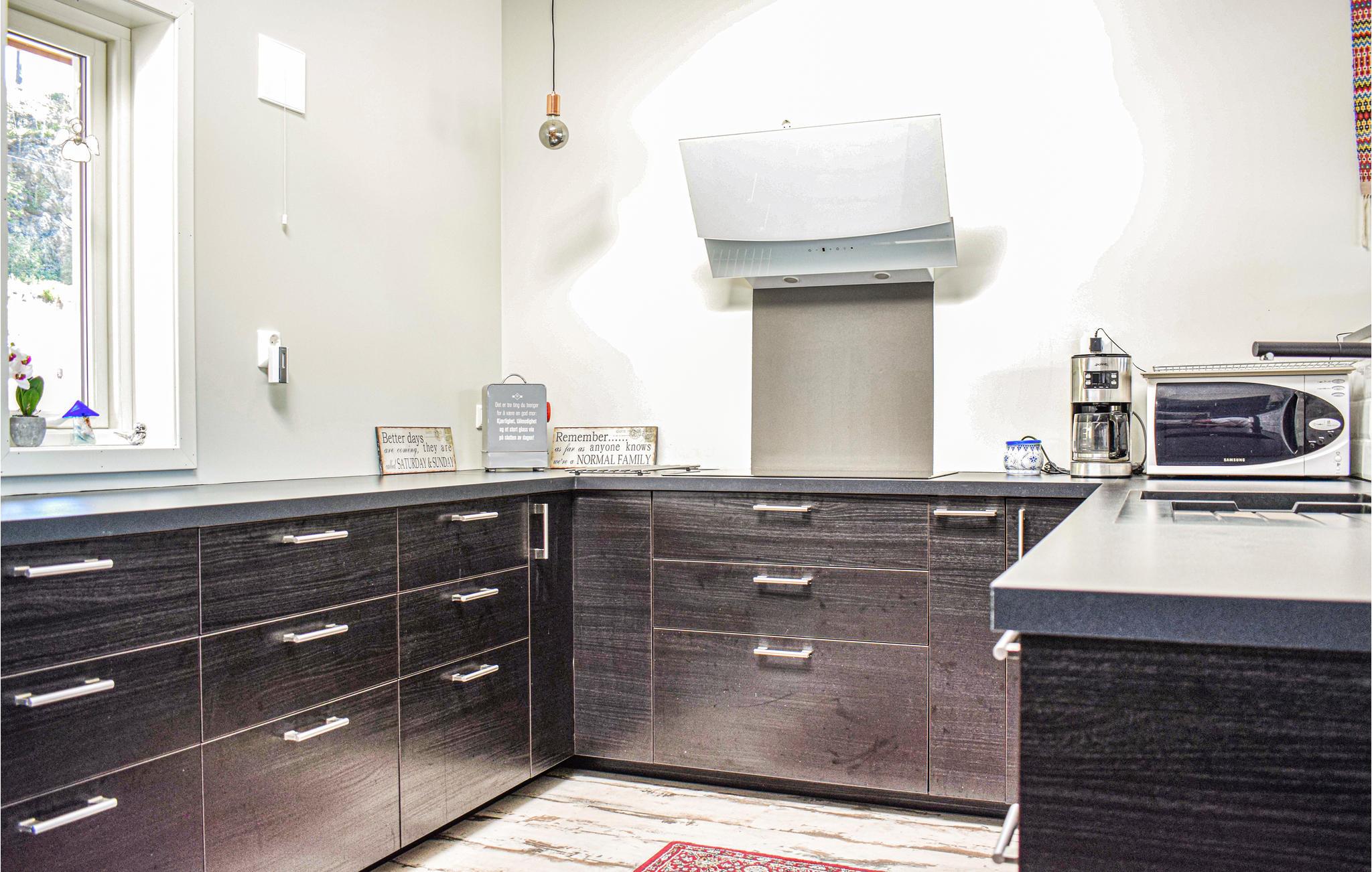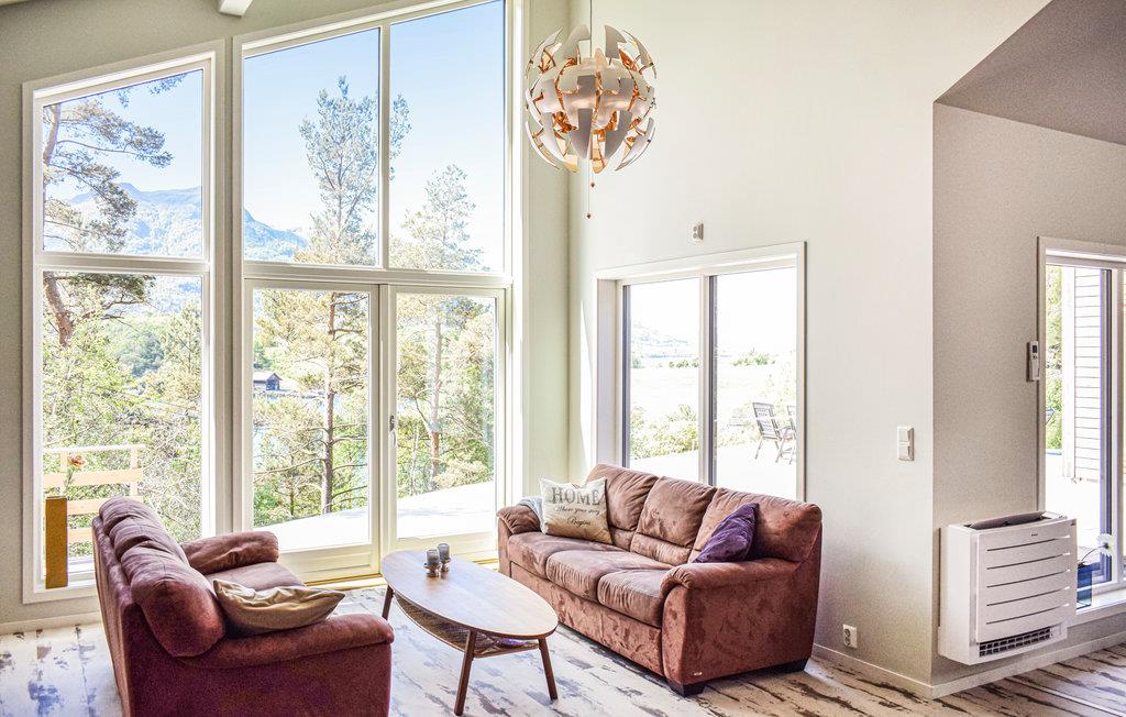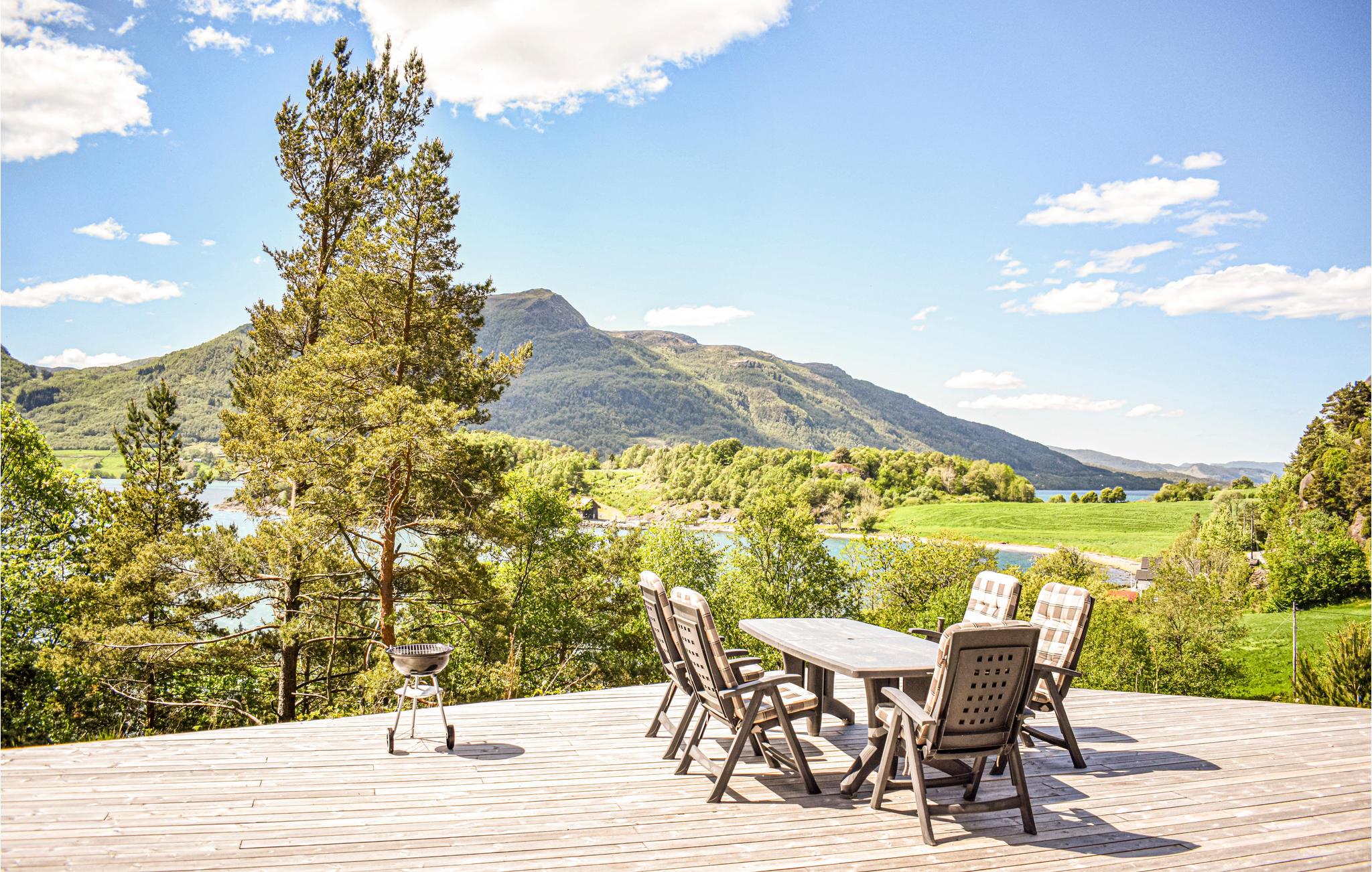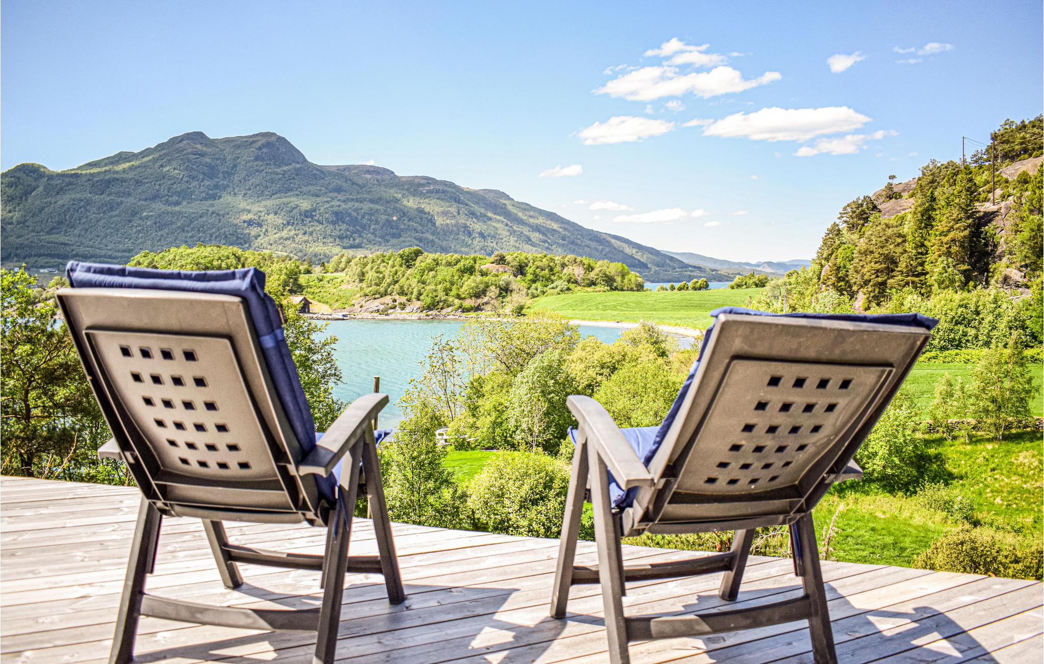 Dieses moderne und ansprechende Holzhaus erwartet seine Gäste am Wasser. Es ist geräumig und bietet Platz für den Urlaub mit einer größeren Gruppe oder mehreren Familien, die gerne in der Natur aktiv sind und die Nähe zum Wasser schätzen. Machen Sie es sich gemeinsam am Kaminofen gemütlich, planen Sie den nächsten Urlaubstag und genießen Sie den Blick auf den Fjord.