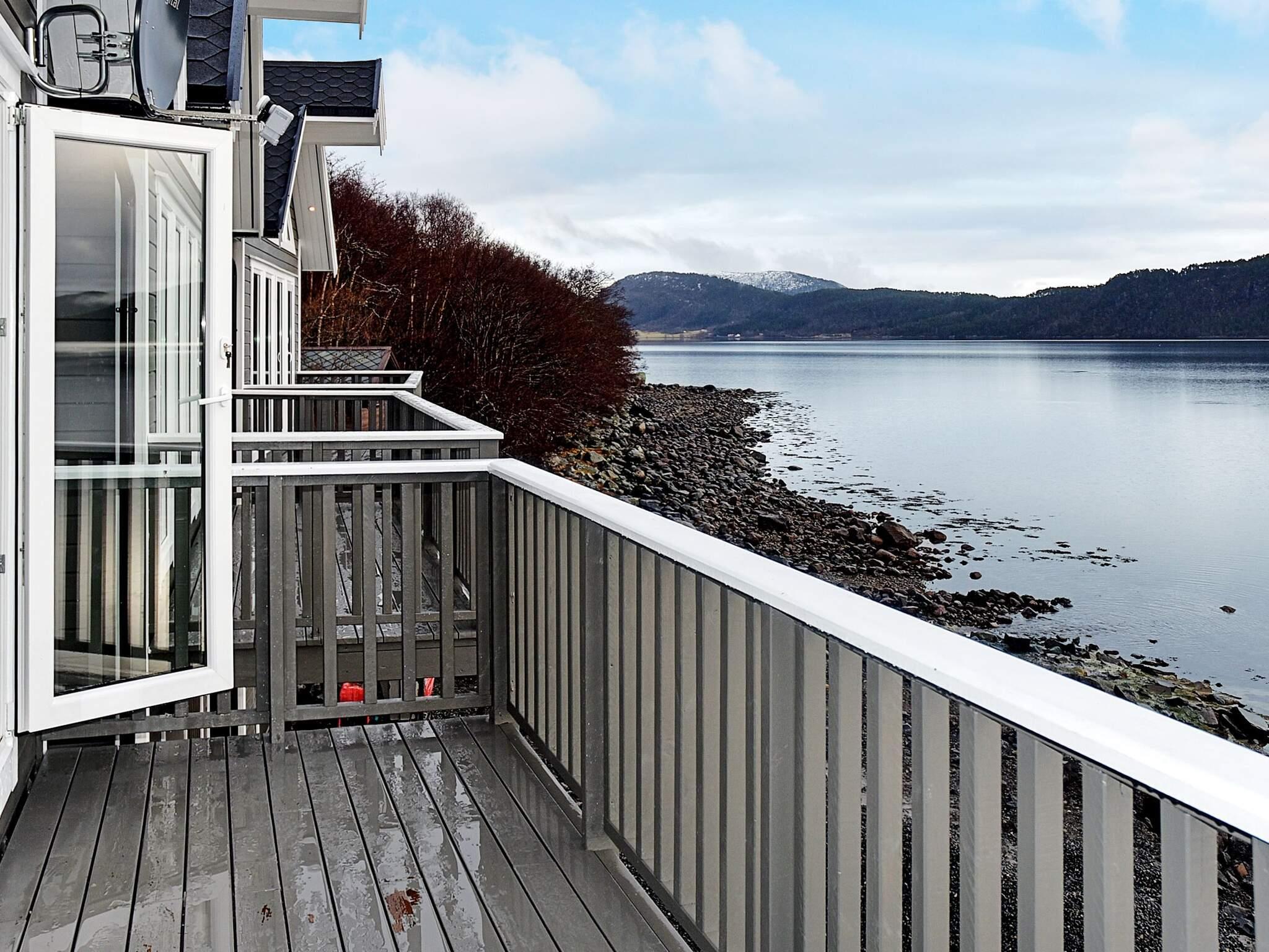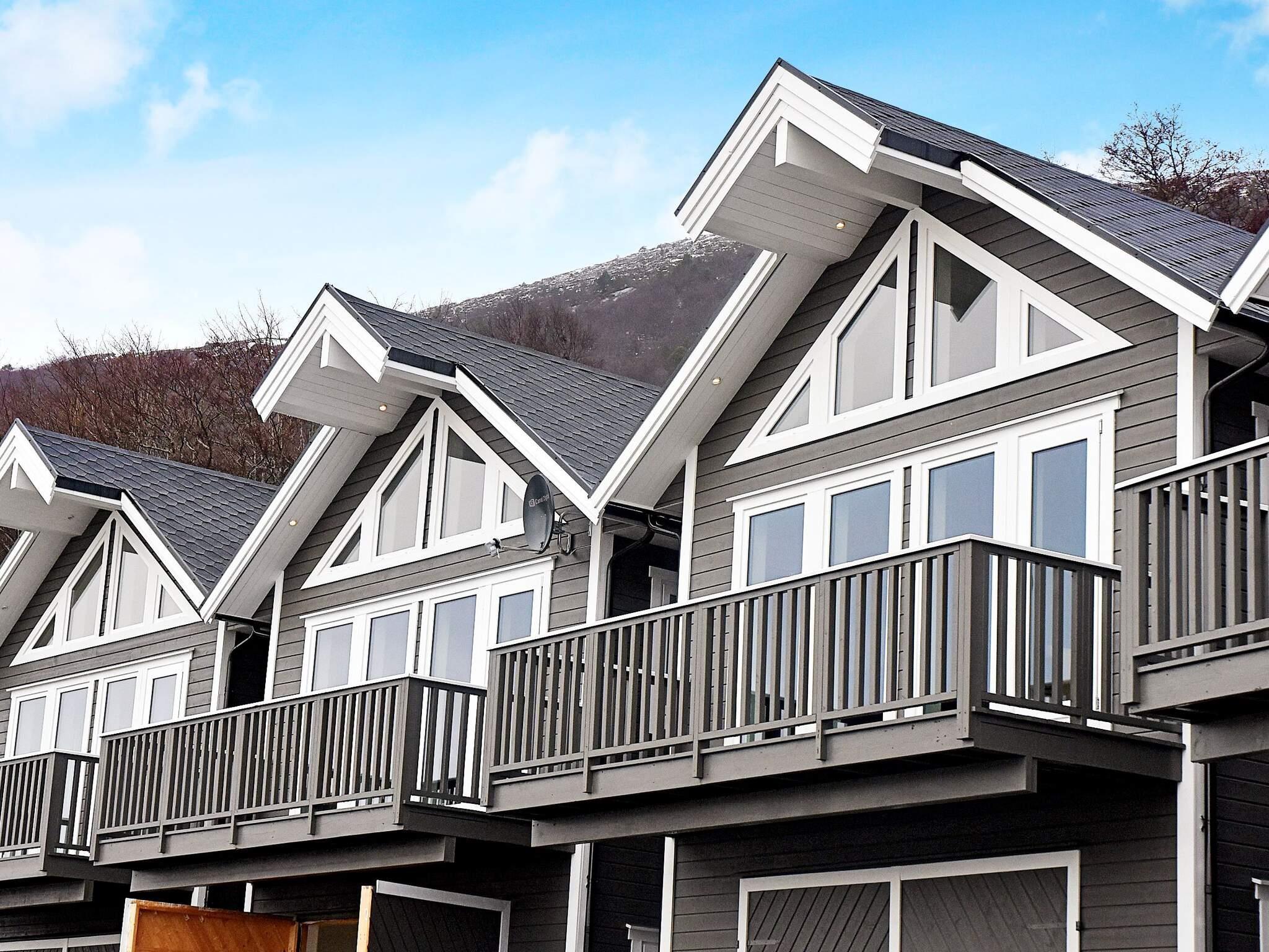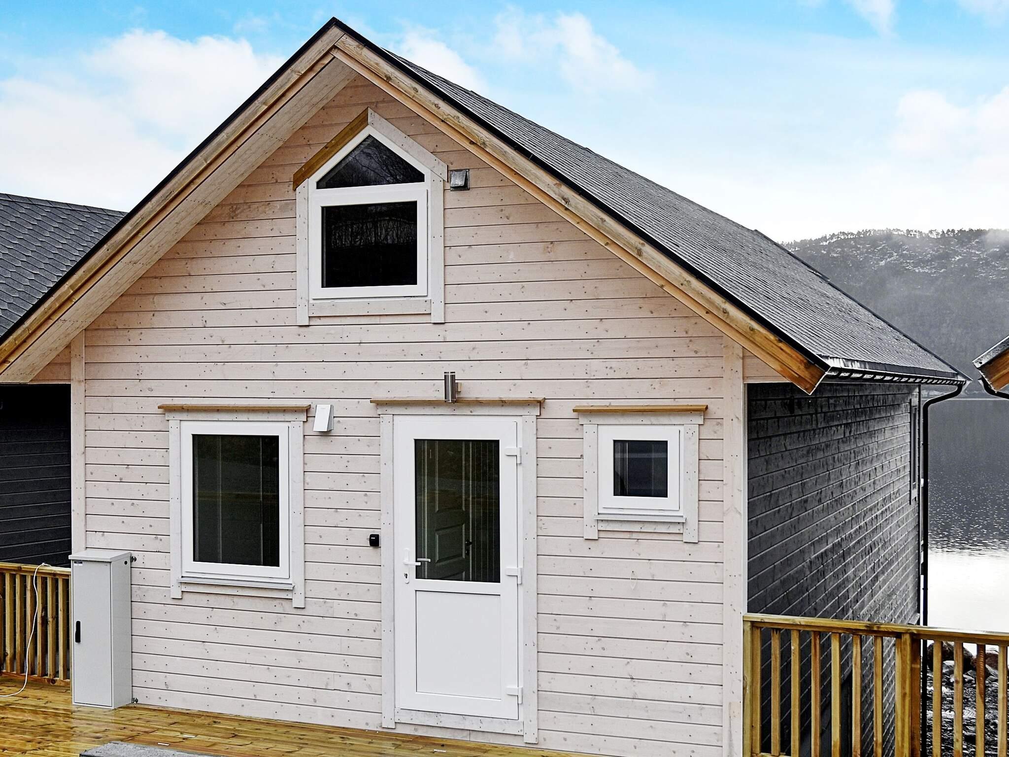 Es können weitere Häuser des baugleichen Typs angemietet werden, die alle in einer Reihe vorne am Fjordufer stehen.