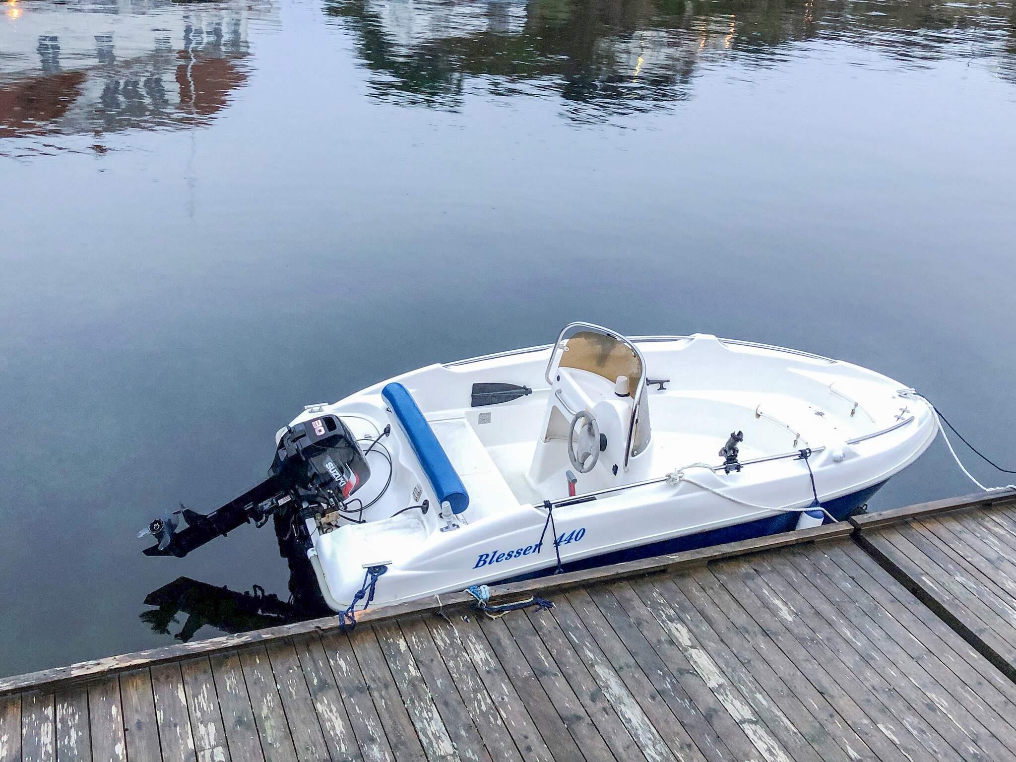 Boot zu mieten vor dem Ferienhaus: