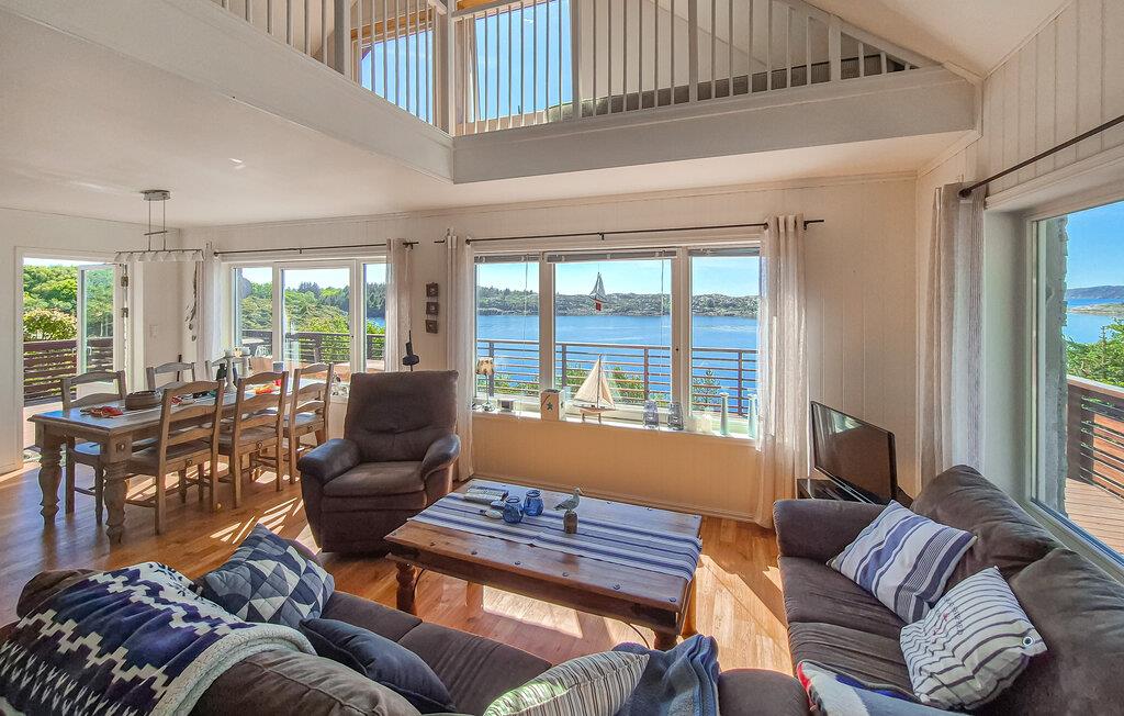Ein Urlaub in diesem abgelegenen und idyllischen Ferienhaus bietet die ideale Gelegenheit, sich inmitten der Natur zu entspannen und dem Alltagsstress zu entfliehen. Ihr Haus besticht durch ihre ruhige Lage und den atemberaubenden Ausblick auf den Bømlafjord. Machen Sie es sich auf der überdachten oder der offenen Terrasse bequem und beginnen Sie den Tag mit einem Frühstück im Freien oder lassen Sie den Abend hier in gesellige Runde ausklingen, während Sie die Aussicht und die frische Meeresluft genießen.