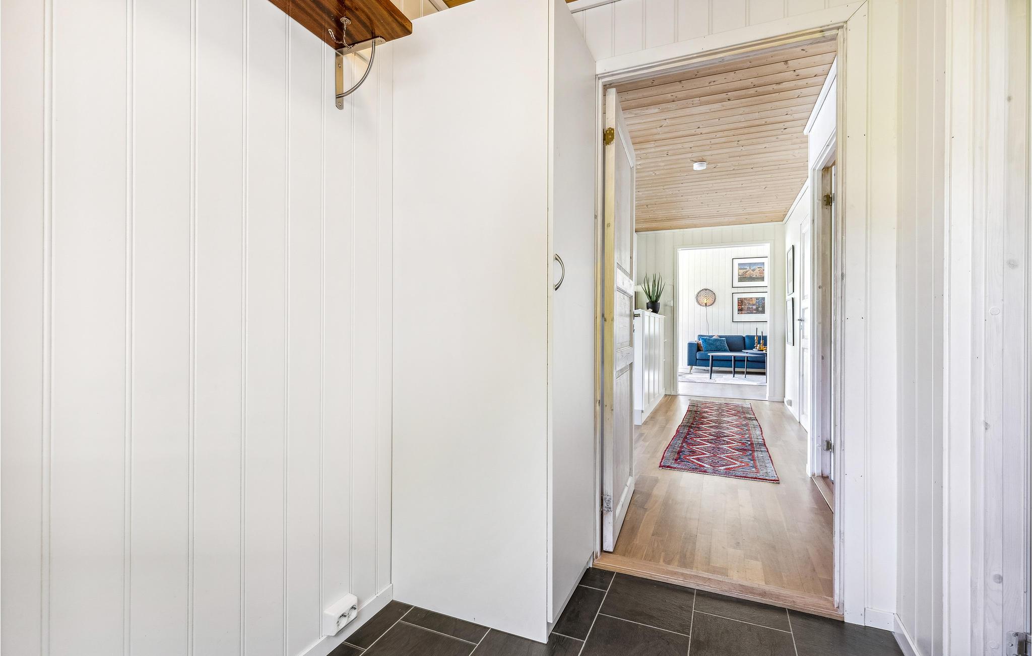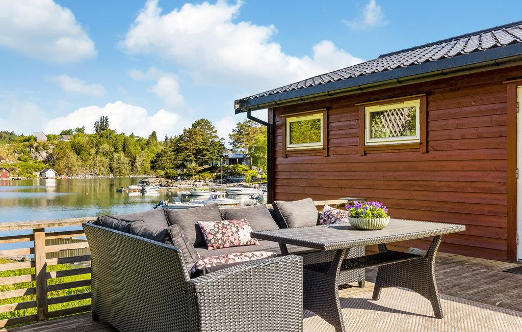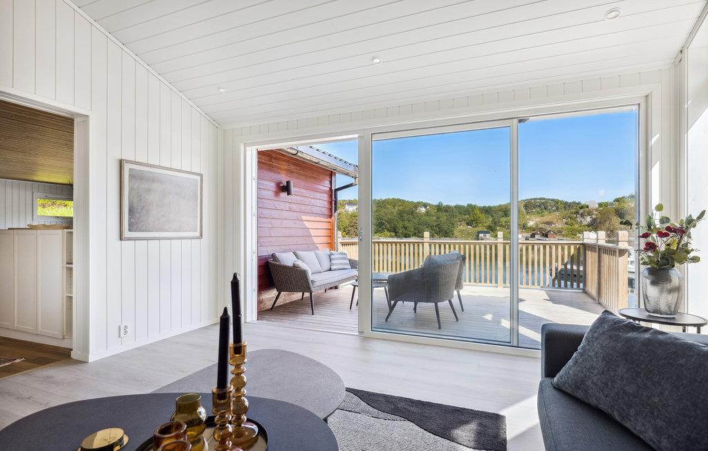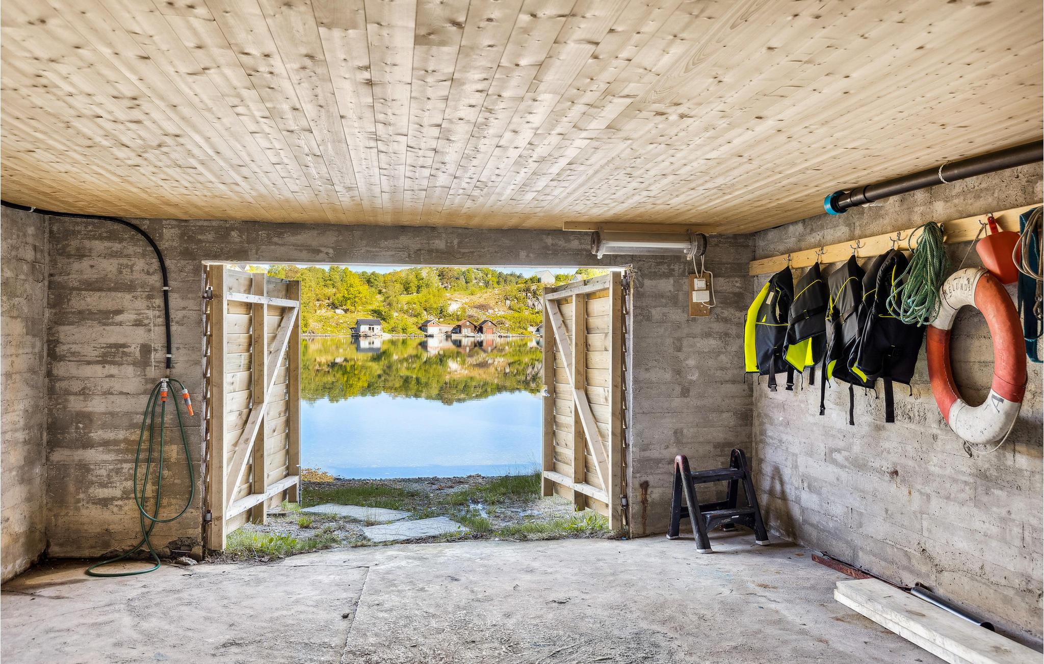 Im Innenraum dieses bescheidenen Hauses finden Sie ein authentisches Hüttendesign, mit herzlichen Details und heller Atmosphäre, die dank der großen Fensterfront entsteht. Machen Sie es sich somit auf der Sofagarnitur gemütlichen, lesen ein Buch, spielen Brettspiele oder lassen einfach Ihre Gedanken ins Nichts wandern. Genießen Sie Ihre Zeit im Freien auf der großen Terrasse, wo Sie gemeinsam grillen können, während Sie den blick auf den Fjord bewundern. Der Strand befindet sich direkt vor der Hütte, somit können Sie sich direkt im kalten Gewässer abkühlen oder angeln gehen.