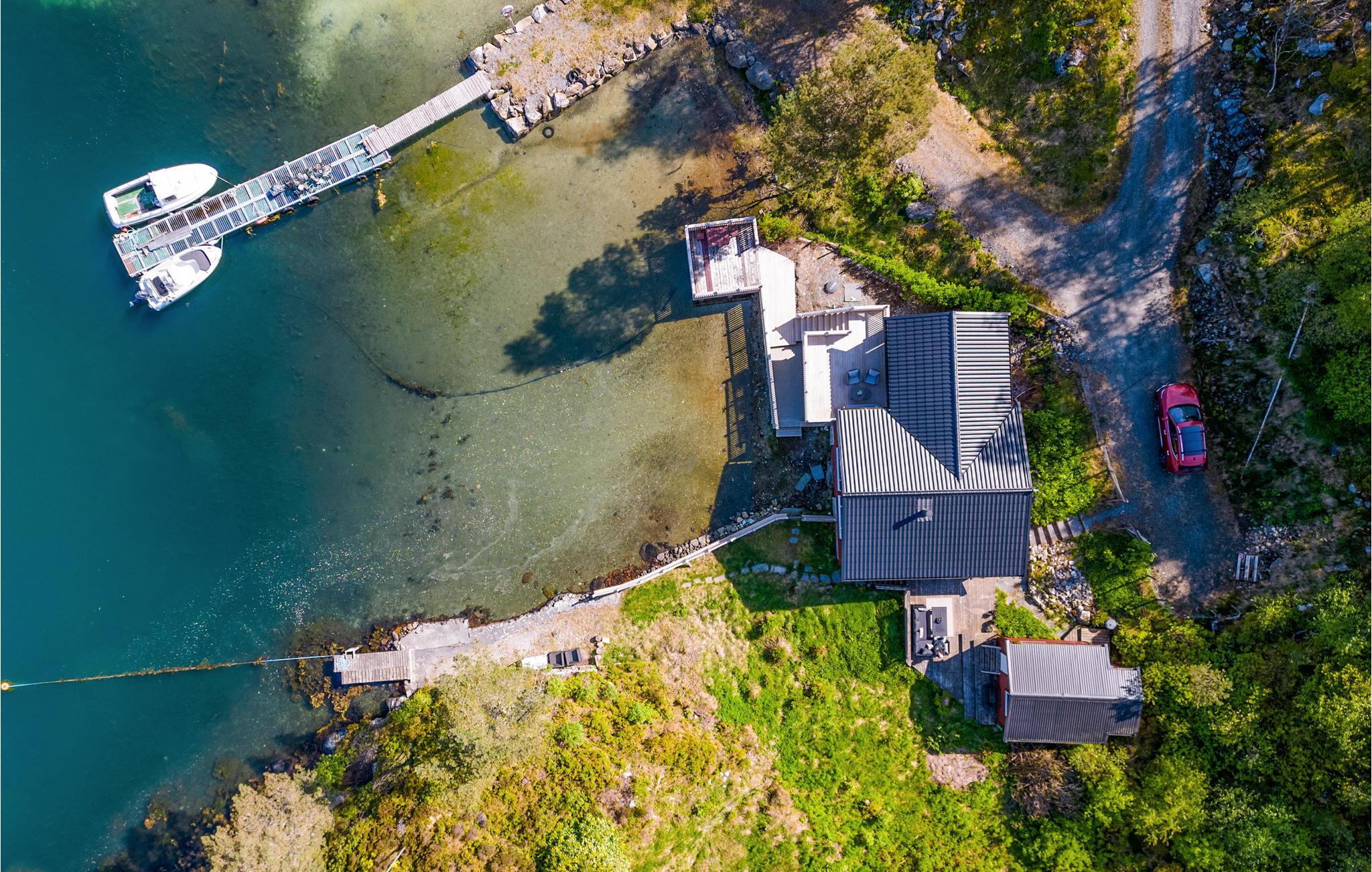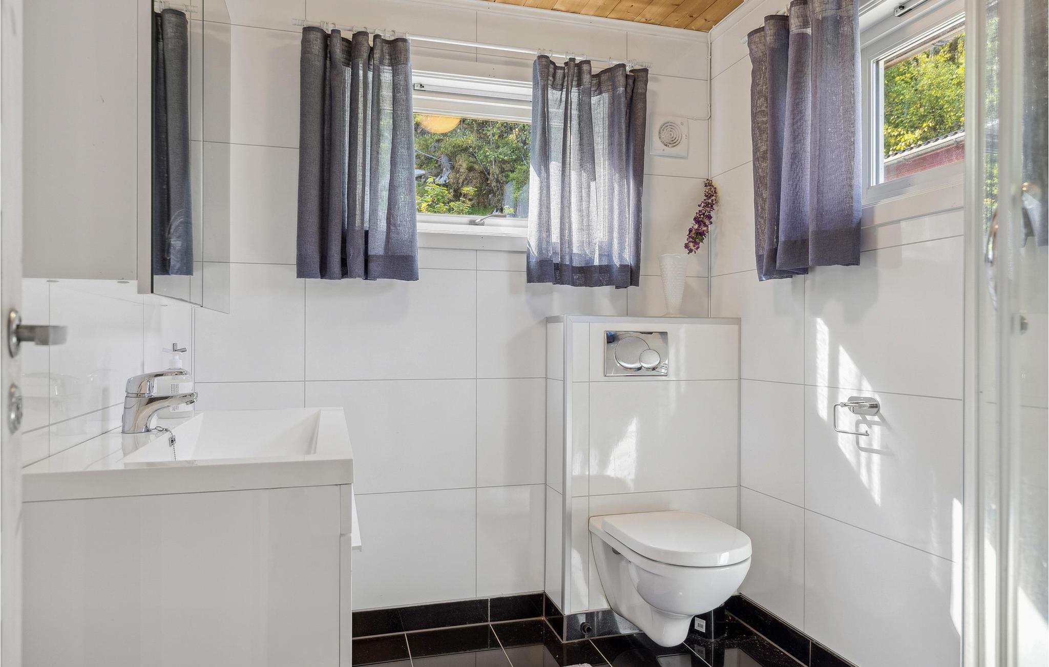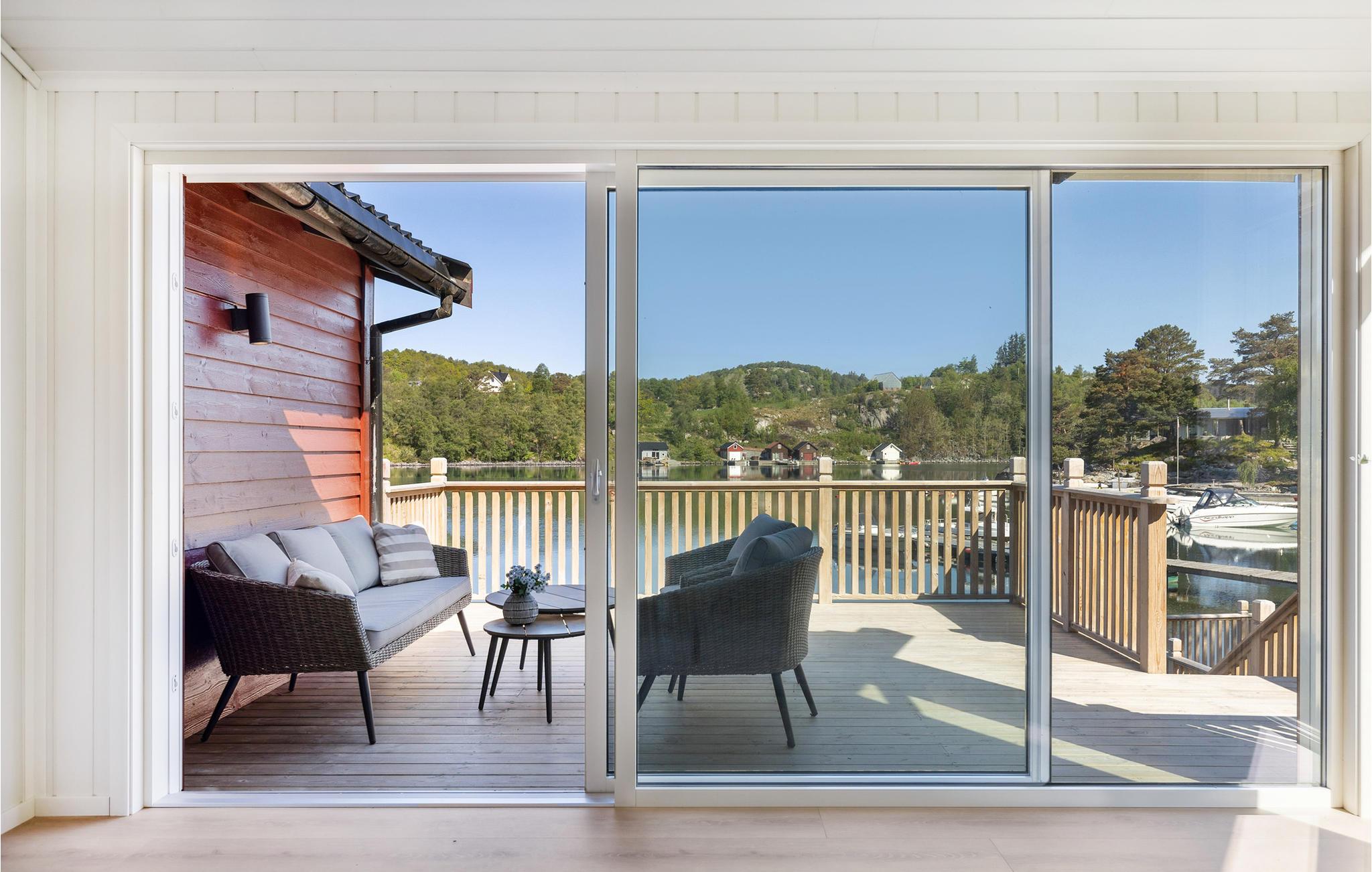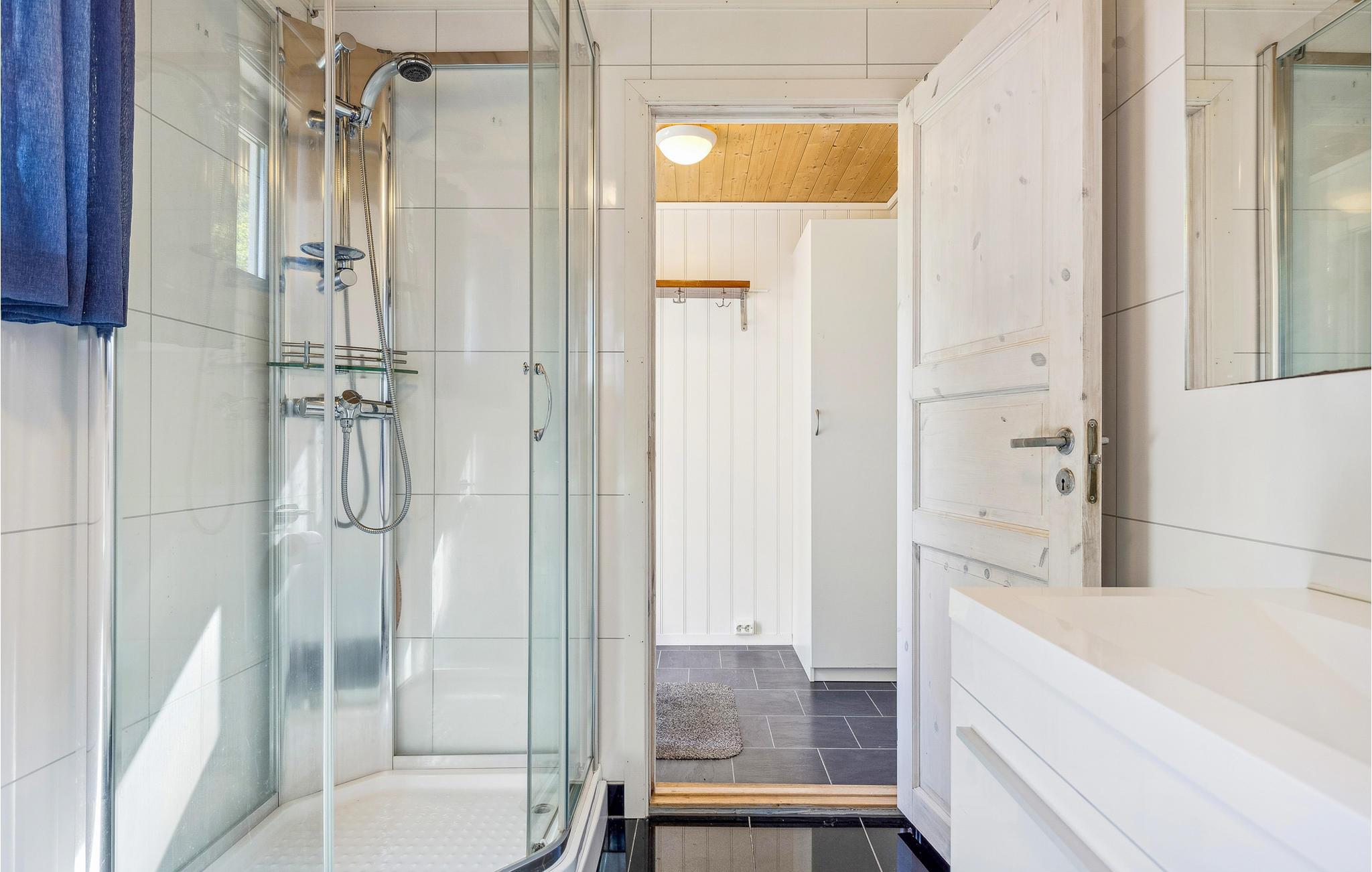 Im Innenraum dieses bescheidenen Hauses finden Sie ein authentisches Hüttendesign, mit herzlichen Details und heller Atmosphäre, die dank der großen Fensterfront entsteht. Machen Sie es sich somit auf der Sofagarnitur gemütlichen, lesen ein Buch, spielen Brettspiele oder lassen einfach Ihre Gedanken ins Nichts wandern. Genießen Sie Ihre Zeit im Freien auf der großen Terrasse, wo Sie gemeinsam grillen können, während Sie den blick auf den Fjord bewundern. Der Strand befindet sich direkt vor der Hütte, somit können Sie sich direkt im kalten Gewässer abkühlen oder angeln gehen.
