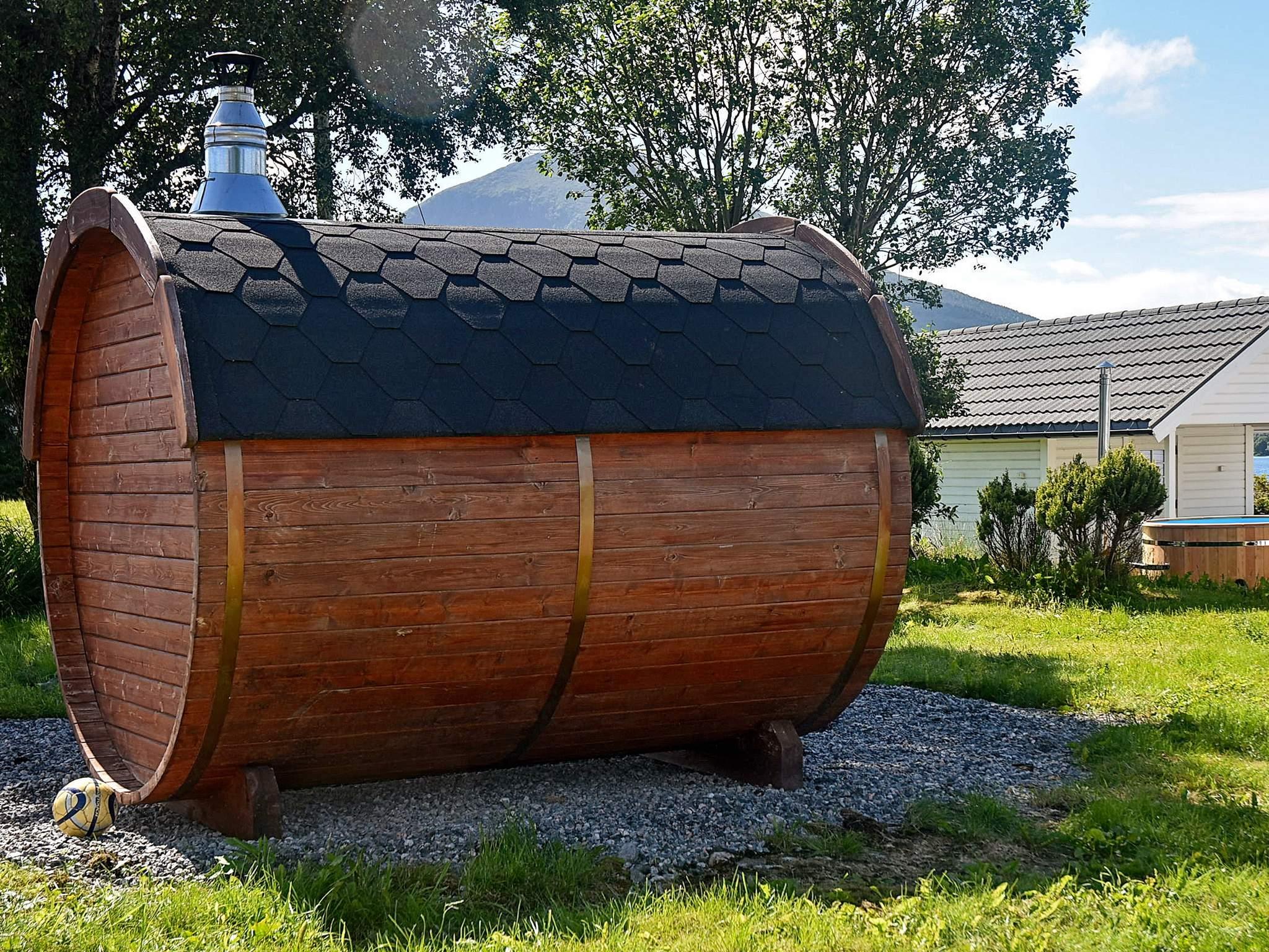 Außerdem stehen draußen ein großer, holzbefeuerter Badezuber und ein kleineres Sauna-Fass, ebenfalls mit Holz zu befeuern bereit. Nähere Infos zur Handhabung erhalten Sie vom Eigentümer vor Ort. Ein wirklich besonderes Urlaubserlebnis, dass man einfach mal probieren sollte! Nur 200 m weiter findet man einen Kunstrasenplatz und einen Spielplatz. Der Fjord vor dem Haus bietet sich zudem für Kite-Surfer an. Nur 500 m vom Haus erreicht man den ersten markierten Wanderpfad. Zum Fischerdorf Bud sind es 11 km.