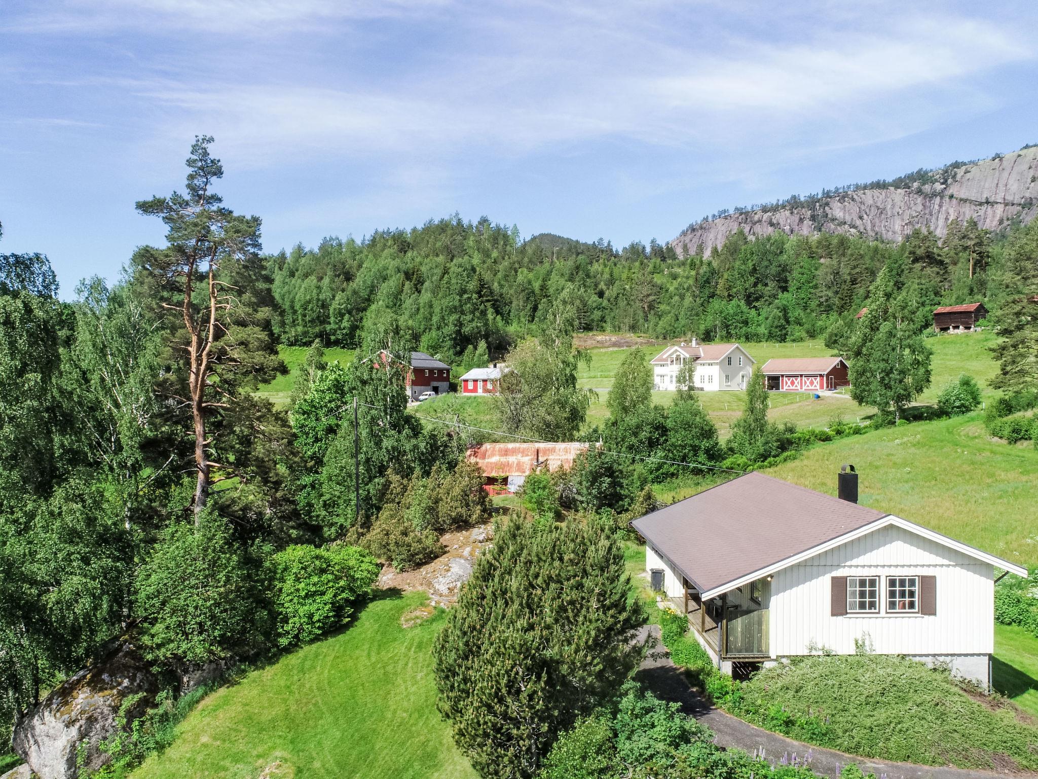 House "Knatten". In the hamlet Haugsjå 14 km from the centre of Treungen, 80 km from the centre of Kragerø, 120 km from the centre of Kristiansand, 200 m from the lake, in the countryside. Fish-processing table. Rowing boat, parking on the premises. Shop 14 km, bus stop "Haugsjåsund" 500 m, ferry "Kristiansand" 127 km. Ski lift 38 km, cross country ski track 38 km, fishing possibilities 200 m. Please note: fishing [permit required].
