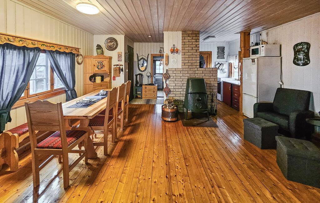 Dieses Ferienhaus liegt wenige Schritte vom See entfernt. Öffnen Sie die Haustür und betreten Sie ein Wohnzimmer, das Sie mit warmem Holz, weichen Teppichen und natürlichem Licht empfängt. Entzünden Sie den Kamin, spüren Sie die Wärme und lassen Sie sich auf dem bequemen Sofa nieder. Am großen Esstisch, der von hellen Fenstern eingerahmt wird, genießen Sie den offenen Blick auf die Landschaft. Nehmen Sie ein Buch aus dem Regal und machen Sie es sich in der Leseecke mit ihren ruhigen Farben und sanften Polstern gemütlich.