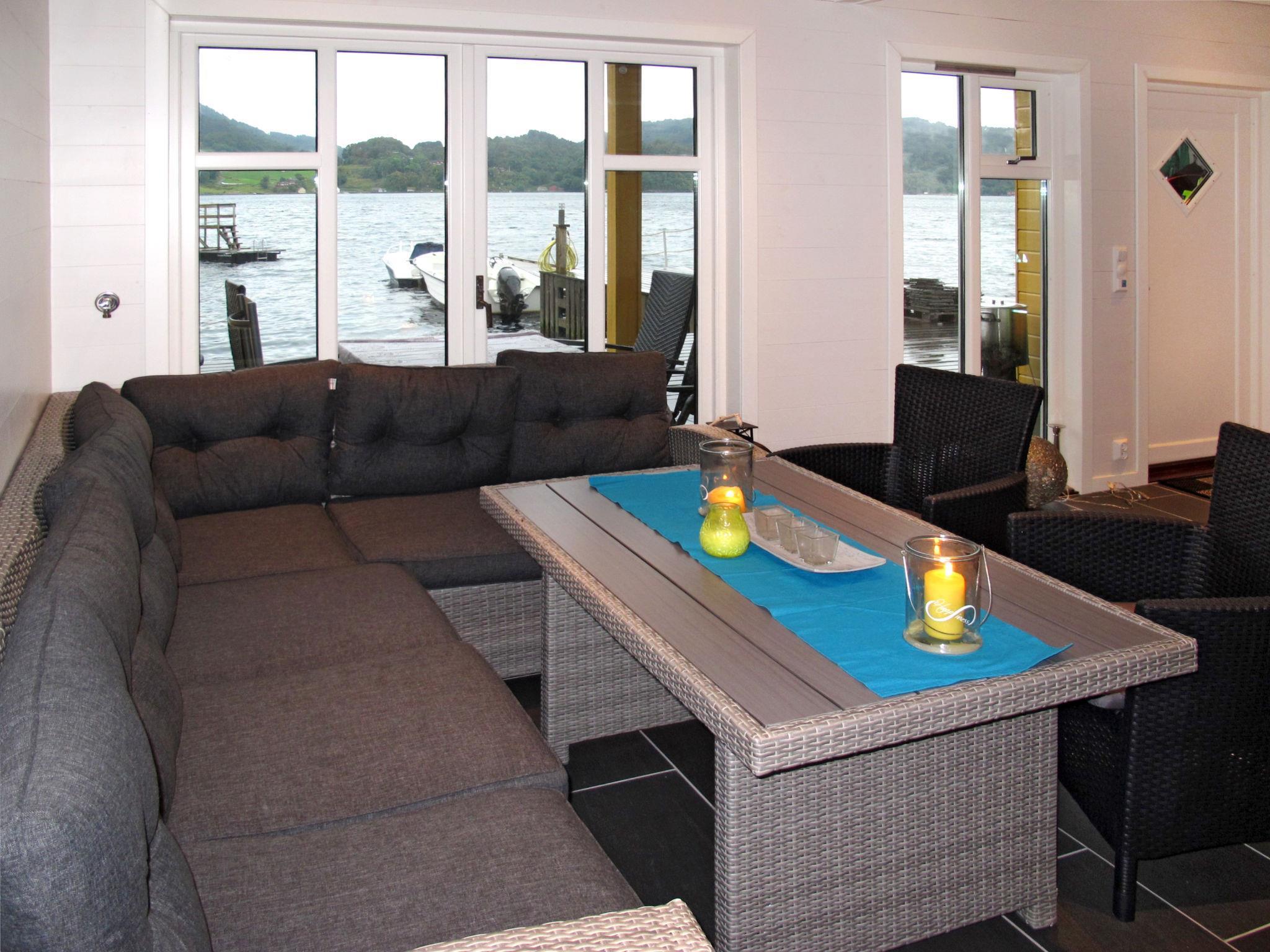Certified fishing house "Rorbuen", 1 m a.s.l., built in 2005, renovated in 2017. 14 houses in the resort. In the resort 1.5 km from the centre of Uggdal, 7 km from the centre of Våge, 54 km from the centre of Bergen, 1 km from the lake, 350 m from the beach, 5 m from the fijord. For shared use: volleyball court. Motor boat (on order), parking on the premises. Shop 1.5 km, supermarket 7 km, bus stop "Uggdalseidet" 1.2 km, railway station "Bergen" 54 km, ferry "Bergen" 54 km. Fishing possibilities 2 m. Owner lives in separate semi-detached house.