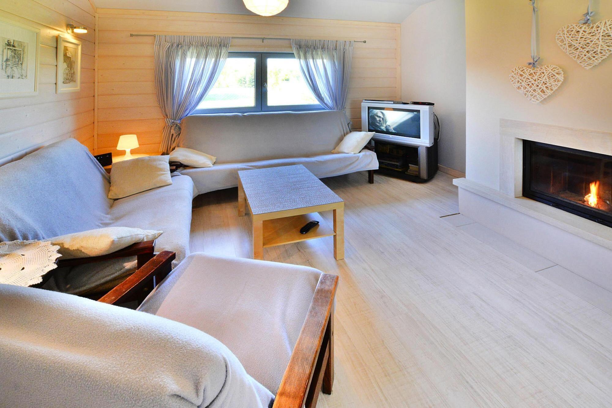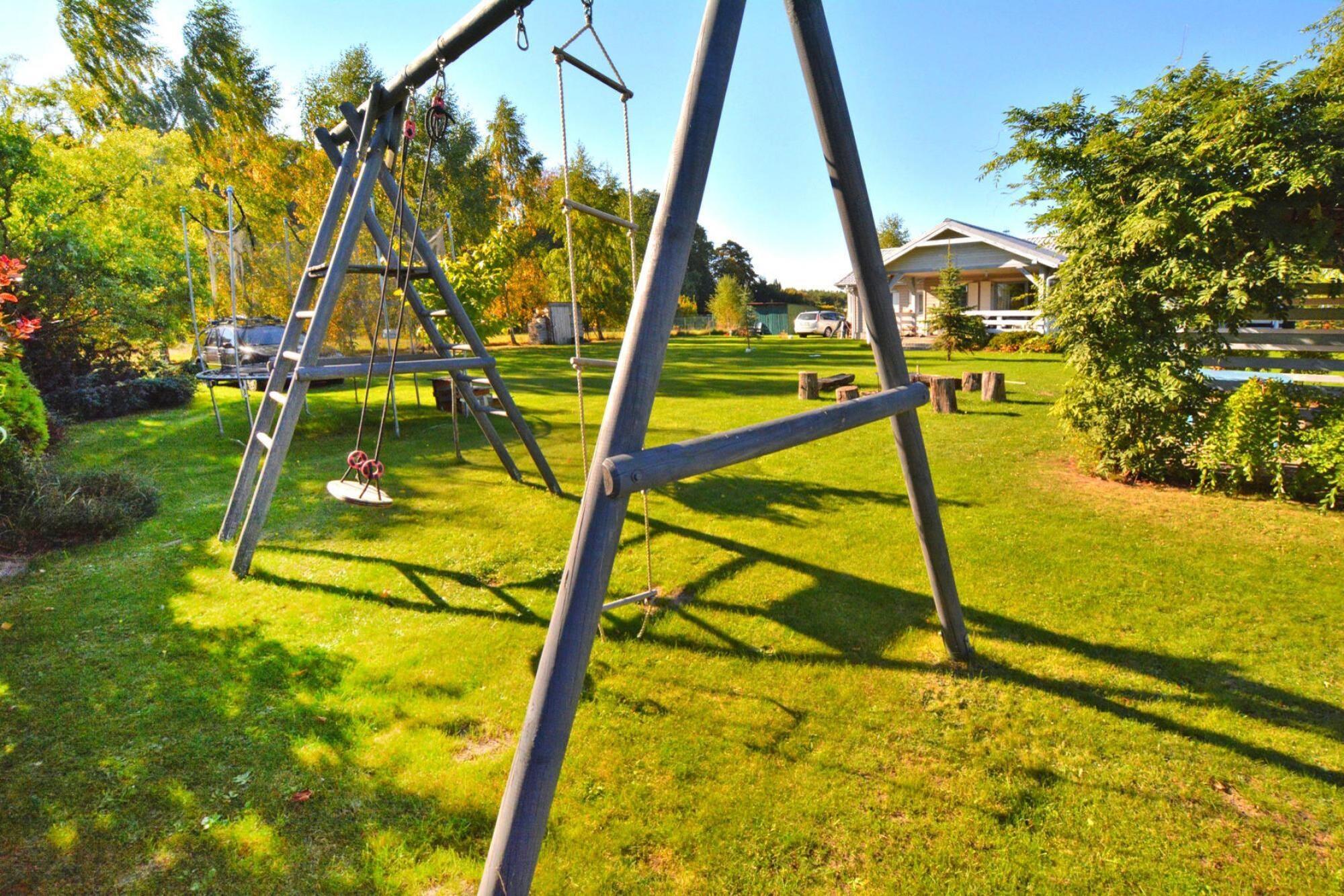 In a quiet, secluded area, on a fenced, well-kept area, there is a beautiful, large holiday house prepared for a comfortable stay of 8 people. The accommodation is only 190 m away from the shore of a wonderful lake. The comfortable, single-story holiday home offers guests a spacious living room connected to a well-equipped kitchen. The living room has a fireplace, TV and a table with chairs. There are 4 bedrooms and 2 bathrooms at guests' disposal. There is a washing machine. The house has heating (electric and auxiliary with a wood fireplace). The house has a large, covered terrace with a set of comfortable garden furniture and barbecue equipment. Wireless internet is available. On the fenced, private area there is a safe parking lot, a fireplace and a small playground for children. The price of the stay includes: bed linen, towels, electricity and water consumption, firewood, internet, parking. A baby cot and a high chair are also available on request. Attractions in the area: The biggest attraction is Lake Woswin, on the shore of which there is a summer house. The lake has very clean water, encouraging swimming and diving. The lake has an area of 800 ha, at its deepest point it is 29 m deep. An ideal reservoir for fishing enthusiasts, a big advantage is that the owner of the facility has a rowing boat, so you can fish both from the pier and from the boat. It is worth cycling around the lake, visiting the beach in the village of Tuczno and the villages on the other side of the reservoir - Konieczna and Cieszyno. The following towns are located in the area: Chociwel, Wegorzyno, Lobez. There you can count on a restaurant, a cafe and general stores.