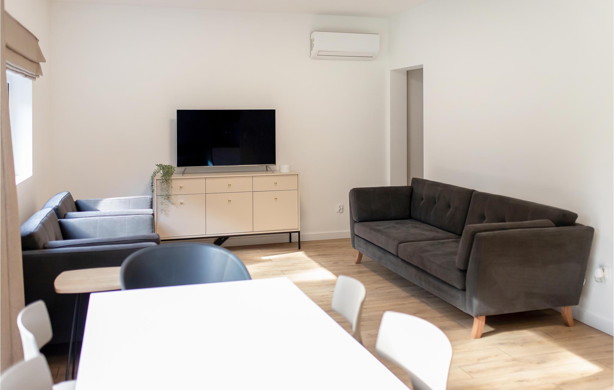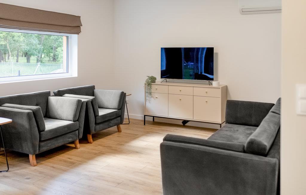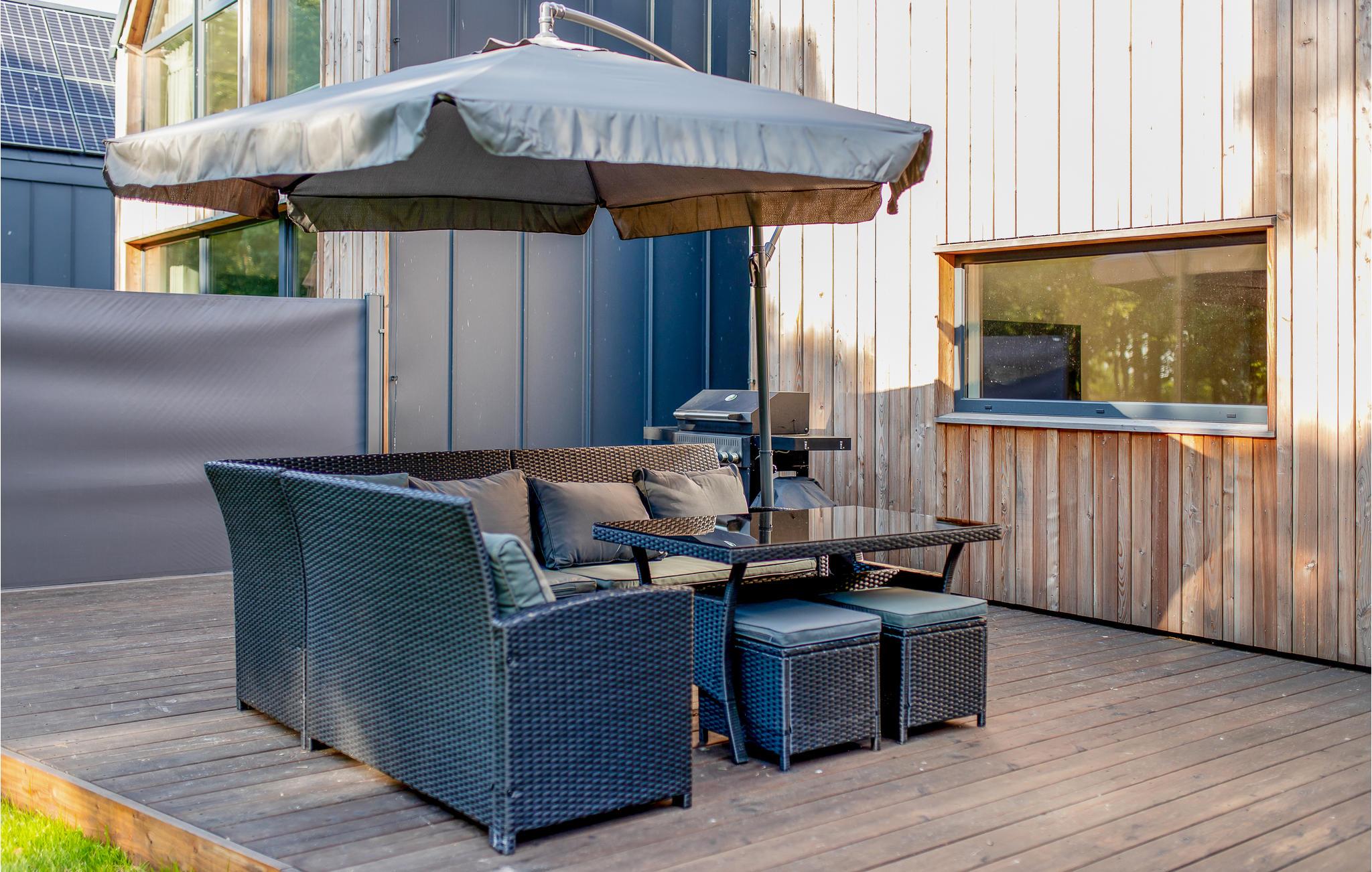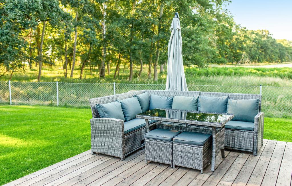 Auf einem Grundstück mit mehreren Ferienhäusern empfängt Sie dieses schöne Ferienhaus, das Sie begeistern wird. Gemeinsam mit Ihrer Familie können Sie die hellen Räume erkunden, die geschmackvoll und modern eingerichtet sind und alle Ihre Wünsche in Erfüllung gehen lassen. Durch die großen Fenster gelangt viel natürliches Licht in die Räume und versprechen Ihnen u.a. ein großartiges Badeerlebnis in der Badewanne.