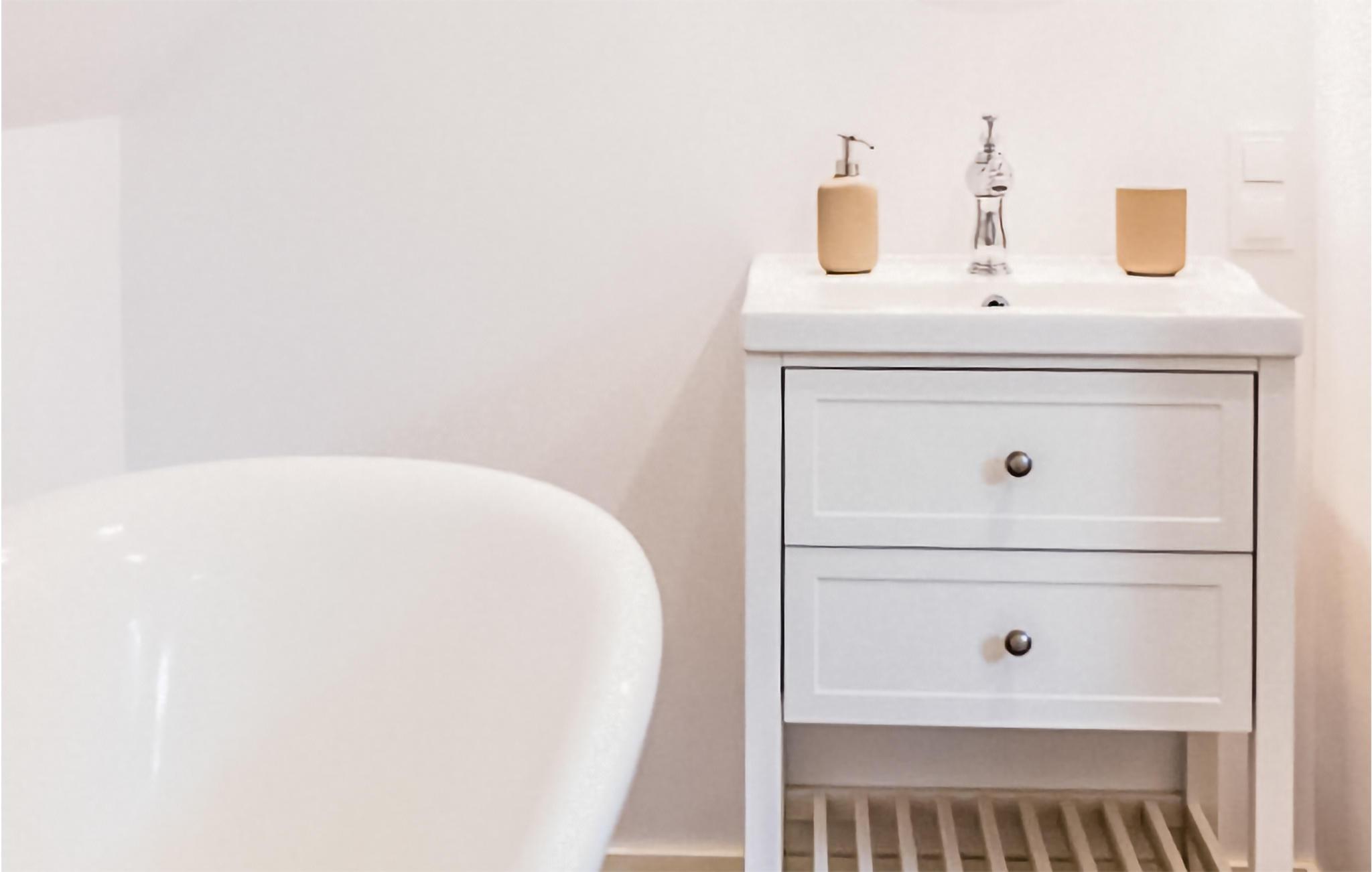 - WC mit warmem und kaltem Wasser, Badewanne