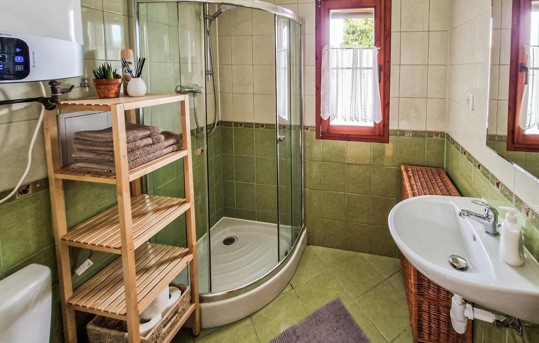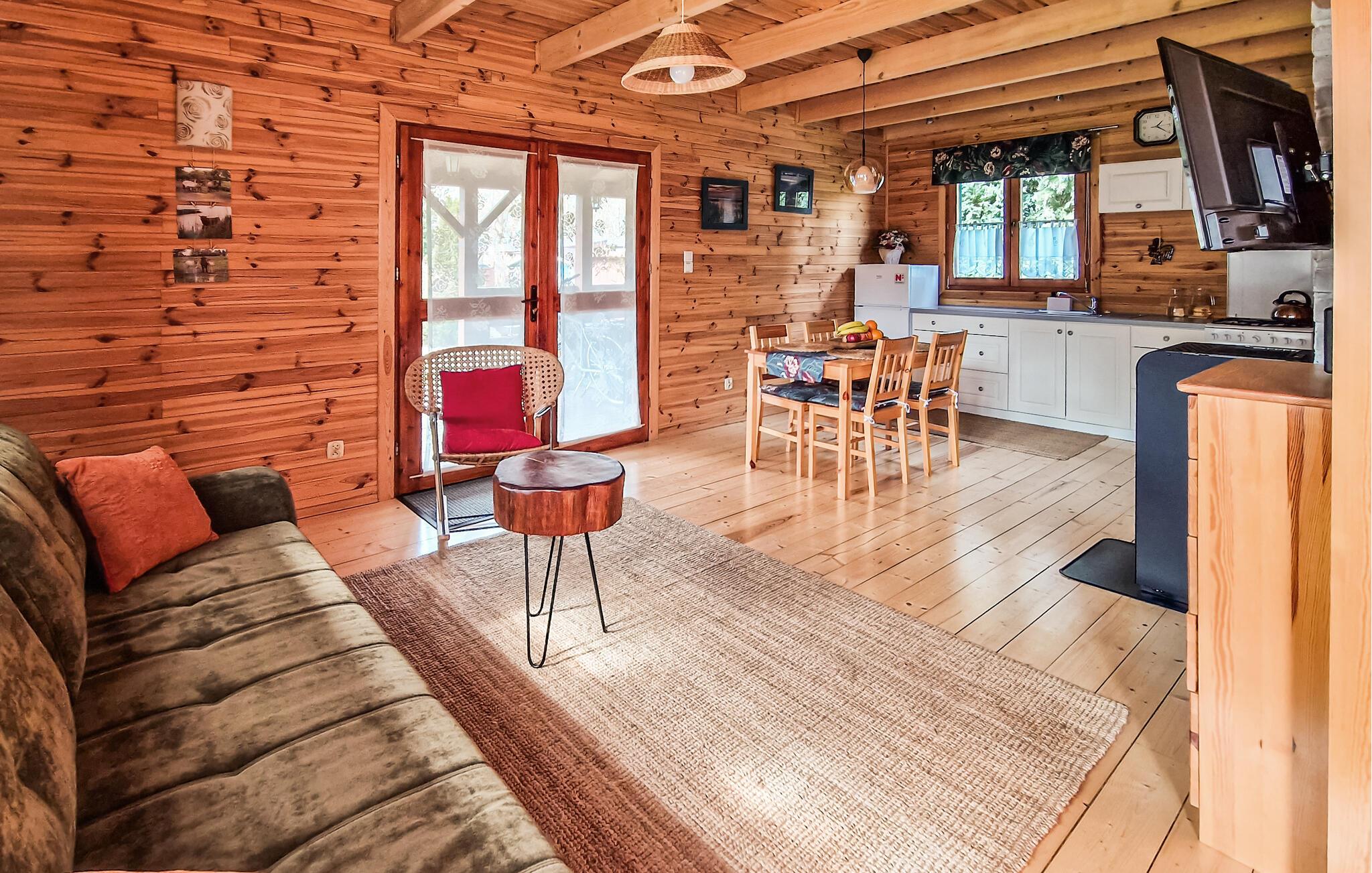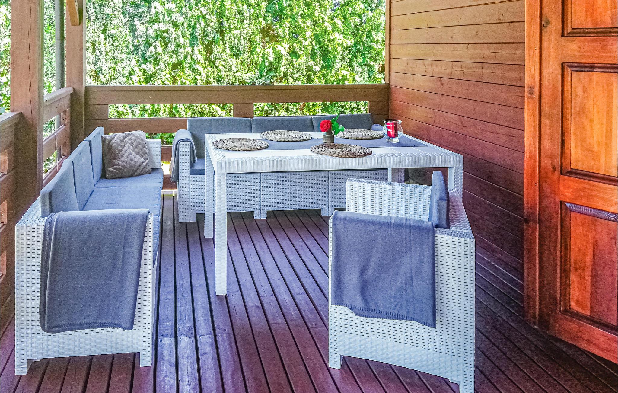 Das Haus mit einer Wohnfläche von ca. 80 m² befindet sich auf einem umzäunten 1.200 m² großen Grundstück. Das Haus besteht aus einem Wohnzimmer mit Küche, zwei Schlafzimmern und einem Badezimmer mit Dusche. Die Einrichtung des Hauses ist von der Natur inspiriert. Die beruhigenden Farben und die Verwendung natürlicher Materialien wirken sich positiv auf Ihr Wohlbefinden aus Das Haus ist kinder- und tierfreundlich.