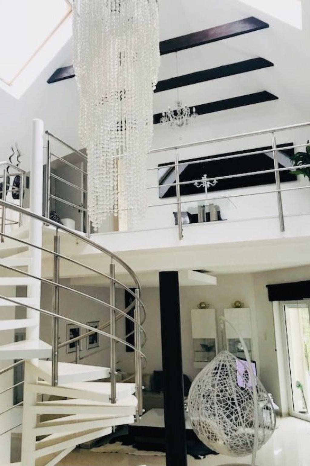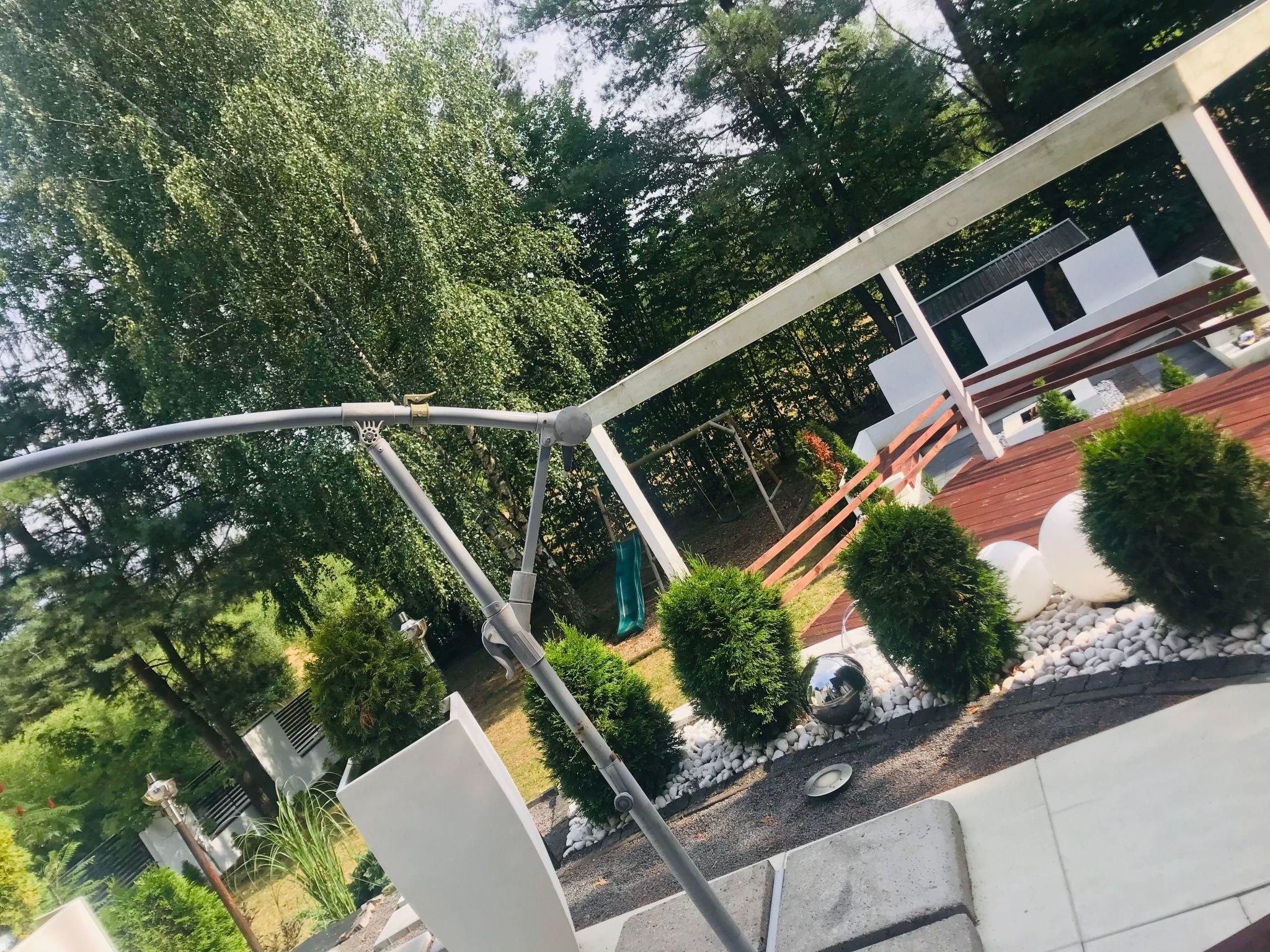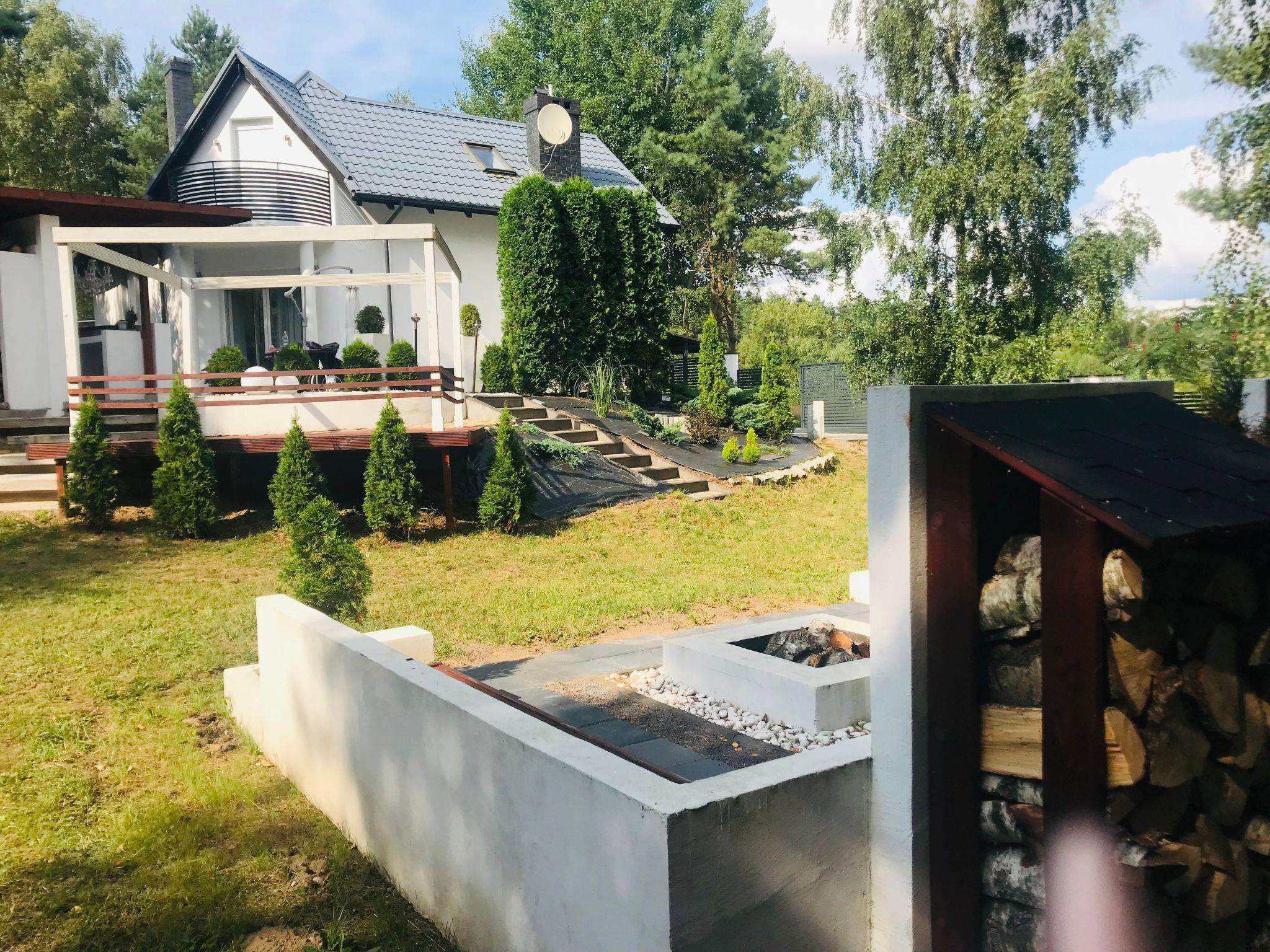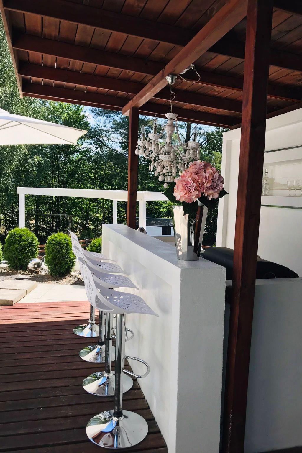 The outdoor area leaves nothing to be desired. A spacious terrace of over 30 square metres is perfect for relaxing and sunbathing. Everyone will find space for their favourite leisure activities on the 1300sqm plot. In the evening, atmospheric indoor and outdoor lighting creates the right atmosphere. The direct access to the forest encourages walks where you might come across blueberries and mushrooms.