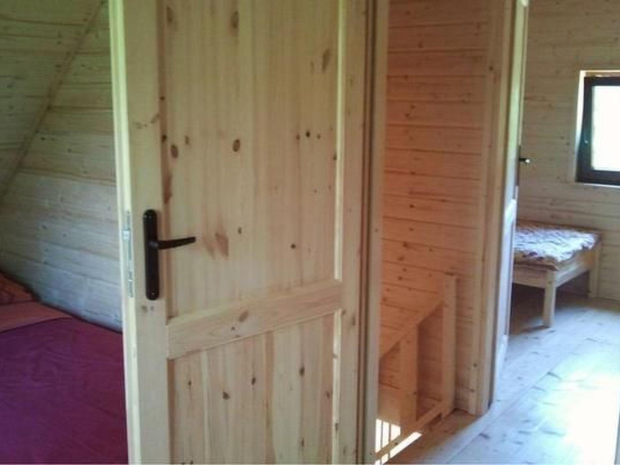 The two-storey log cabins, built entirely of wood, have a large living room with kitchen and bathroom, as well as a terrace on the ground floor and two bedrooms upstairs. With us you will find ideal conditions for an active holiday and a pleasant change from everyday life. On a total area of more than 2.6 hectares, we offer numerous sports fields for football, beach volleyball, basketball, badminton, etc., a 40-hectare pond where you can sail boats or pedal boats, and for those who prefer peace and quiet, an alder grove with hammocks for lazing around. The whole area is fenced, allowing our little guests to play safely in the large playground with trampolines and other attractions. The quiet and clean surroundings and the specific microclimate of the pine forest are conducive to walks and bike rides, and the beach in Dabki, 6 km away, will be a great addition to your holiday experience on the Baltic Sea. Silence, tranquillity...simply free time. Welcome to Gleznówek. Our log cabins are built entirely of wood, which provides relaxation and a specific atmosphere. We have 7 log cabins. Each cabin can accommodate 4-6 people and is equipped with the following: Large living room with seating area 32-inch satellite TV Fully equipped kitchen with dining table Fridge Microwave Gas oven Dishes Bathroom (shower, toilet, washbasin with cabinet) Terrace with seating area and barbecue Two separate bedrooms in the attic Bedroom with double bed and spacious dresser Bedroom with twin beds and large wardrobe