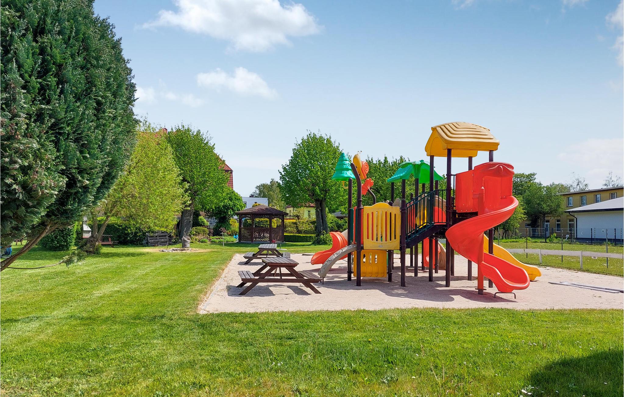 Das Unterhaltungsprogramm können Sie im Garten fortsetzen. Schauen Sie zu, wie Ihre Kinder beim Spielen auf dem Spielplatz Urlaubsfreundschaften schließen und nutzen am Abend den Gemeinschaftsgrill und Picknicktisch für leckere Abendessen.