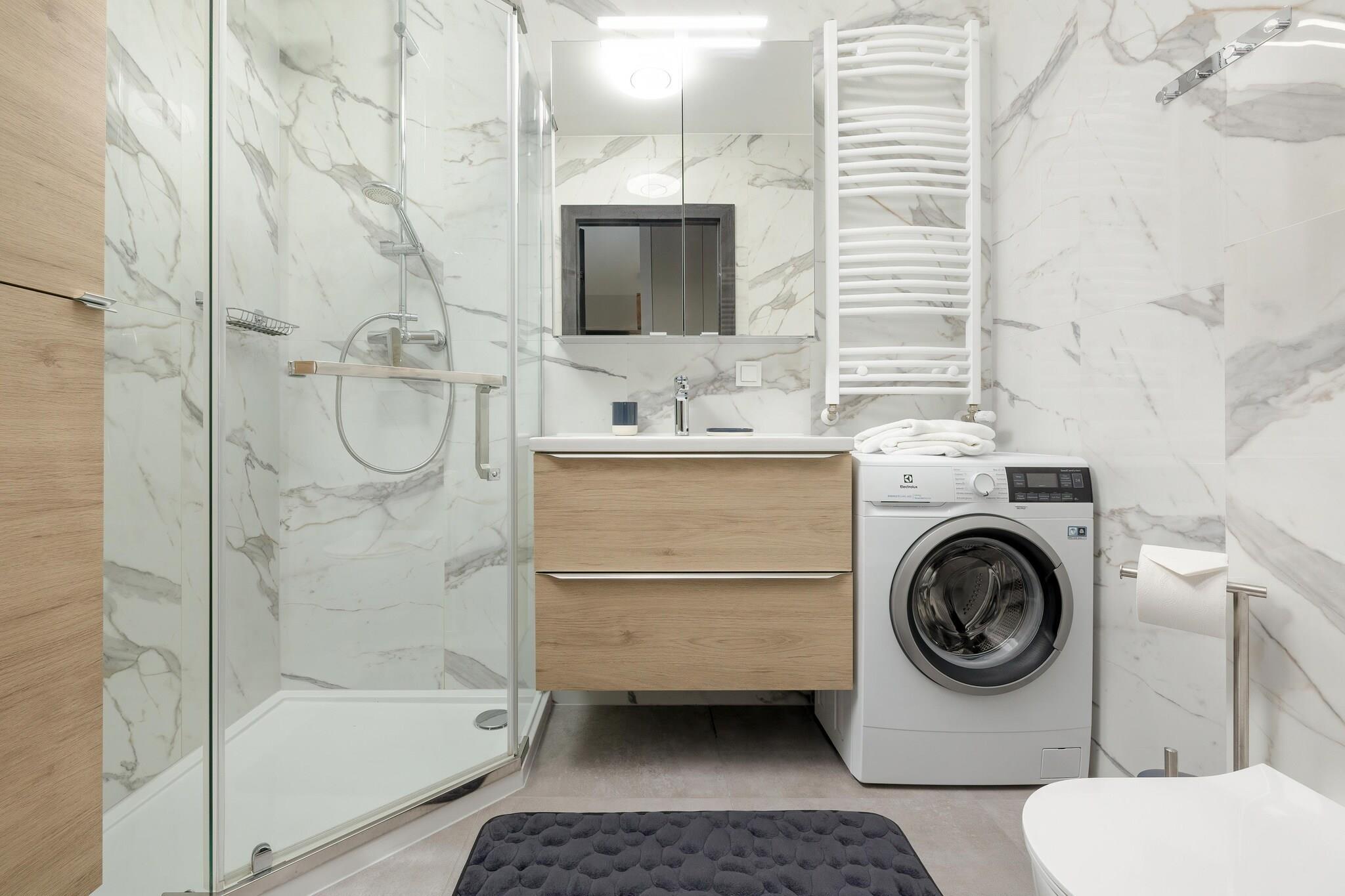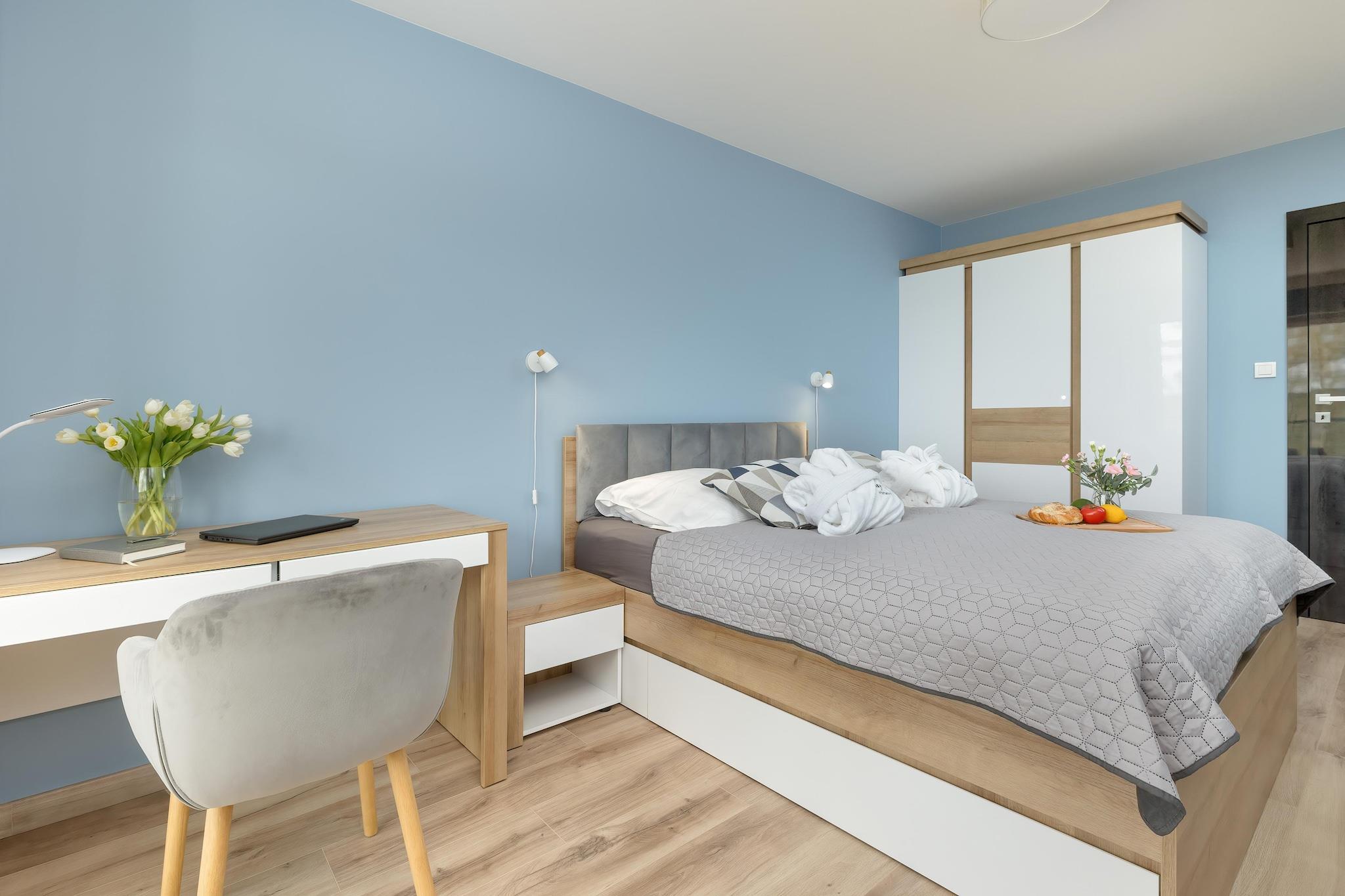 A new, exclusive apartment complex located directly on the bank of the Dziwna River. In addition to comfortable, spacious apartments, it offers a SPA zone with an indoor swimming pool, whirlpool bathtub and sauna. The sandy beach by the sea is 700 m away. The resort center is approximately 250 m away. The comfortable holiday apartment is located on the first floor (there is an elevator). The apartment consists of a spacious living room (TV, table, double sofa bed) connected to a well-equipped kitchen, a double bedroom and a bathroom with a shower (there is also a washing machine). The apartment has a balcony with a beautiful view and a set of garden furniture. Central heating. Wireless internet is available. The complex has a nice indoor swimming pool (+ paddling pool for children), whirlpool bathtub, sauna and fitness room. There is a parking lot for motorists. The price of the stay includes: electricity and water consumption, swimming pool, sauna, whirlpool bathtub, fitness room, parking space, internet. A baby cot and a high chair are available on request. Dziwnów has a clean, sandy and guarded beach, separated from the town by a range of dunes. In summer, children can use the water slide and inflatable jumping structures. There are wooden breakwaters sticking out of the sea, on which seagulls often sit. In summer, you can also take a ride on a banana or a wheel pulled by a motorboat. An additional, fantastic attraction of the beach is the walking promenade that stretches along the dunes of the wide, sandy beach. It is an ideal place for walkers. While resting, you can enjoy beautiful views and sunsets. In the meantime, you can sit on the benches that have been installed along the promenade.