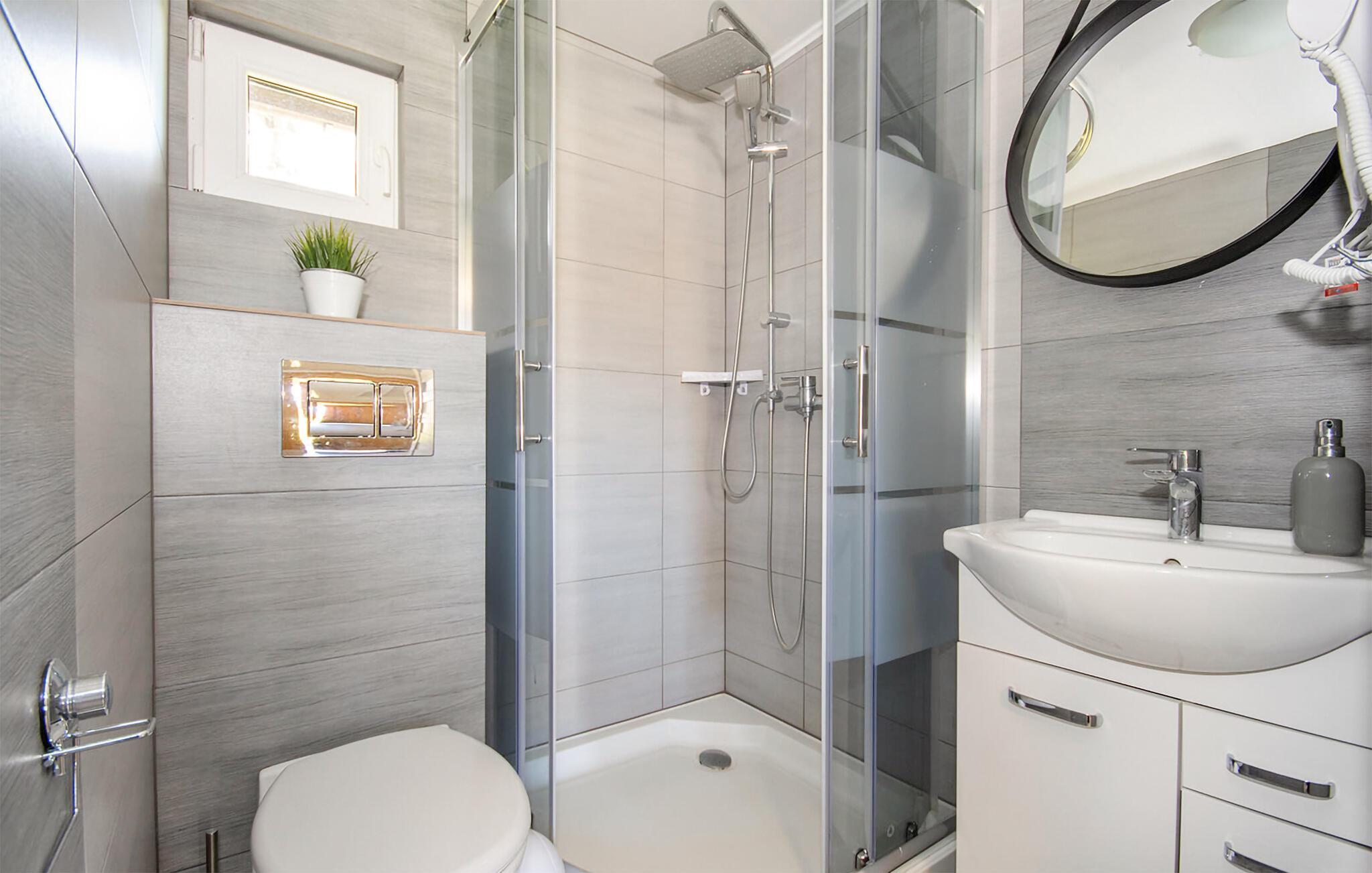 Badezimmer (nr. 1) - WC. Warmes und kaltes Wasser. Dusche