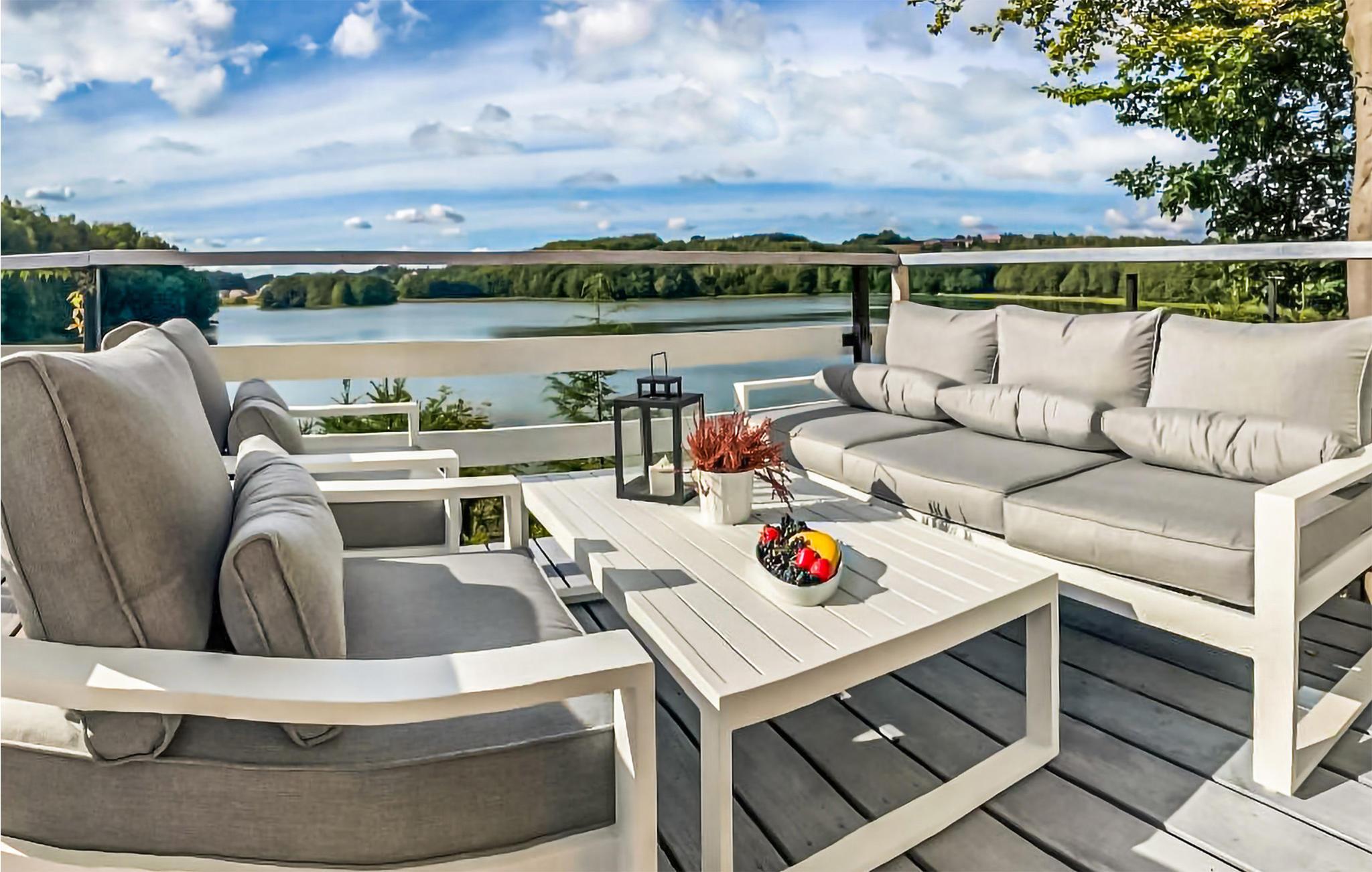 Dieses auffallende Ferienhaus befindet sich im östlichen Landesinneren Polens direkt am See.