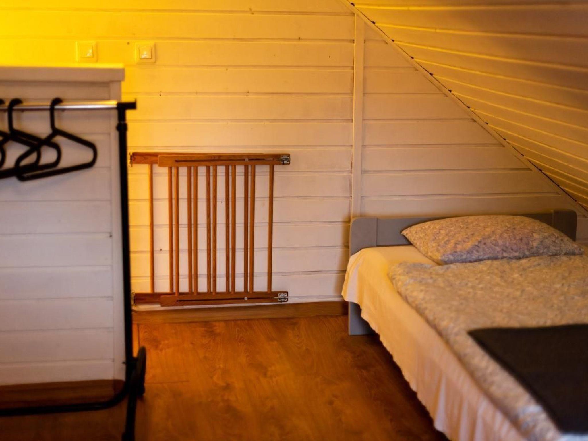 We offer you a cabin with one open bedroom on the attic (one king size + two 1-person bed). Living room with fully equipped kitchen and bathroom are located on the ground floor. In front of the cabin there is a terrace with garden furniture.Short descriptionOther : Non-smoking houseShort description 1Number of kitchens : 1SurroundingNearby sports facilities : Bike tours, Canoeing, Fishing, Riding possibilitiesRental Facilities : Bicycle rental serviceGarden and outdoorGarden facilities : Garden furniture provided, Grill, Playground equipment, SandboxOn-site leisure facilities : PlaygroundService benefitsService facilities (may incur additional costs) : Shopping service before arrivalOutside area: Garden available; Grill; Parking spaces: 1; Private parking space; Terrace;House information: 2nd double bed; 2nd single bed; Bathrooms: 1; Bedroom; Bicycle rental: 0,00 km; Detached building; Floor: 0; Property area: 1200 m²; Total number of floors in the building: 1; Year of construction: 2010; Year of renovation: 2019;Living area: Fireplace; Satellite-tv; TV;Bath/WC: Shower; Toilet;Kitchen: 2 plate stove; Coffee machine; Fridge; Microwave; Toaster;Other: Clothes dryer; Fishing; Floor heating; Heating; Non-smoking object; Pets allowed: max. 1; Vacuum cleaner; View; Washing machine; Wifi all-inclusive package;Distances (linear, approx.): Distance to airport: 70,00 km; Distance to lake: 1,00 km; Distance to railway station: 30,00 km; Distance to the sea: 2,00 km;Short descriptionOther : Non-smoking houseSurroundingNearby sports facilities : FishingRental Facilities : Bicycle rental serviceGarden and outdoorGarden facilities : Grill