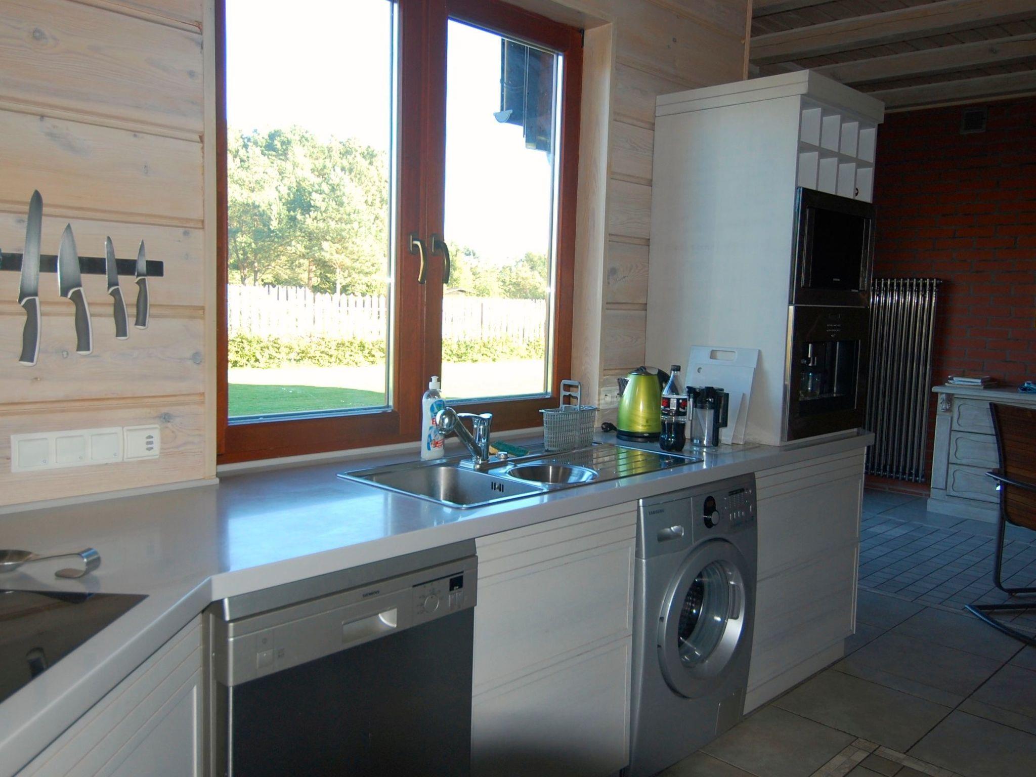 The interior impresses with its functionality and aesthetics. The ground floor of the house invites you to spend time together in the living room with a fireplace, TV, DVD, and internet access. The kitchen and dining area are equipped with all modern conveniences such as fridge with freezer, induction hob, oven, microwave, dishwasher, washing machine, automatic clothes dryer, built-in coffee machine. On the first floor there are two bathrooms, a comfortable bedroom with two single beds, three bedrooms with double beds and an additional bedroom with a double bed and a mezzanine with two single beds.