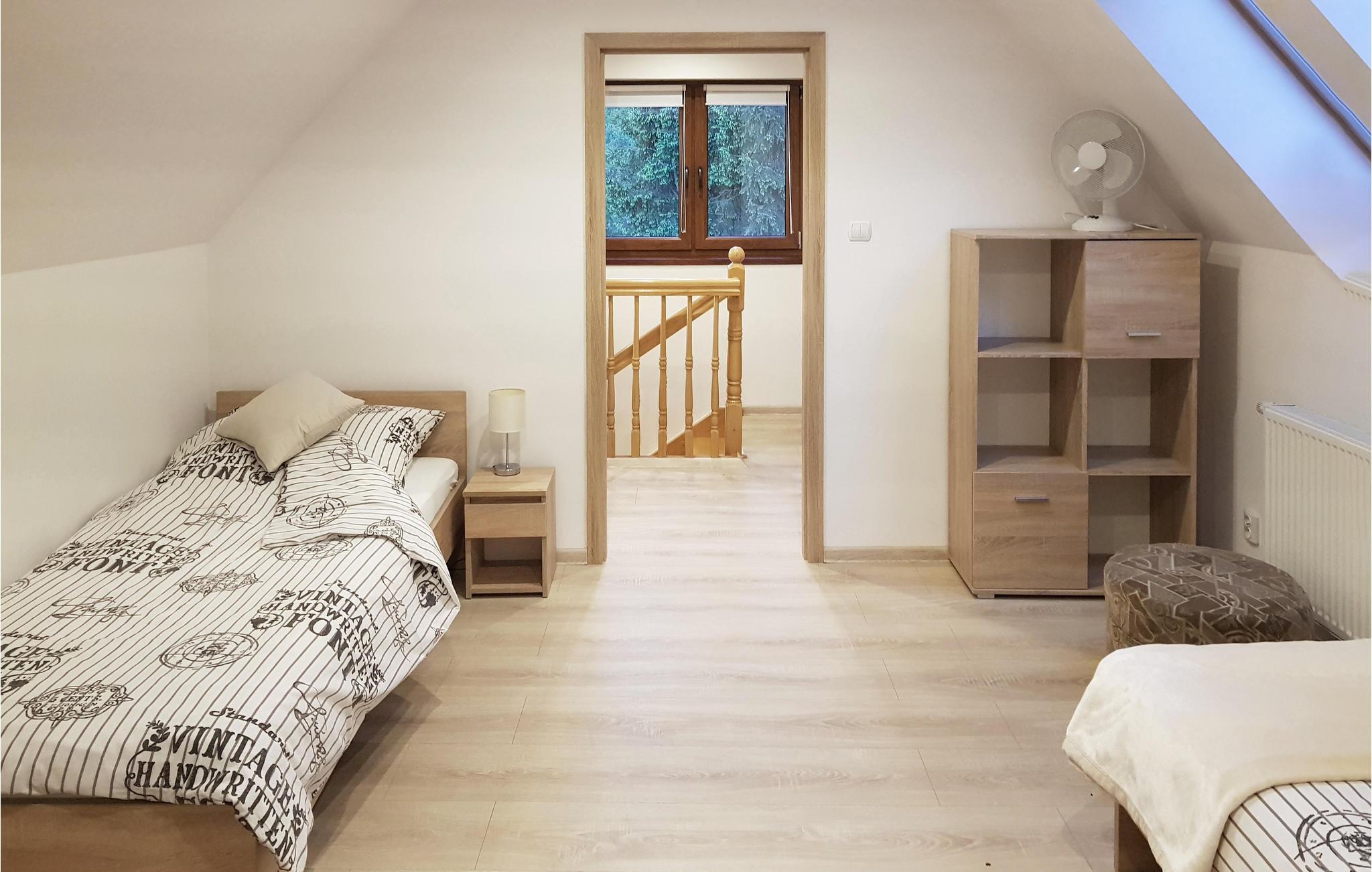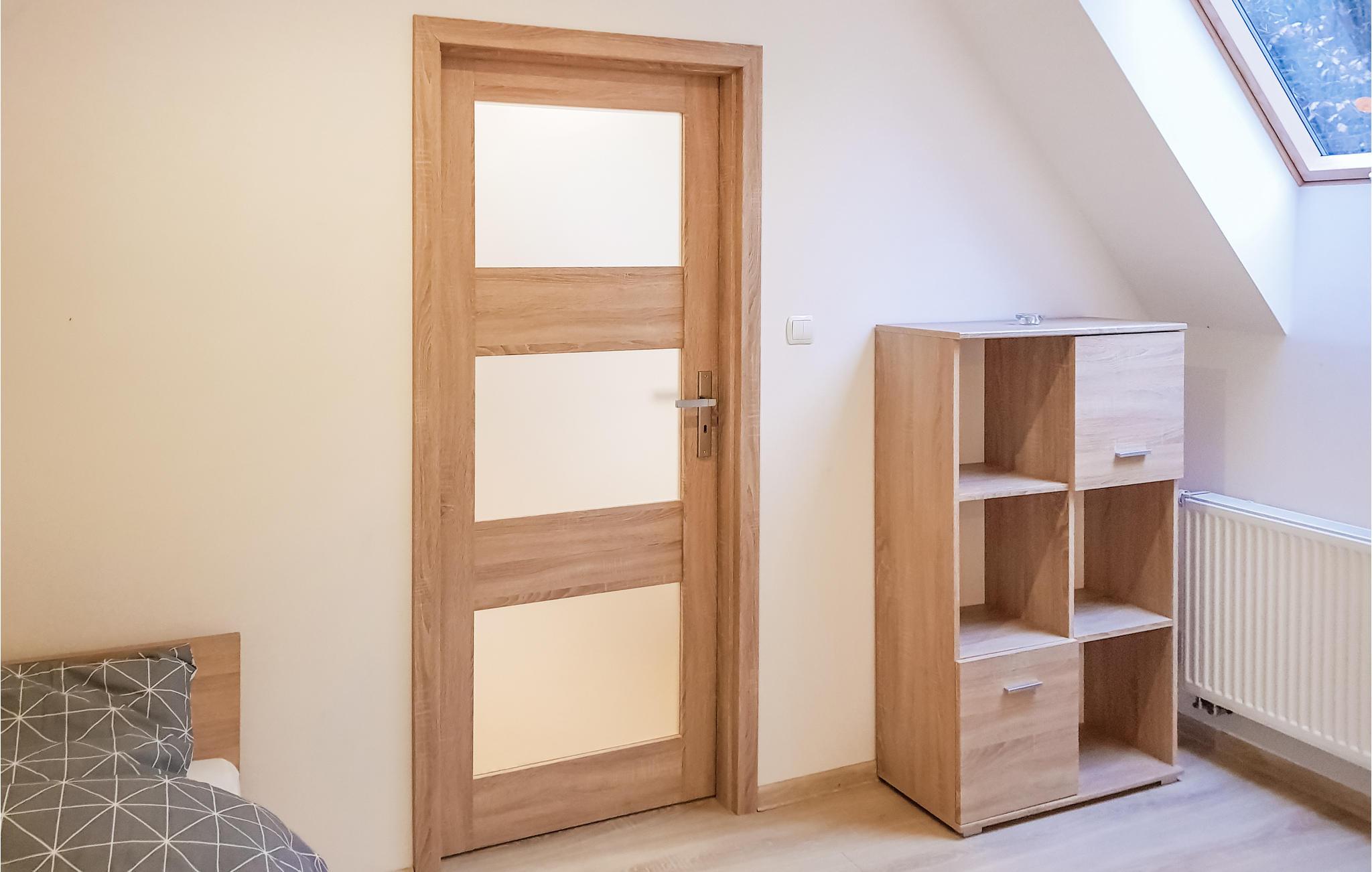 Dieses gemütliche Ferienhaus befindet sich im ruhigen und abgeschieden gelegenen Ort Krzynia, abseits vom Trubel der Stadt und dem Autoverkehr. Das abgeschlossene Grundstück ist von Waldbäumen umgeben und neben dem See (250m) zu finden. Die Umgebung des Hauses ist ein wirkliches Wunder für Radfahrer (4 Fahrräder im Preis) und Angler. Im Haus stehen ein Wohnzimmer mit großem Kamin, eine Küche, ein Essplatz und zwei Schlafzimmer (eine Durchgang) im ersten Stock für Sie zur Verfügung. Vom Fenster gibt es eine herrliche Ansicht über den schönen See und die Aulandschaft. Das Haus hat elektridche Fensterrolläden im Erdgeschoss. Die Parabol unterstützt obwohl Astra und Hotbird.