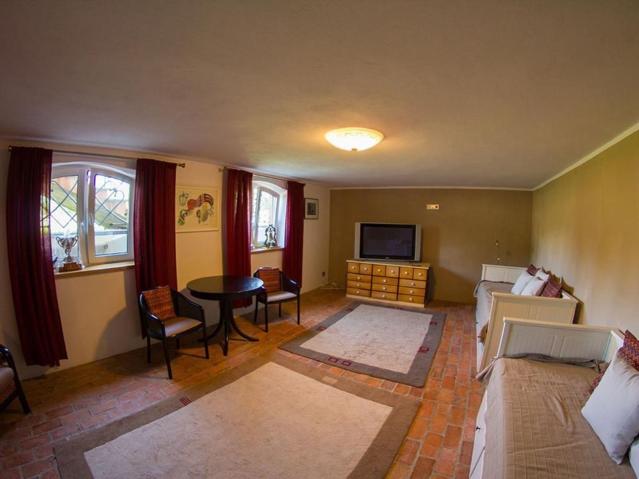 Your holiday home is located in the Kashubian commune of Serakowice in the village of Szopa in the middle of a quiet, rural area. Ideal if you want an independent and flexible holiday in Poland. Perfect holidays for those seeking peace and quiet and nature lovers! Enjoy nature: In front of your holiday home in the garden, there is a pond with an adjoining terrace, which invites you to linger and relax. Behind the house there is also a terrace, a garden shed (summer kitchen), barbecue and seating areas, the firewood store and a leisure area for children. The garden is extensively laid to lawn. The property is suitable for holidays, i.e. family holidays with children, family parties, class reunions, cycling tours or business meetings in Poland - away from the atmosphere of a big city. Whether you come to us just to relax or to celebrate, the holiday home and its spacious grounds can be used in a variety of ways. Whether barbecues in the countryside or cosy evenings by the fire with family or friends - whether summer holidays in summer or winter holidays in winter - enjoy an unforgettable holiday in Kashubia (Kashubian Switzerland), Poland.the holiday home extends partly over an upper floor, the basement and the ground floor, comfortably and lovingly furnished. One of the highlights is the spacious living/dining room in stately style on the ground floor with radio and a banqueting table (large table) as well as a fireside seating area with armchairs and a small table. Kitchen on the ground floor, gas hob (with five burners), electric oven, dishwasher, coffee machine, fridge and freezer, microwave, toaster and kettle. Two bedrooms are located on the upper floor, (room no. 1 for max. 4 persons consisting of a double bed and two single beds for children. The latter can be reached via a spiral staircase in the attic. Room no. 2 for max. 5 persons consisting of a double bed and a sofa bed for two persons and a cot. The latter is accessible via a spiral staircase in the attic). A further bedroom is located in the basement: Room no. 3 max. for 4 persons consisting of two sofa beds. The upper floor and the basement can be reached via stairs. Shower/WC on the upper floor. WC on the ground floor and a bathroom (free-standing bathtub) with separate shower and sauna in the basement The holiday home is centrally heated in winter. The large living/dining room has underfloor heating and the maximum sleeping capacity is for 10 adults and 3 children in three bedrooms. The outdoor facilities, including terraces, barbecue area, seating and children's playground on the property can be shared. Firewood for the fireplace in the large living/dining room is provided free of charge.Brief descriptionOther : Non-smoking houseShort description 1Number of kitchens : 2Living room 1Other living room facilities : In the huge living room you can serve meals at the long table for 14 people or end your day relaxing by the warming fireplace. Shared use of the living/dining room, including the entertainment equipment and fireplace, is included in the price. Firewood is provided free of charge.Bedroom 1Other bedroom furnishings: Upper floor (top left): for max. 4 people (sleeping space for two adults and two children) consisting of a double bed and two single beds for children. The children's beds are accessible via a spiral staircase in the attic.Bedroom 2Other bedroom furnishings : Upper floor (top right): for max. 5 people (sleeping space for four adults and one child) consisting of a double bed and a sofa bed for two people and a children's bed. The children's bed is accessible via a spiral staircase in the attic.Bedroom 3Other bedroom furnishings : Basement: max. for 4 people (sleeping space for four adults) consisting of two sofa beds that can be made up as double beds.Bathroom 1Other bathroom facilities : The comfortable bathroom with free-standing bathtub, separate shower and sauna is located in the basement.Bathroom 2Other bathroom facilities : The shower/WC is located on the upper floor.Kitchen 1Other kitchen facilities : The modern kitchen is located on the ground floor and is openly connected to the living and dining room. Shared use of the kitchen is included in the price. A sufficient number of crockery and cutlery is available. A seating area with four chairs and two bar stools is available.Kitchen 2Other kitchen facilities : The summer kitchen is located in a small, separate garden house on the grounds behind the holiday home and is ideal for preparing small festivities or your garden party. Shared use is included in the price.SurroundingsSports facilities in the area : Fishing, hunting, cycling toursSurroundings 1Excursions : Kashubian Museum in Kartuzy, Ptasia Wola bunker on Lake Lubygosc, Pope's Altar in Sierakowice (also worth seeing when illuminated in the evening), Kashubian Miniature Park and the longest board in the world, the upside-down house, the largest piano in Szymbark, to name but a few.Location description : The Polish village of Szopa is located in the Kashubian Landscape Park, Pomeranian Voivodeship, in northern Poland. In the village (approx. 500 metres from the property) there is a small shop with daily necessities. The nearest towns with infrastructure (e.g. doctor, dentist, pharmacy, supermarket, cash machine, petrol station) are Sierakowice and Kartuzy. Kashubian and Polish are spoken in Kashubia. Other sports and leisure activities : Hiking, fishing in the surrounding waters.Garden and outdoor facilitiesRecreational facilities at the property : Sauna, playgroundGarden equipment : Garden shed, garden furniture available, barbecue, gazebo, playground equipment.