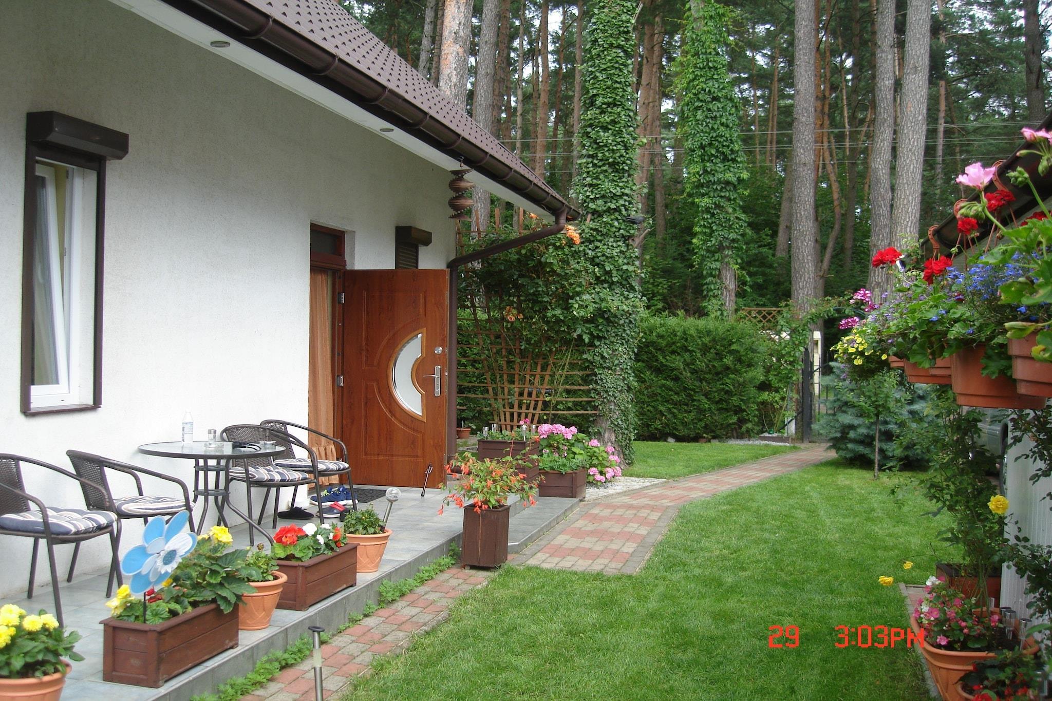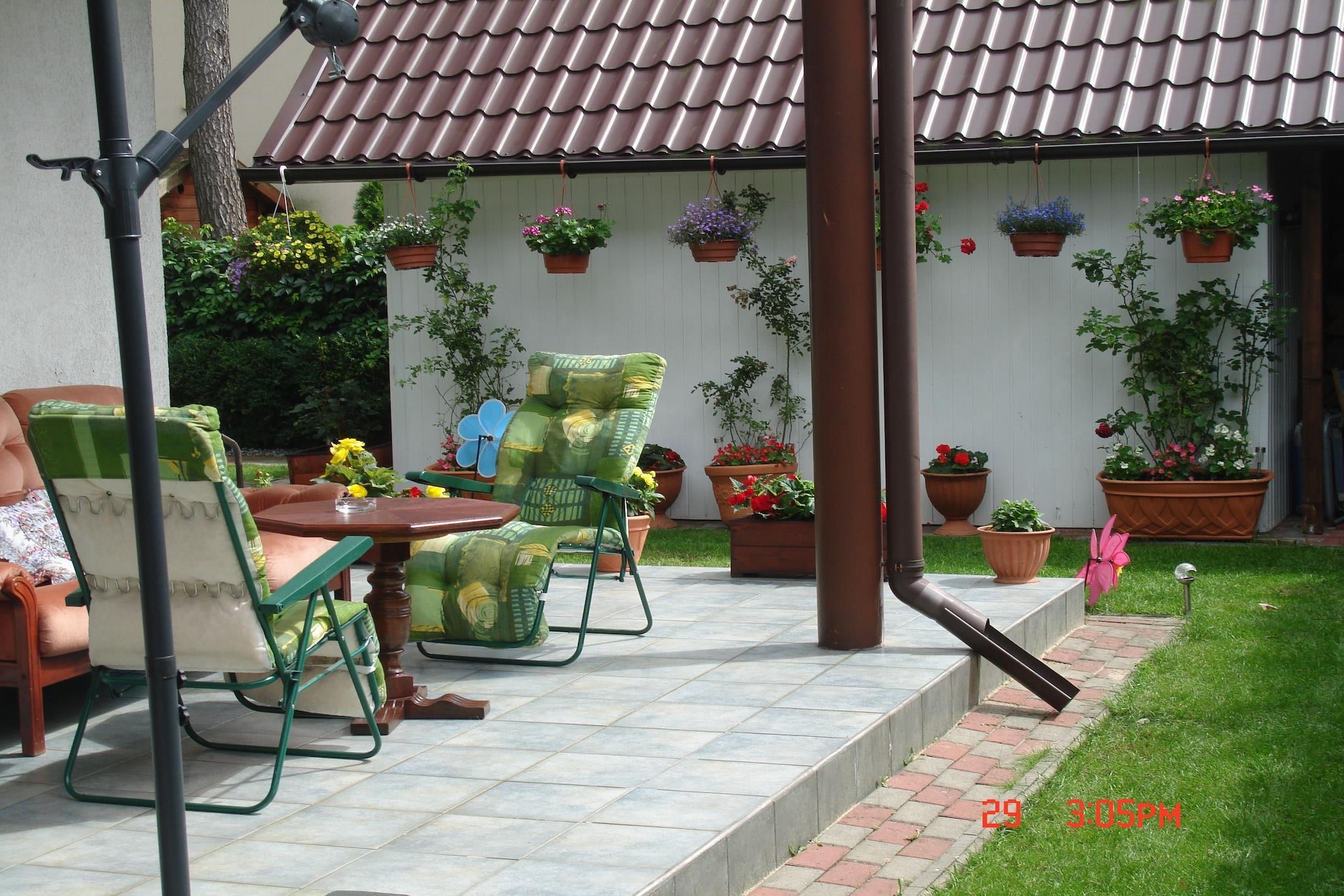 Ground floor: (open kitchen(hob(4 ring stoves, gas), electric kettle, toaster, coffee machine, oven, microwave, dishwasher, fridge-freezer), Living/bed room(single sofa bed, TV(satellite, german television channels), dining table)) Attic: (bedroom(double bed), Gallery bedroom(single sofa bed, single sofa bed), bathroom(bath tub, shower, toilet)) guest toilet, Children pool, seating area, grill, washing machine, balcony, terrace(roofed), garden, garden furniture, parking, parasol