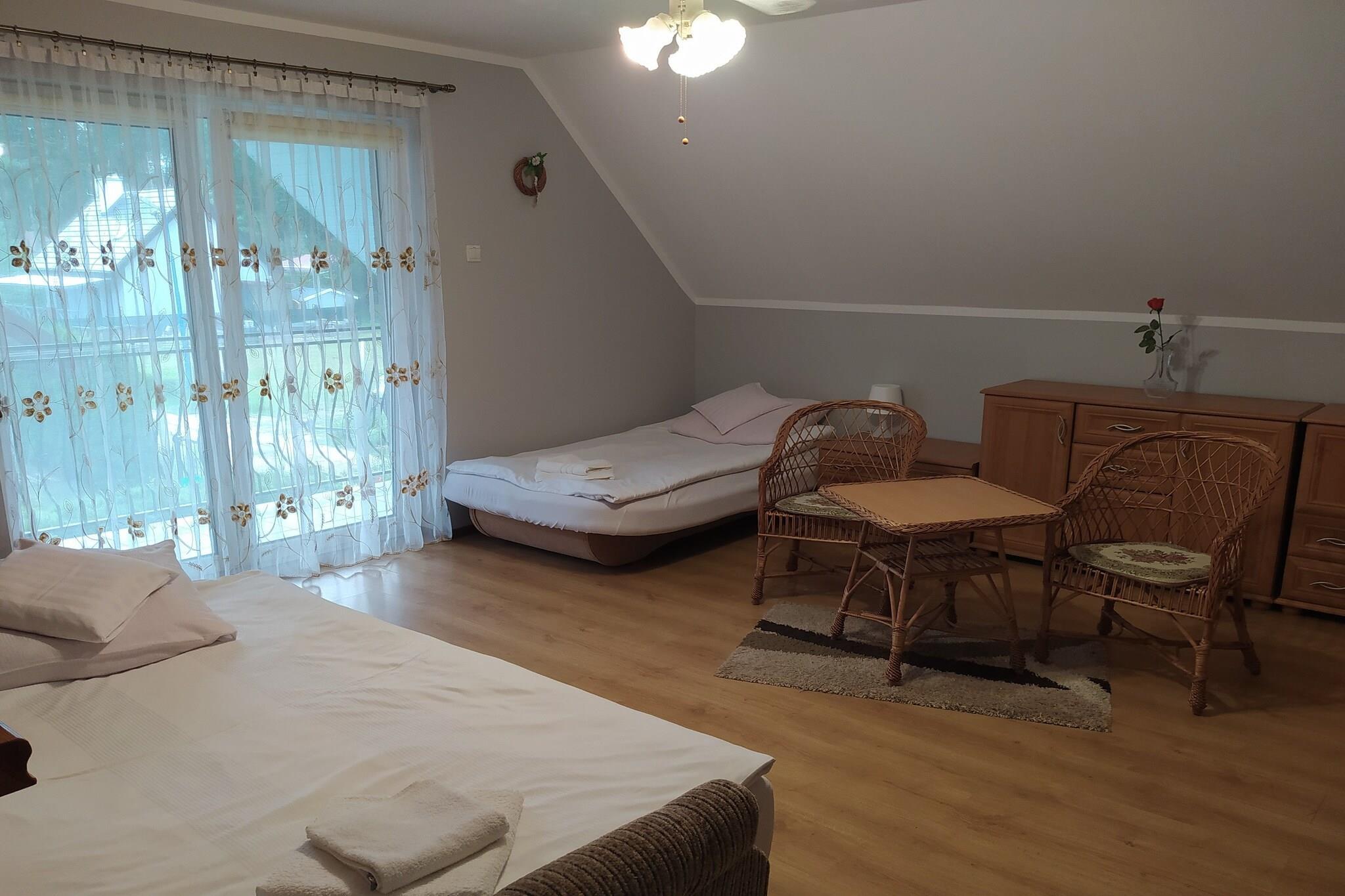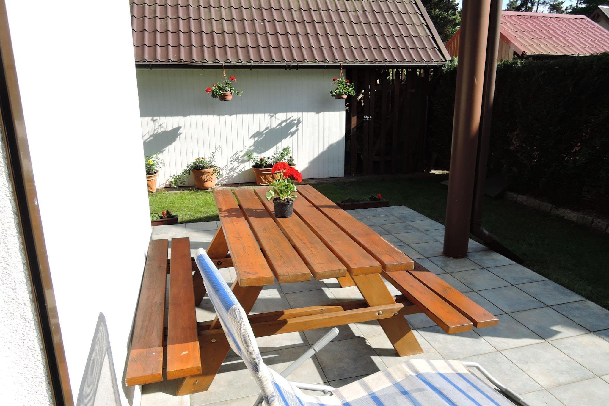 Detached holiday home with fireplace and private garden. Here you can spend relaxing holidays in the fresh air, because a covered terrace, a balcony and a barbecue area invite you to spend hours together. When the weather is cooler or in the evening, make yourself comfortable in front of the fireplace and make plans for the next day of your vacation. Morzyczyn (formerly Moritzfelde) is a tranquil village in western Pomerania. Those looking for peace and quiet and nature lovers will get their money's worth in the pristine nature. You can quickly reach the Madüsee with its promenade and the amphitheater, which is located on the water and is therefore a real eye-catcher. Activities nearby: It is only a few steps from your holiday home to the Madüsee. Fishing is possible in many places around the lake and there is also a surf school. However, if you prefer to work out on the mainland for a change, there is also the opportunity to play beach volleyball and tennis. In addition, there are four in-house bicycles available so that you can explore the scenic surroundings on long bike tours.