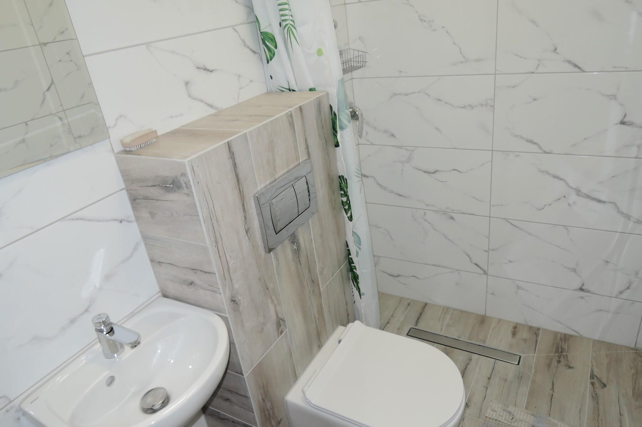The comfortable holiday apartment in Mrzezyno enjoys a unique location right next to sandy beaches, surrounded by lush forests, making it an ideal place to relax, unwind and regenerate. Located in the heart of the resort, it is an excellent starting point for discovering the city with its summer attractions and picturesque forest paths and roads that invite you to walk and cycle in the heart of nature. The apartment provides comfortable conditions for your stay, offering a spacious living room with comfortable beds, combined with an equipped kitchen, including a fridge and coffee maker and a bathroom with a shower. An additional advantage is a large terrace (on the first floor, shared with other guests) with an area of 40 m, from which there is a picturesque view, ideal for morning breakfasts in the fresh air or evening relaxation moments. Bed linen is available in the apartment. Guests are also guaranteed a parking space and broadband internet.