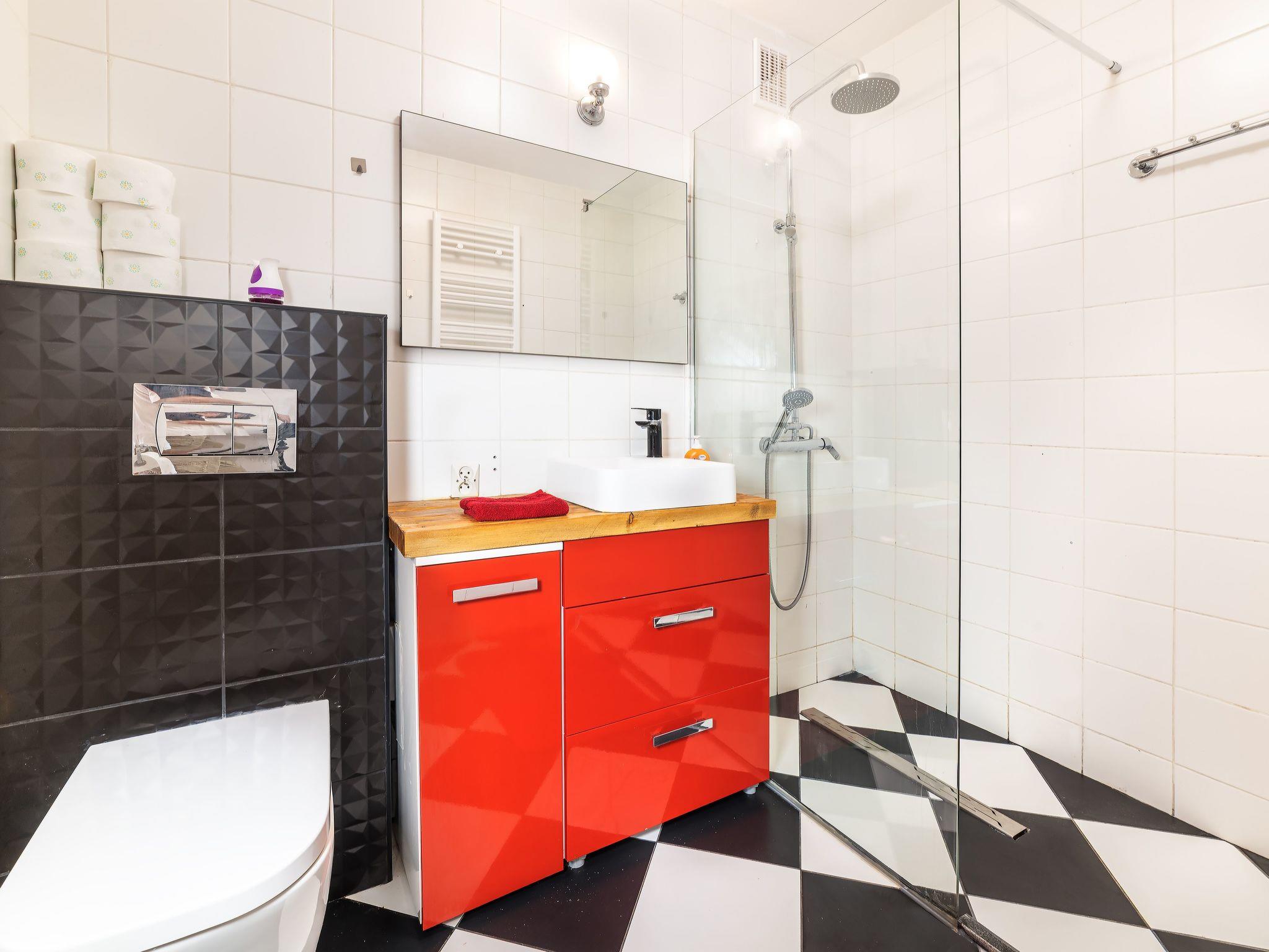 Inside, the flat offers a functionally furnished interior, adapted to the needs of modern travellers. The living room with kitchenette is the heart of the place, allowing you to spend time together, prepare meals on the induction hob or use the capsule coffee machine. The comfort of the stay is enhanced by the availability of a dishwasher, kettle, mini-oven and fan, which is particularly important on warmer days. The mezzanine bedroom is a cosy nook that guarantees a peaceful night's sleep.