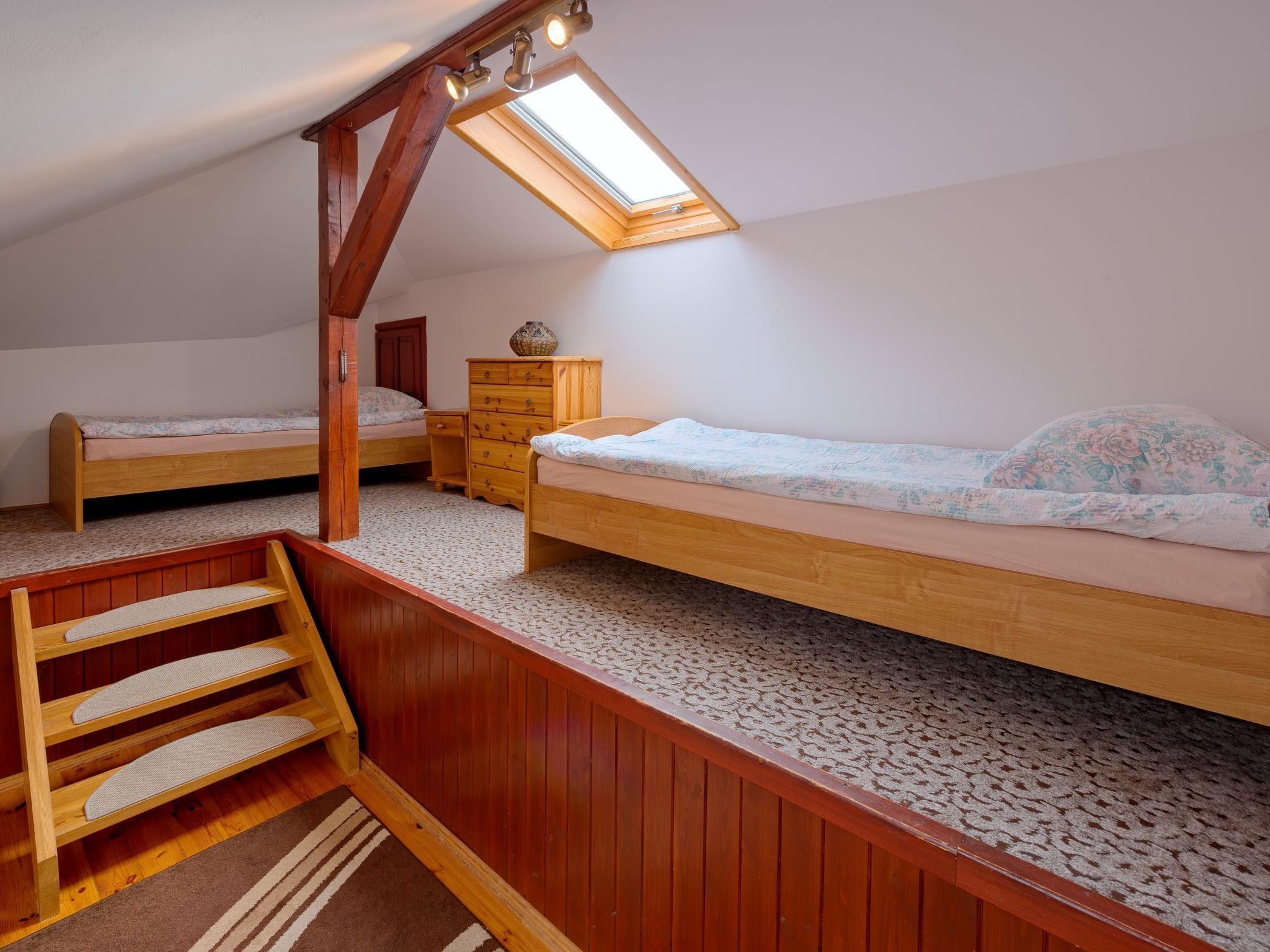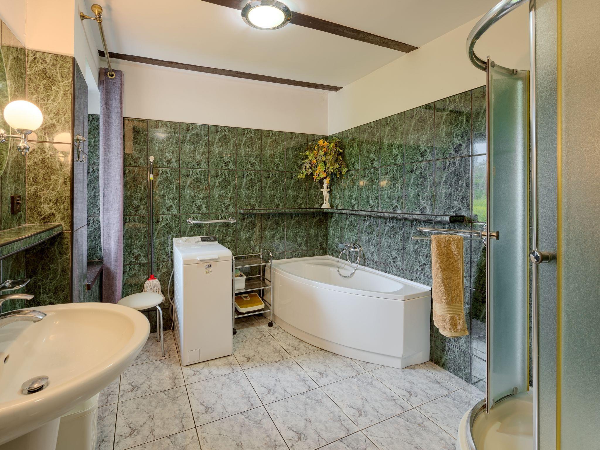 5-room house 200 m2 on 4 levels. Comfortable and stylish furnishings: entrance hall 27 m2. Living room 50 m2 with open-hearth fireplace and satellite TV. Exit to the garden. Kitchen 17 m2 (oven, dishwasher). Sep. WC. On the lower ground floor: playroom. Upper floor: 2 rooms, each room with 1 double bed. Bidet, bath/shower/WC with corner bath. Top floor: 1 room with 1 double bed and air conditioning. Open gallery with 3 beds. Oil heating (extra). Terrace furniture, deck chairs. Facilities: washing machine. Internet (WiFi). Garage (2 cars). Instead of an enclosed bedroom, some sleeping areas are located in an open-plan area (gallery, alcove, etc.). Karlowo 50