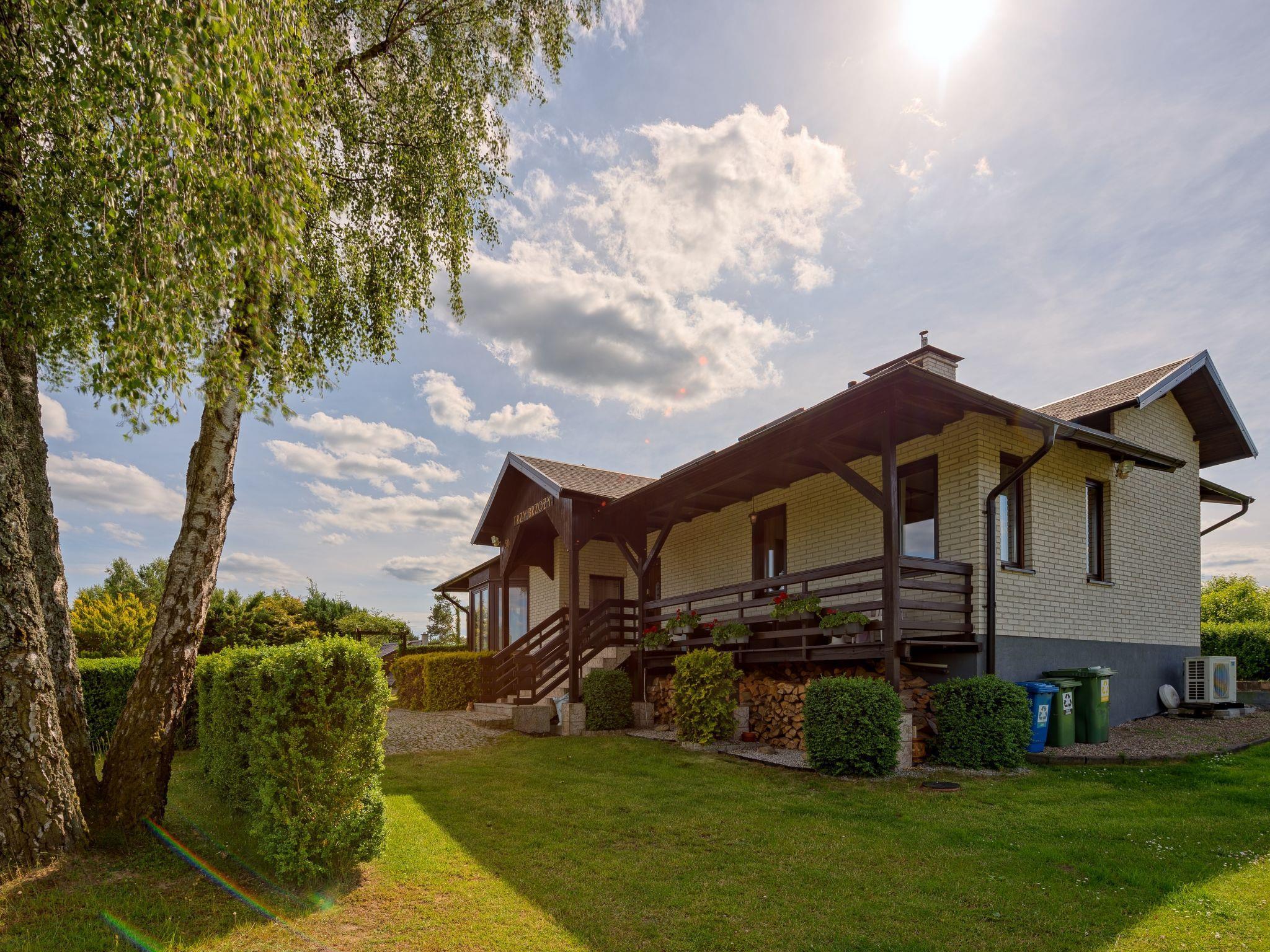 Single-family house "Trzy Brzozy". Along the wooded area, 100 m from the lake, 1 km from the beach. Private: property 1'600 m2 (fenced). Barbecue, barbecue house (swing). In the house: WiFi, washing machine, heating to be paid on the spot. Parking on the premises, single garage. Grocery 7 km, restaurant 7 km, café 500 m, bus stop 3 km, sandy beach 500 m. Riding stable 3 km, slopes 35 km. Nearby attractions: Kamienne kregi w Wesiorach 15 km, Kosciól z 1782 r. W Szymbarku 32 km, Koszalkowo-Wiezyca, Centrum Aktywnego Wypoczynku 35 km. There is also a slide with a swing for adults and children on the plot. Sandy beach by the lake and water sports equipment rental - in the "Dalmoru" recreation center 500 m away (there is a cafe - half board or full board). Rowing boat (free). Own (deep well). Deposit 1000 PLN. Access to the house via a dirt road. Kayaking nearby (June to October).