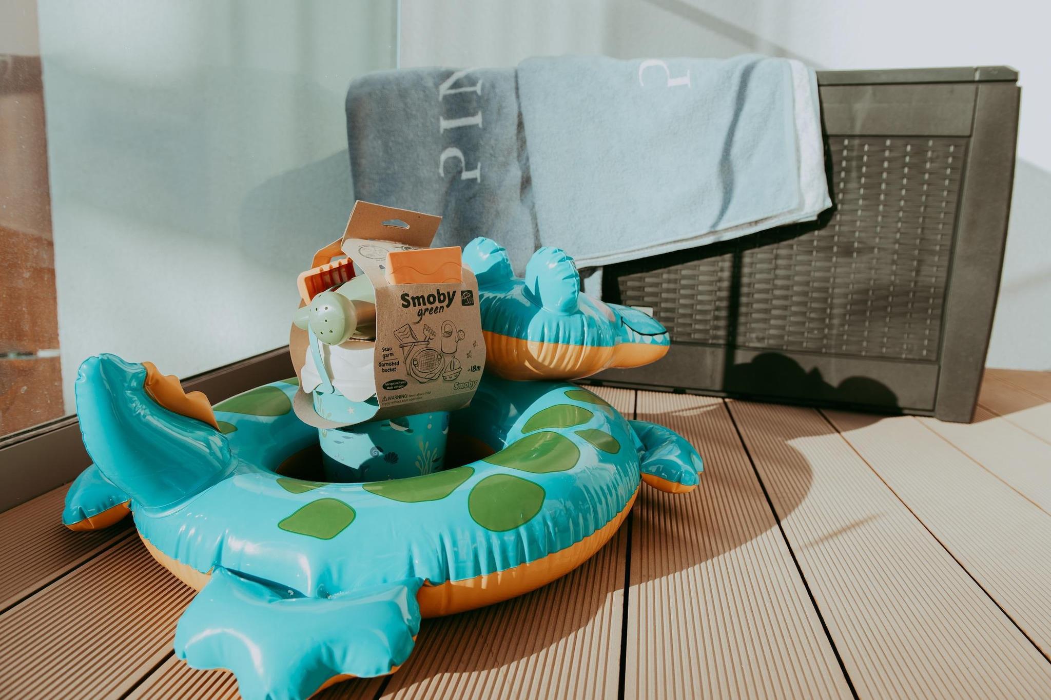 On the 2nd floor: (open kitchen(hob(2 ring stoves), electric kettle, hood, microwave, dishwasher, washing machine), Living/diningroom(single folding bed, double sofa bed, TV(flatscreen, german television channels), dining table), bedroom(double bed), bathroom(shower, washbasin, toilet, hairdryer)) Internet access, Parking, Play area, baby bath, Bubble bath(shared with other guests, indoor, heating element, 7 persons), sauna(paid), balcony, heating(through air conditioning), air conditioning, garden furniture, swimming pool(shared with other guests, heatable, indoor, including separate children’s swimming pool (depth 50cm), 20 x 6 m., opened from Jan upto and including Dec), lift, high chair, ironing board, iron, baby crib(free)