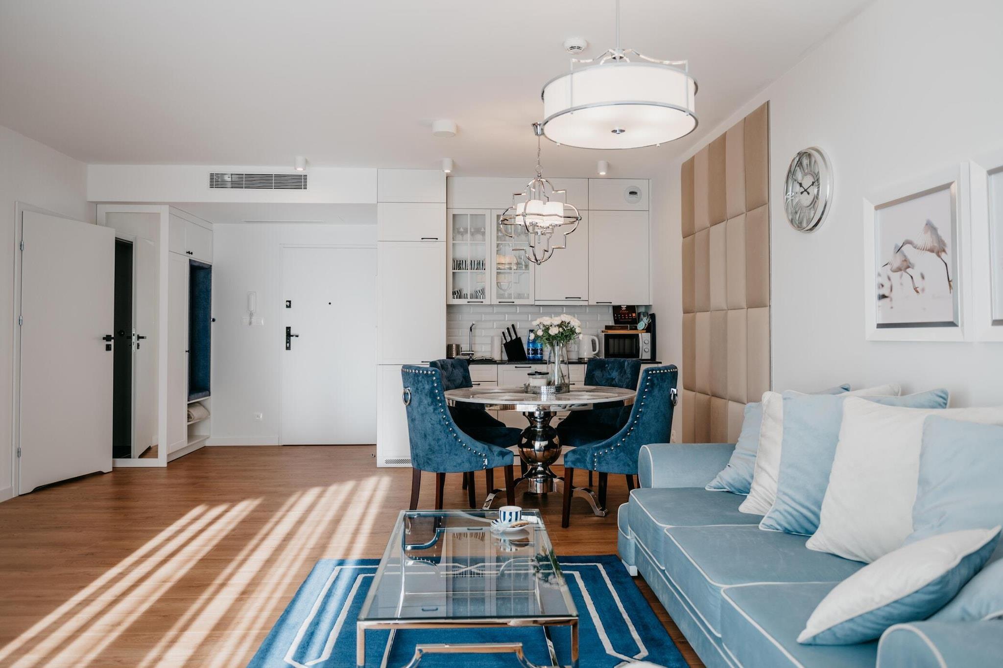 Perfect location, 80 m from the beach, in the centre of the resort. In addition to comfortable accommodation, the holiday complex offers a year-round SPA zone (for an additional fee): indoor recreational pool, children's pool, whirlpool, sauna, salt graduation tower. A luxurious, spacious holiday apartment consists of a living room combined with a kitchen, a bedroom and a bathroom with a shower. In the living room there is a fold-out double sofa and a fold-out single armchair, TV and a table with chairs. The living room has an exit to a spacious balcony. The bedroom has a comfortable double bed. The bedroom has an exit to a separate balcony. A washing machine is included. There is air conditioning with cooling and heating functions. Wireless internet is available. There is a partial sea view from the balconies. The price of the stay includes: electricity and water consumption, internet, parking, baby cot and highchair (prior notification required). Pobierowo is a holiday resort in the West Pomeranian Voivodeship. It is located on the shores of the Baltic Sea, in the centre of the picturesque Rewal Coast. It offers tourists a clean beach and a guarded bathing area. There is also a fishing base here, which is great as a background for souvenir photos. Children will be delighted with a visit to the Whale Park in nearby Rewal (approx. 7 km). In worse weather, a trip to one of several public indoor pools will be an ideal option. A rope park will also be fantastic entertainment for the whole family or a group of friends. The pride of the town and the entire region is the renovated narrow-gauge railway, which can be used for a charming trip to neighbouring resorts.
