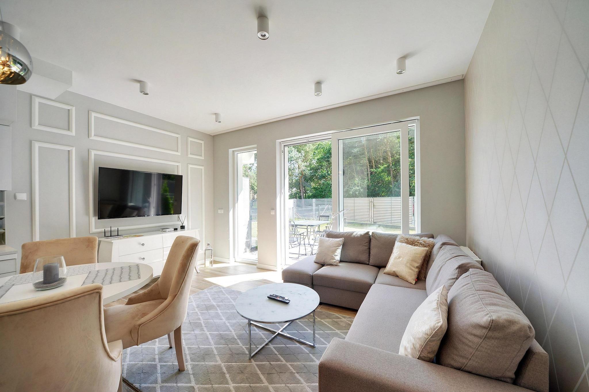 Quiet, peaceful location, 400 m from the sea. It is a series of terraced holiday homes, each with its own private garden. A comfortable, 2-level holiday home with a terrace (a complete set of garden furniture and barbecue equipment) and a small, private, fenced garden. On the ground floor there is a spacious living room (double sofa bed, TV, table with chairs) and a bathroom with shower. The living room is connected to the kitchen. On the first floor there are 2 separate bedrooms and an additional toilet. Central heating. Wireless internet is available. Guests are provided with a free parking space. The price of the stay includes: electricity and water consumption, internet, parking. Baby cot and high chair on request. Pobierowo is a holiday resort in the West Pomeranian Voivodeship. It is located on the shores of the Baltic Sea, in the center of the picturesque Rewal Coast. It offers tourists a clean beach and a guarded bathing area. There is also a fishing base, which is a great background for souvenir photos. Children will be delighted with a visit to the Whale Park in nearby Rewal (approx. 7 km). In bad weather, a trip to one of several public indoor pools will be an ideal option. The rope park will also be fantastic entertainment for the whole family or a group of friends. The pride of the town and the entire region is the renovated narrow-gauge railway, which can be used for a charming trip to neighboring resorts.