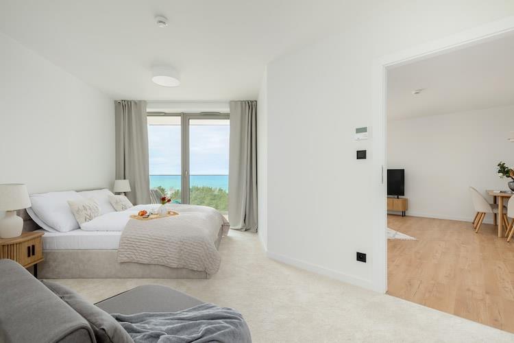 A dream location, 80 meters from the beach, within the resort center. In addition to comfortable accommodation, the resort complex offers a year-round spa area (included in the price): an indoor recreational pool, children's pool, whirlpool, sauna, and graduation tower. A comfortable, spacious holiday apartment (6th floor, elevator) with direct sea views. It consists of a living room with a kitchen, a bedroom, and a bathroom with a shower. The living room features a double sofa bed, a TV, and a dining table. The bedroom has a comfortable double bed and an additional fold-out bed for one person. There are two balconies with a complete set of lounge furniture. The apartment is equipped with air conditioning with cooling and heating functions. Wireless internet is available. Parking is included in the price: electricity and water consumption, heating, air conditioning, access to the spa area (swimming pools, sauna, whirlpool), internet, and parking. A baby cot and high chair are available upon request. Pobierowo is a resort town in the West Pomeranian Voivodeship. It lies on the shores of the Baltic Sea, in the center of the picturesque Rewal Coast. It offers tourists a clean beach and a guarded swimming area. There's also a fishing base here, perfect for souvenir photos. Children will love a visit to the Whale Park in nearby Rewal (approximately 7 km away). In inclement weather, a trip to one of several public indoor pools is ideal. The ropes course is also fantastic fun for the whole family or a group of friends. The town and the entire region are proud of the renovated narrow-gauge railway, which offers a charming excursion to neighboring resorts.