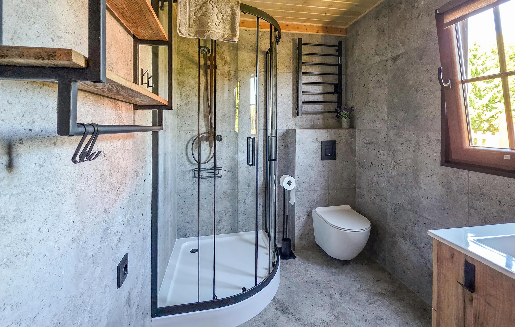 - WC mit warmem und kaltem Wasser, Dusche