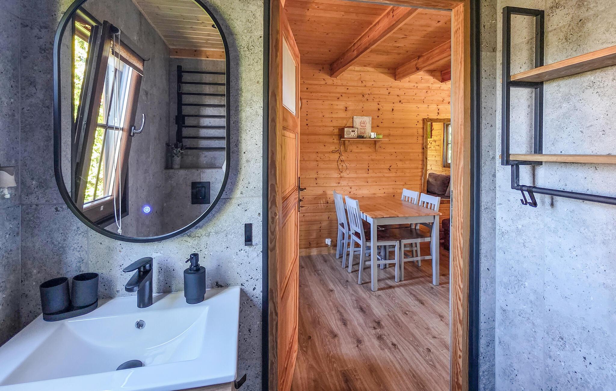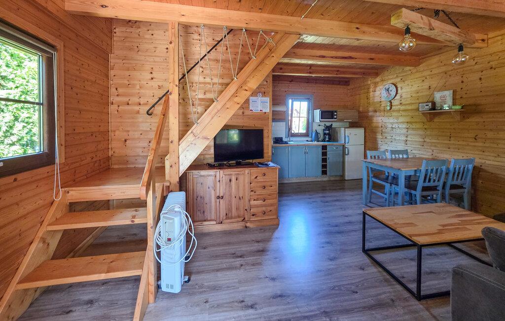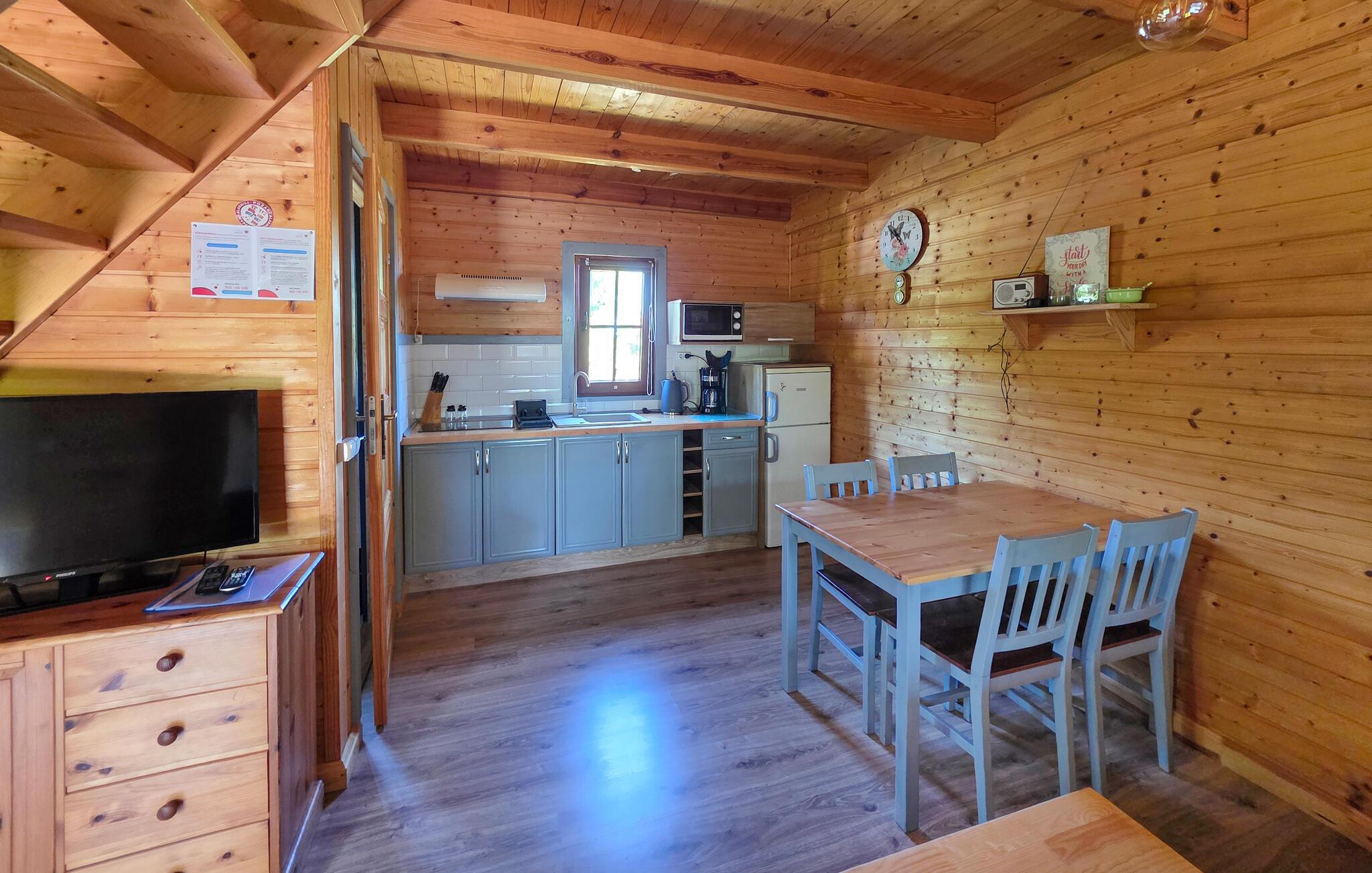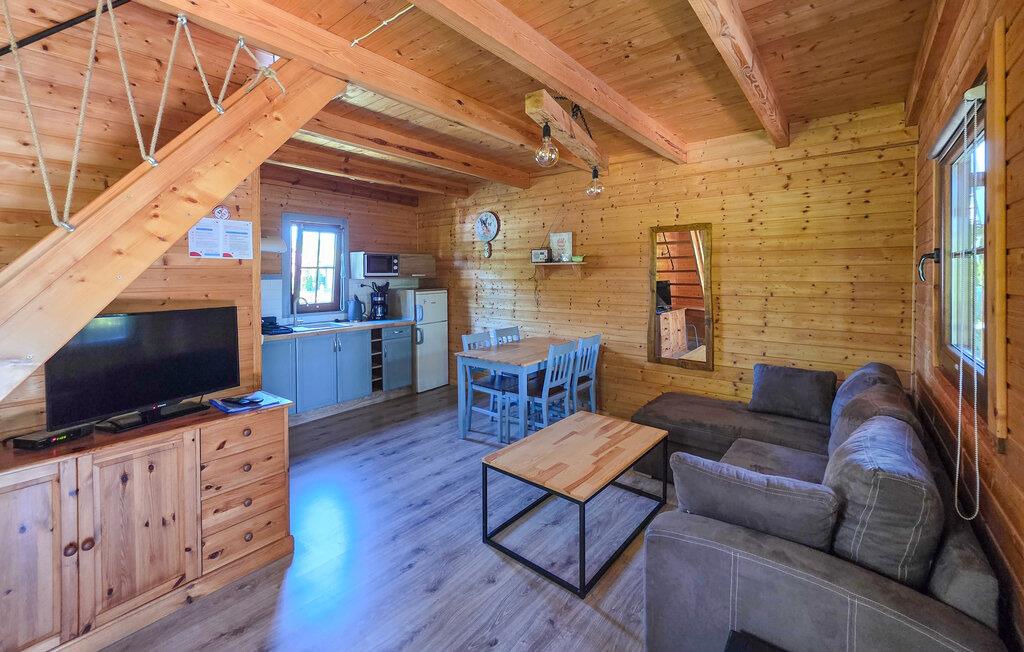Willkommen in dem komfortablen und einladenden Holzhaus, das Sie wenige Schritte vom See erwartet und Ihnen den idealen Rahmen für einen erholsamen Urlaub nahe der Natur bietet. Genießen Sie eine wunderbare Zeit in den ansprechenden Räumen, die wohnlich gestaltet sind. Freuen Sie sich auf gemütliche Abende mit gemeinsamen Mahlzeiten und machen Sie es sich abends auf dem einladenden Sofa bequem.