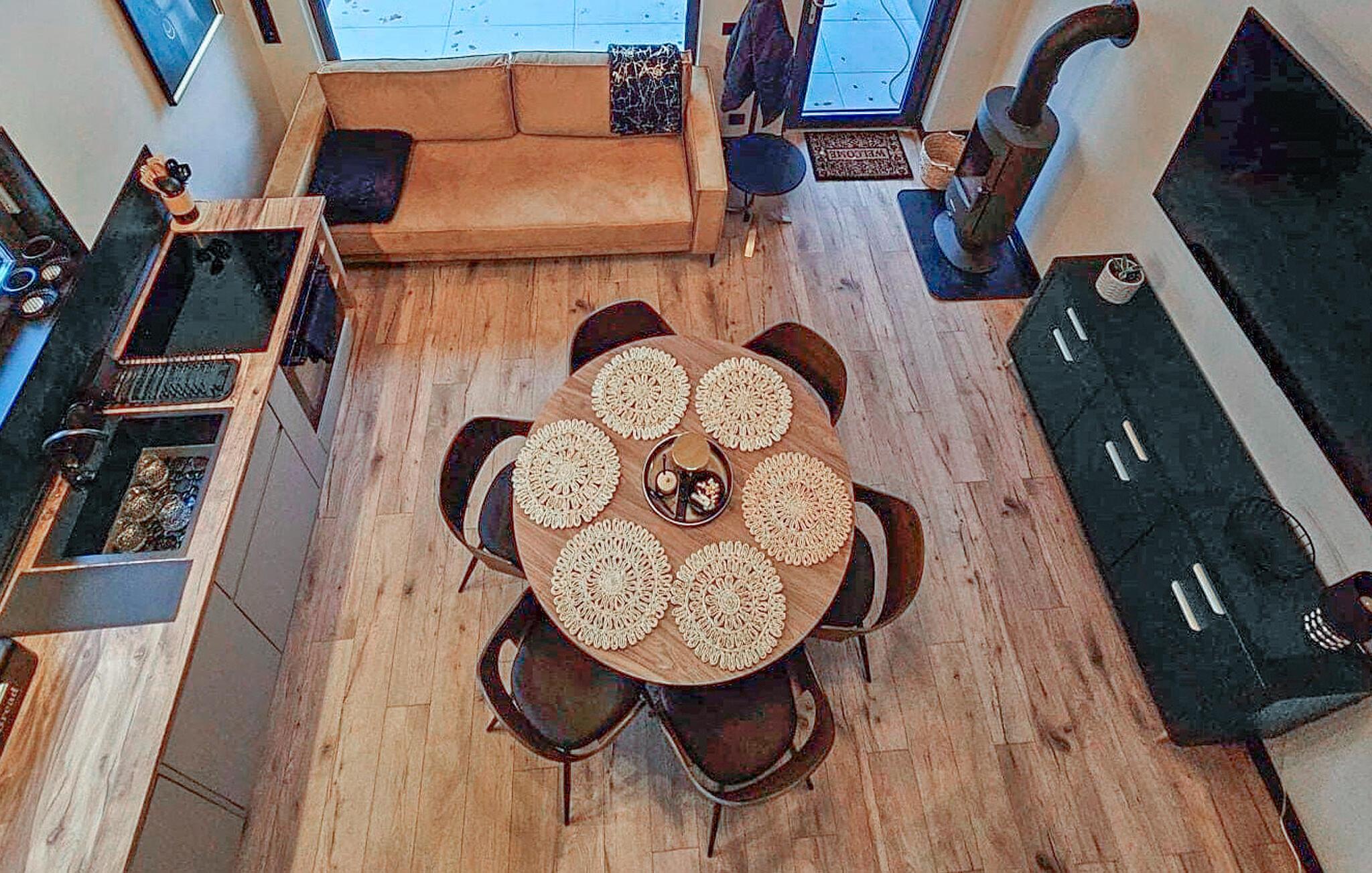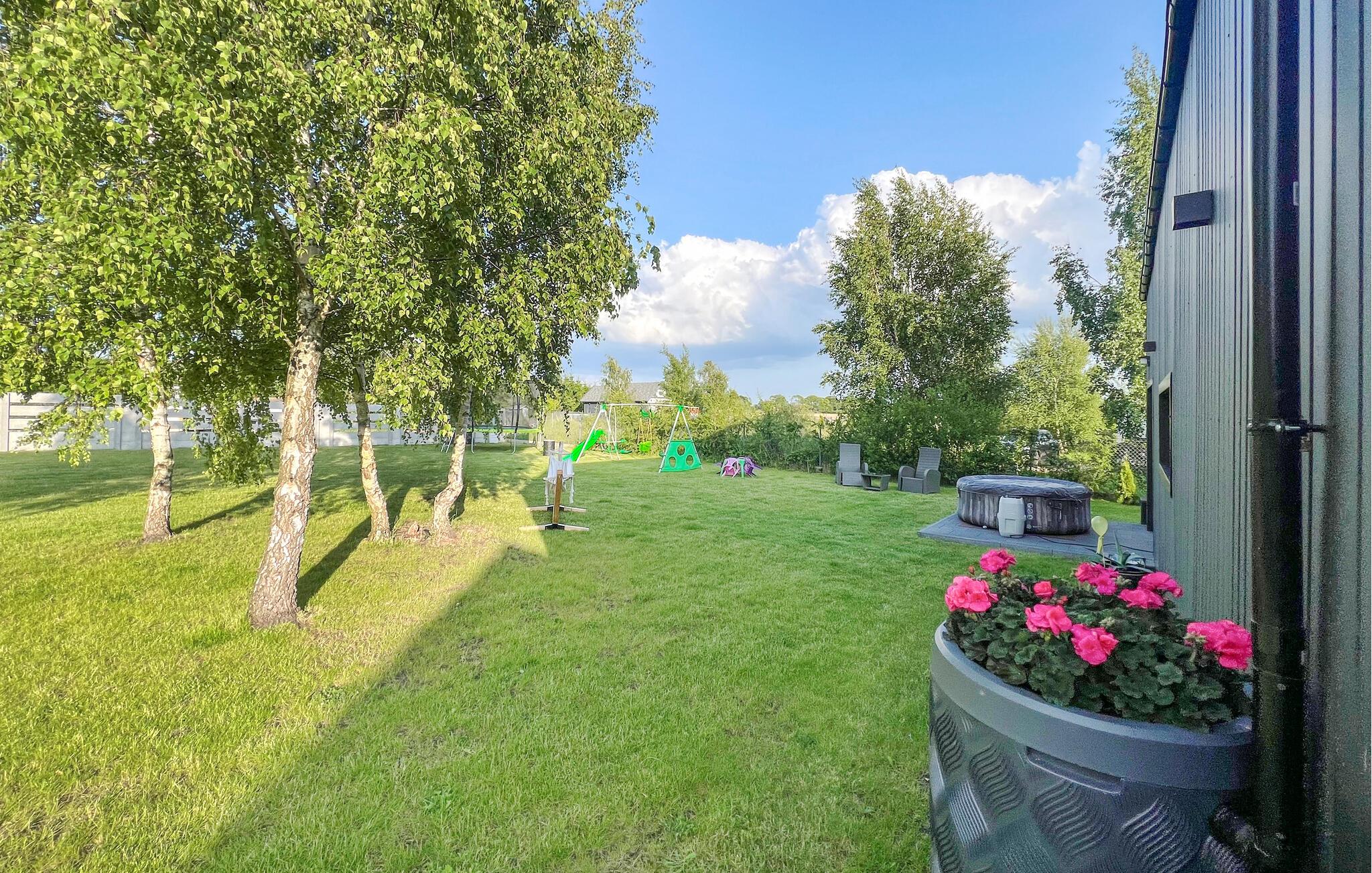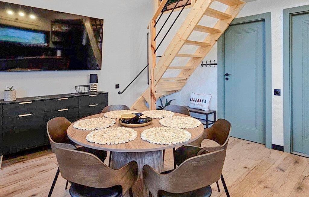Dieses stilvolle Ferienhaus auf zwei Ebenen begeistert mit einer hochwertigen Einrichtung und großen Fensterfronten, die den Innenraum mit dem Garten verbinden. Lichtdurchflutete Räume schaffen für Sie eine einladende Atmosphäre, ideal für entspannte Stunden mit der Familie oder Freunden. Im Wohnbereich können Sie sich wohlfühlen, während die offene Küche zu gemeinsamen Kochabenden einlädt. Der Garten mit Terrasse bietet Ihnen Platz zum Entspannen oder für gesellige Grillabende.