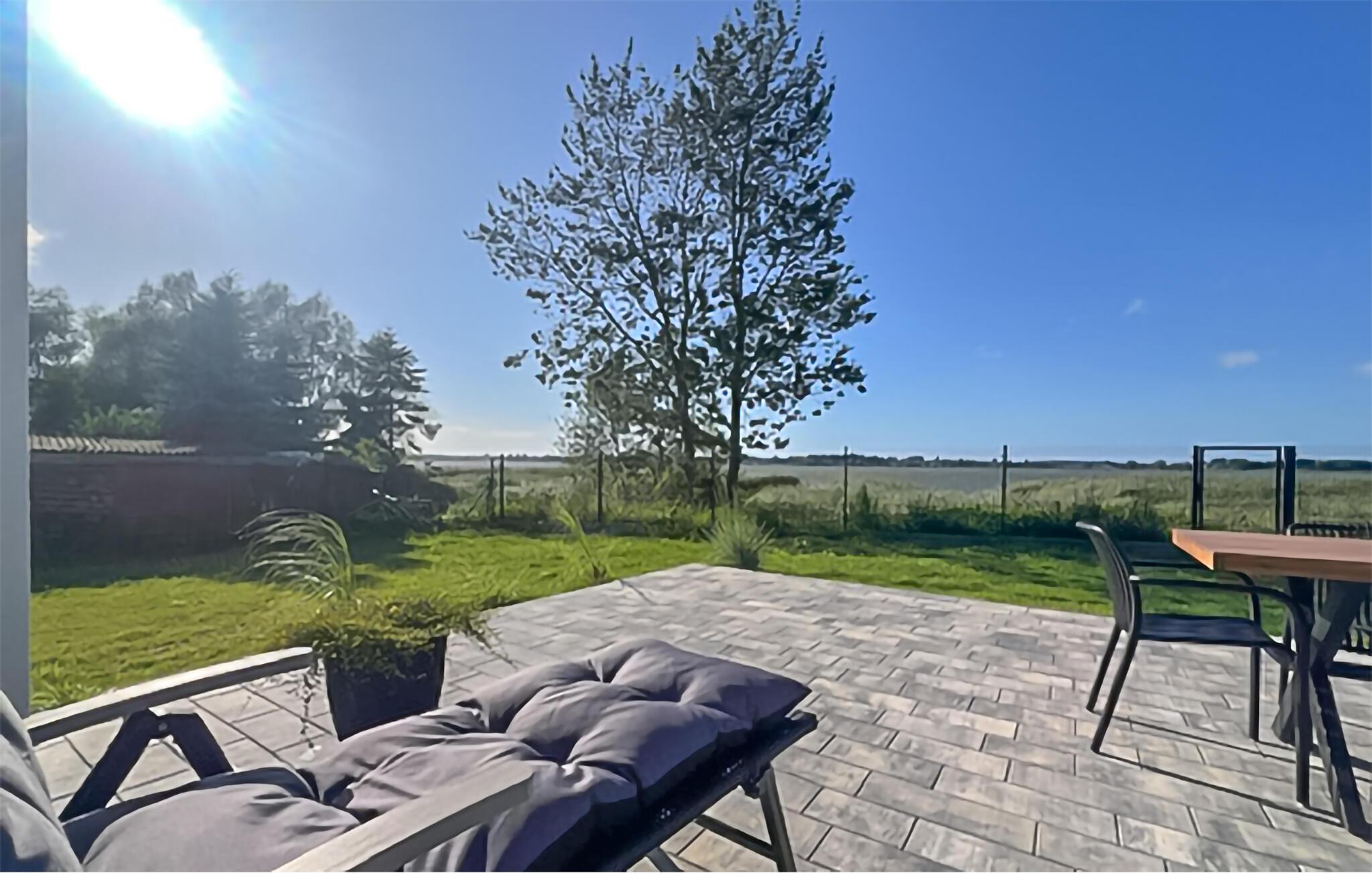 Auf der offenen Terrasse können Sie die friedliche Atmosphäre bei einem Frühstück oder einem stimmungsvollen Grillabend auf sich wirken lassen. Beobachten Sie Ihre Kinder beim Spielen mit dem Hund im Garten und gönnen Sie sich abends ein Glas Wein.
