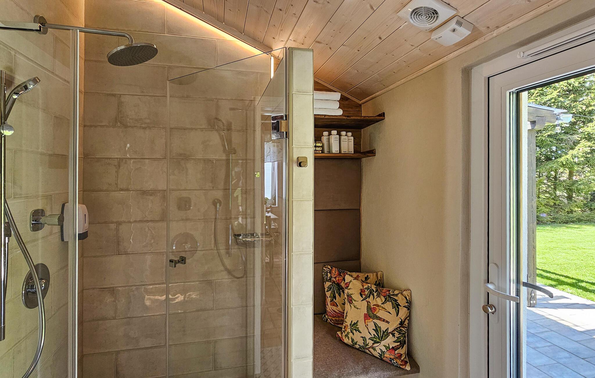 - WC mit warmem und kaltem Wasser, Dusche