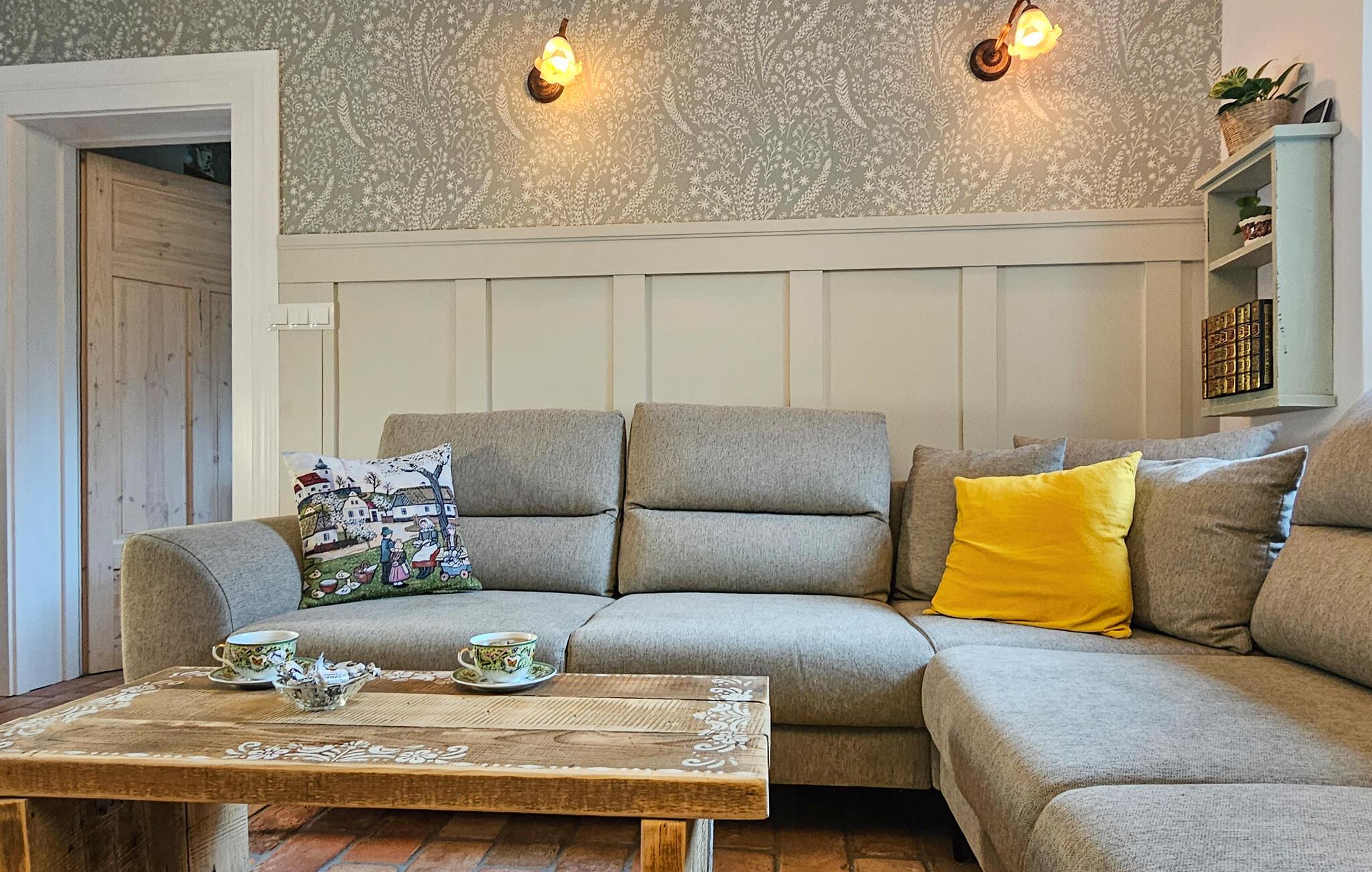 Dieses gemütlich und komfortabel eingerichtete Ferienhaus bietet Ihnen die Möglichkeit, mit der ganzen Familie entspannte Tage fernab vom Alltag zu genießen. Freuen Sie sich auf gesellige Mahlzeiten im liebevoll gestalteten Essbereich, gönnen Sie sich wohlige Momente in der Sauna und veranstalten Sie harmonische Spieleabende auf dem einladenden Sofa.
