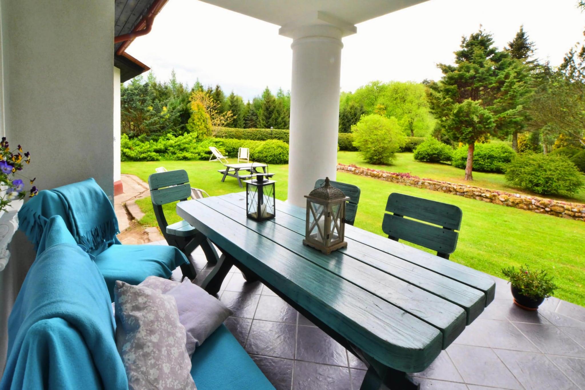 Large holiday villa with modern facilities in an idyllic, rural area. Surrounded by peace, quiet and undisturbed contact with nature. The house has a large, private garden with an adjacent forest. Spacious, well-equipped house with a covered terrace. On the ground floor there is a large living room with TV, fireplace and a seating set. On the ground floor there is also a dining room with a large table, a well-equipped kitchen (+ a separate pantry), 2 bedrooms and a bathroom with a bathtub. On the first floor there is an additional living room with lounge furniture, 4 bedrooms (including 1 bedroom alcove in the living room) and a bathroom with a shower. Central heating + fireplace (wood for an additional fee). Wireless internet is available. The house is located in the middle of forests, near the river (fishing, kayaking). In the vicinity there are excellent opportunities for hiking and cycling. There is a place for a bonfire and a barbecue gazebo (for shared use with the host). In the vicinity there is a host's house, where you can order healthy, home-cooked meals (most products are naturally bred and cultivated). Slow food, slow cooking, slow living - these are the rules here. The hostess bakes cakes, makes preserves for guests, invites you to taste her own liqueurs. The friendly hostess speaks German and can give you many tips on nearby attractions. There is a publicly accessible garden house with a fireplace and samovar on the premises. The price of your stay includes: water and electricity consumption, internet, parking, tourist tax. Cot for a child, highchair for children on request. The silence, forests and unpolluted waters are conducive to the relaxation of people who like nature. The surroundings encourage trips, mushroom picking, fishing and bloodless hunting. The Knight's Castle in Krag on the Castle Lake (9 km), Polanów (2 km), and there the Water Mill Complex, kayaking trips, the Red Bridge on the Grabowa River.