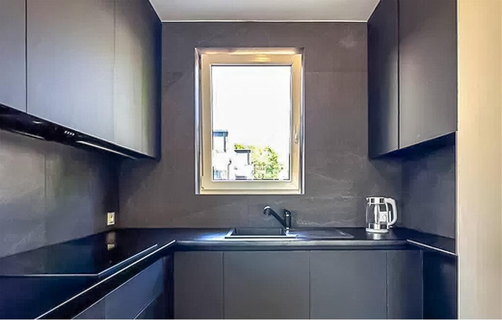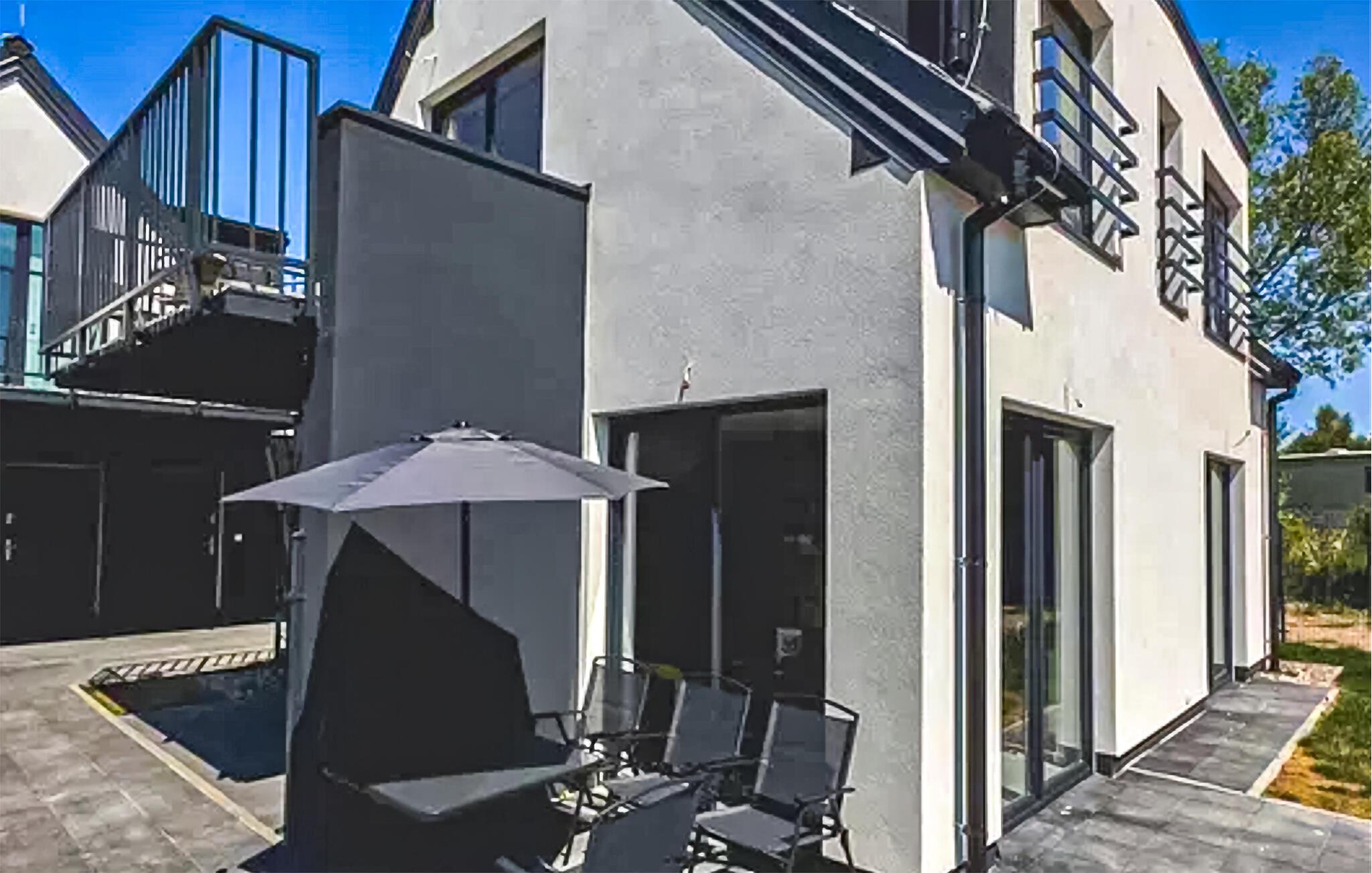 Ihre stilvolle Unterkunft bietet ideale Bedingungen für einen erholsamen Urlaub an der polnischen Ostseeküste. Machen Sie es sich im hellen Wohnbereich gemütlich. Große Fensterfronten lassen viel Licht herein und verbinden den Innenraum mit dem gepflegten Garten. Ruhen Sie sich auf dem bequemen Sofa aus oder genießen Sie Ihre Mahlzeiten am Esstisch mit Blick ins Freie. Die Küche ist modern und funktional ausgestattet. Bereiten Sie hier in aller Ruhe Ihre Lieblingsgerichte zu.