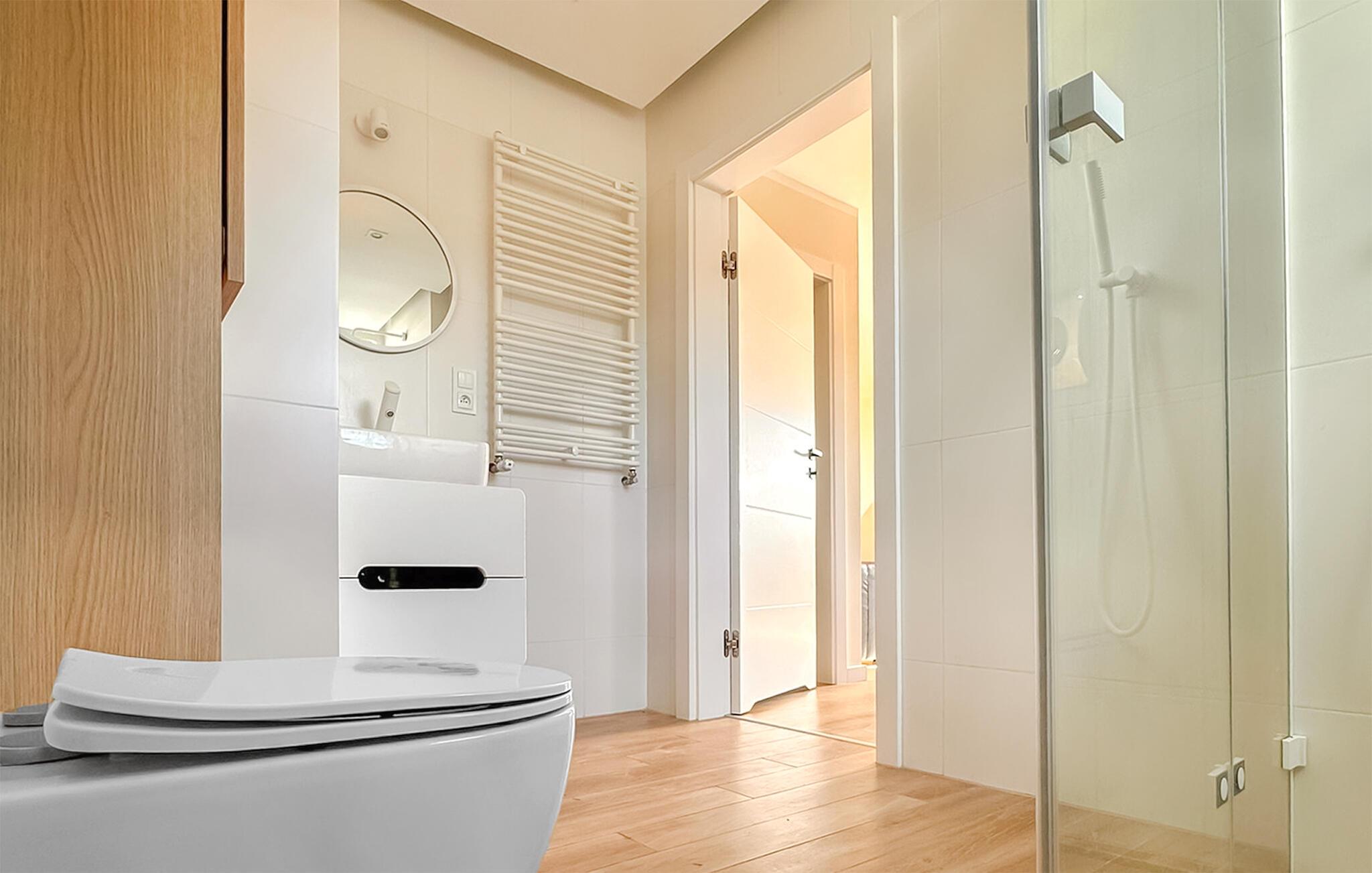 - WC mit warmem und kaltem Wasser, Dusche