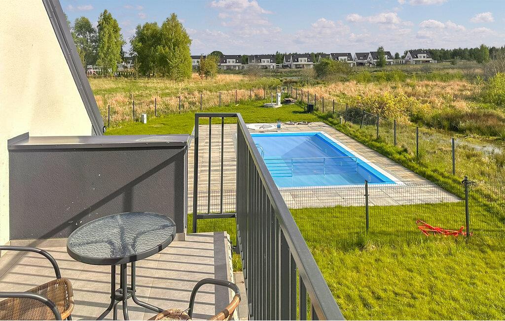 Genießen Sie eine entspannte Auszeit in dieser modernen Ferienwohnung mit Zugang zum Pool.
