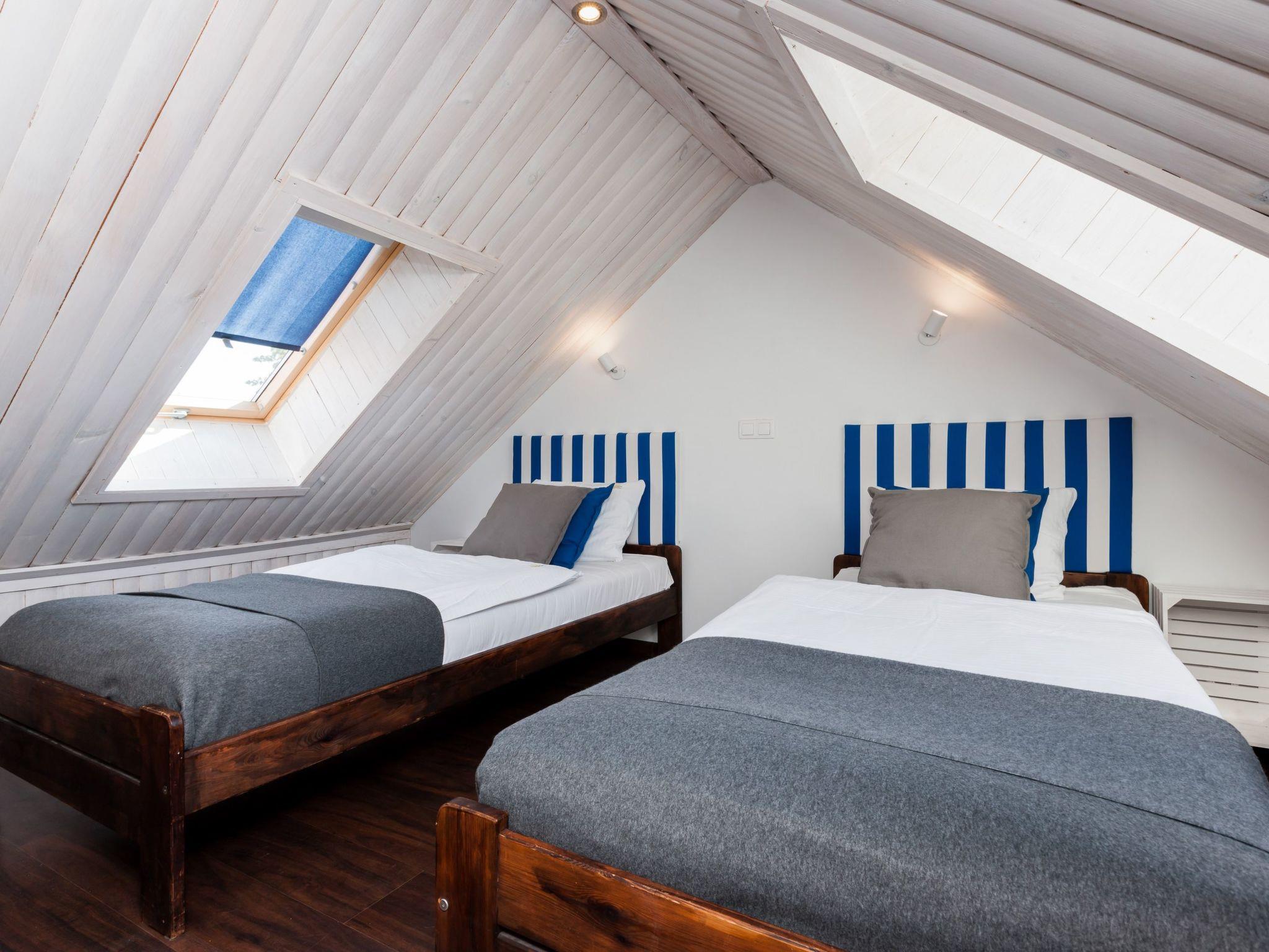 Our offer includes the Captain's Cottages, a novelty prepared with the most demanding customers in mind. Each of our terraced flats offers approximately 60 m² of living space, designed to provide comfortable relaxation for up to 6 people. On the ground floor there is a comfortable living room, a fully equipped kitchen with dining table and a bathroom, while on the first floor there is a spacious bedroom with a double bed . Another bedroom, located in the attic, is equipped with two single beds and provides a picturesque view of the sea.
