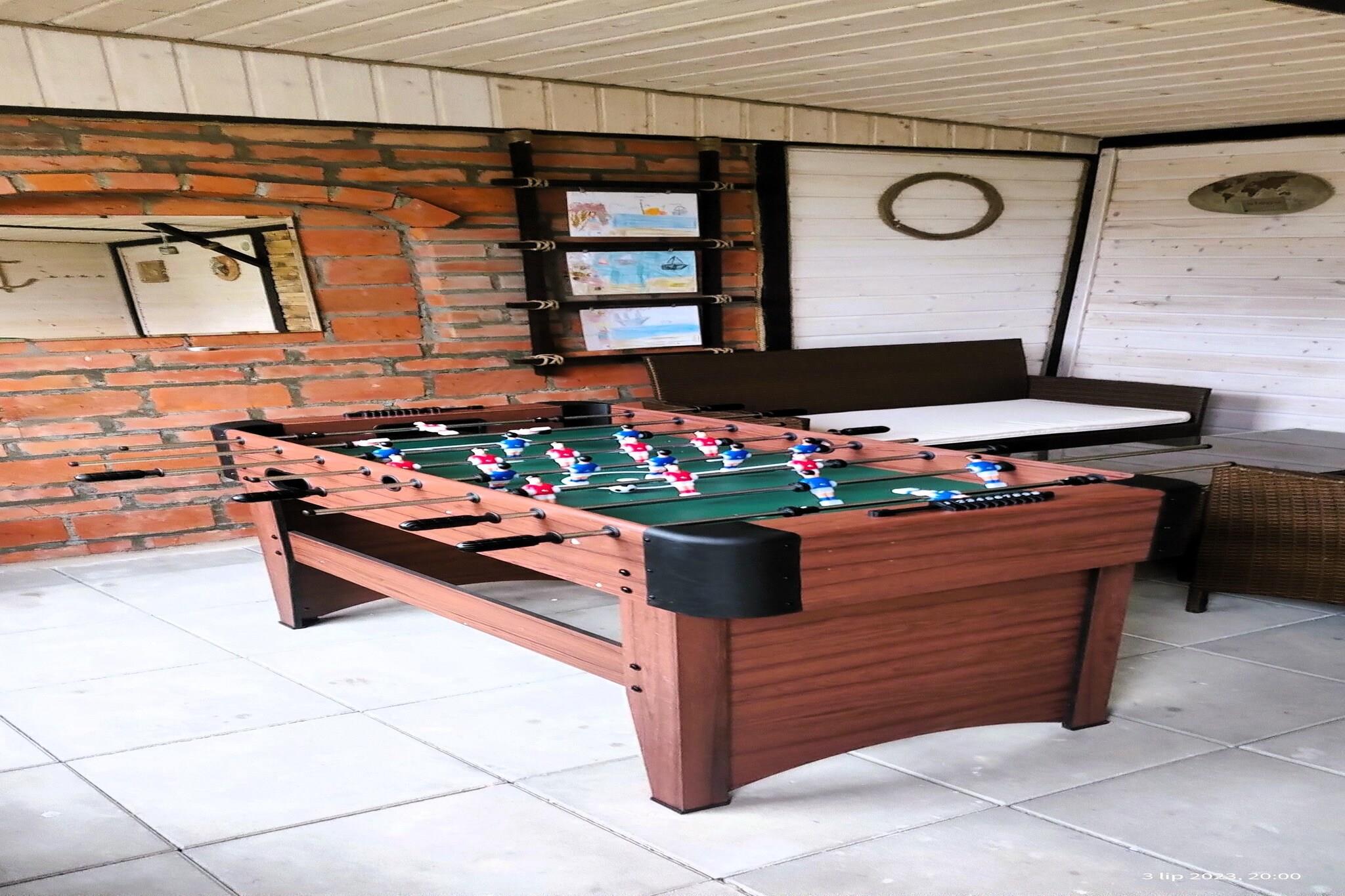Ground floor: (Kitchenette(electric kettle, boiling water tap, toaster, cooker(2 ring stoves, electric), microwave, dishwasher, fridge-freezer), Living/bed room(double sofa bed, TV, dining table), bathroom(shower, washbasin, toilet)) On the 1st floor: (bedroom(single bed, single bed, single bed), bedroom(single sofa bed, double bed, TV)) Garden Furniture , terrace, garden(shared with other guests, landscaped garden), BBQ, swimming pool(shared with other guests, outside, opened from Jun upto and including Aug), play equipment, table football, hammock, hairdryer, Swing set