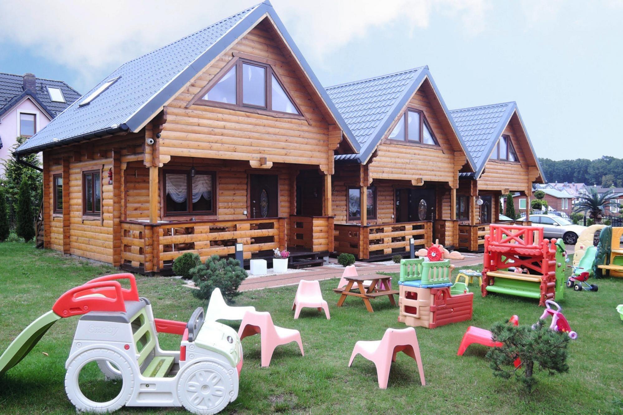 Cozy wooden houses with WiFi, near one of the most beautiful beaches on the Polish Baltic coast. With an area of 60 square meters, each house can accommodate up to 6 people. They are well equipped with a flat screen TV and modern kitchenette, as well as new shower rooms. There is also a covered terrace at the front and a sitting area with a grill at the rear of the house. There are plenty of children's play equipment right outside the door, so you can let the little ones play outside and keep an eye on things. Rewal is one of the most beautiful and popular seaside resorts on the Polish Baltic Sea. The wide sandy beach below the stone coast is made for relaxing and enjoyable swimming days. Shops for daily needs and some souvenir shops can be found in the town. For extensive shopping, you should take a trip to Kolberg or Stettin. Details: WiFi Activities nearby: After a day spent on the beautiful beaches - which have been awarded a Blue Beach certificate - it's time to explore the scenic walking trails, parks and the fun town center. The latter offers, in addition to souvenir shops, restaurants, seafood restaurants, bars, nightclubs and cafes with breathtaking sea views. At night, the promenade turns into a lively stage for street performers. So enjoy your vacation time away from the beach. Not suitable for people with reduced mobility