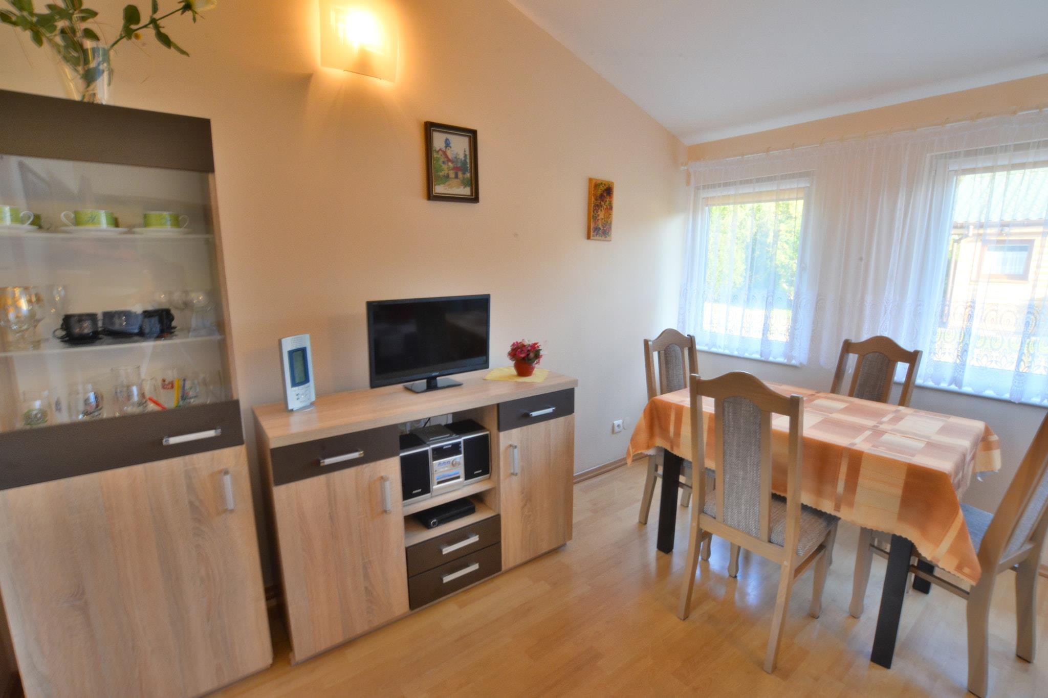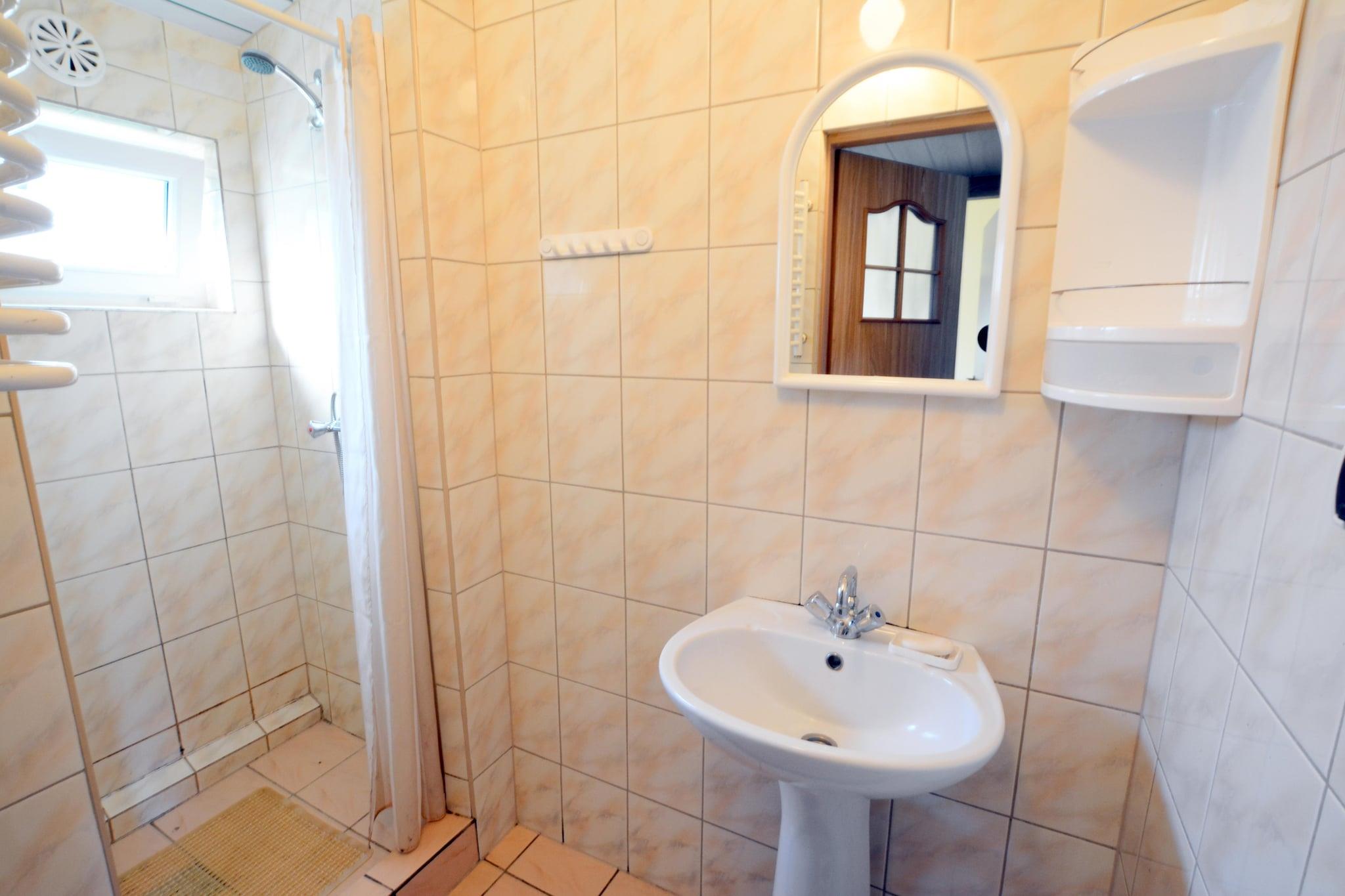 Rosnowo is a tourist town located in the West Pomeranian Voivodeship, 20 km from Koszalin, on the Rosnowskie Lake. The location among the forests with access to the lake (only 180 m to the shore from the house) with a sandy beach is a perfect starting point for the whole family. For longing sea views, the nearest seaside town is Mielno, about 30 km away. There are 3 identical cottages on a shared, fenced property. Guests can count on peace and quiet here. The comfortable, cozy holiday home has 2 separate bedrooms, a living room, a well-equipped kitchen, a bathroom with a shower and a toilet. In the living room there is a table with chairs, a fold-out 2-seater sofa and a TV. Electric heating. The cottage has a covered terrace, where a set of lounge furniture is waiting. A brick grill fireplace is available. The price of the stay includes: bed linen, tourist tax, parking. Rosnowskie Lake is rich in many types of fish and is a very popular reservoir for anglers. Enthusiasts of swimming and kayaking will also find something for themselves here. In the area there is a water equipment rental (rowing boats, kayaks, pedal boats). At a distance of approx. 400 m, there is a year-round resort with full infrastructure, which can also be used by guests from outside the hotel (of course for an additional fee): indoor swimming pool with jacuzzi (open in the summer season), salt cave, sauna, gym, solarium, bar, restaurant. In the area, it is worth seeing elements of the hydrotechnical complex of the Rosnowo hydroelectric power plant with a 10 m high dam and the remains of the farm complex from the turn of the 19th and 20th centuries. Several bicycle trails run through Rosnowo, which can be used to reach the neighboring, attractive settlements. In Koszalin (the provincial capital), which is about 20 km away, you can find various shops, shopping malls and many good restaurants.