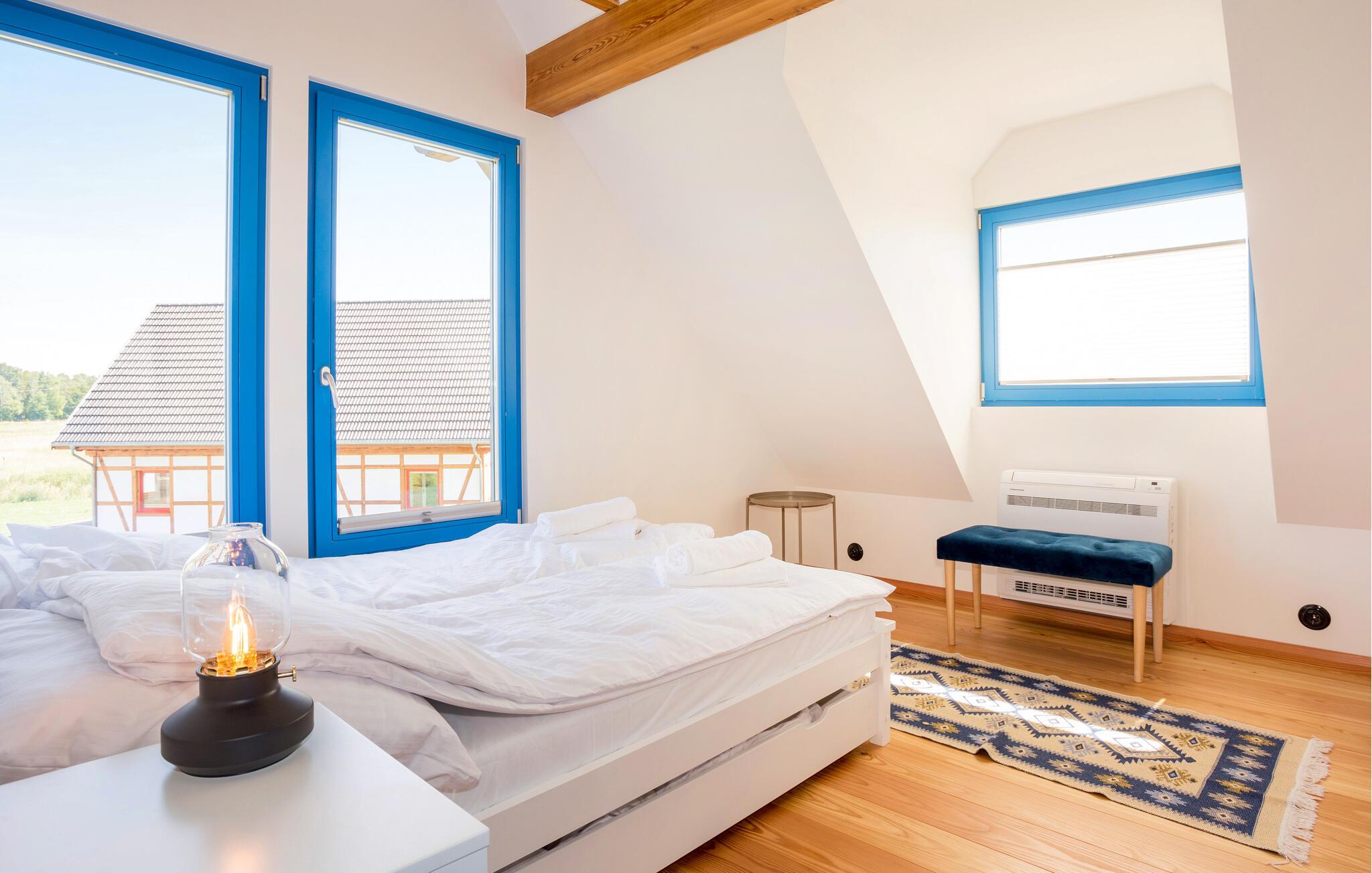 Reisen Sie in die Nähe von Rowy und genießen Ihren Aufenthalt in diesem modernen und charmanten Fachwerkhaus. Es befindet sich in einer Wohnanlage mit weiteren Ferienhäusern und lädt somit zu einem Urlaub mit Freunden oder der Großfamilie ein, ohne die Privatsphäre zu verlieren. Die lichtdurchfluteten Räume des Hauses, die geschmackvolle Einrichtung und das wohnliche Ambiente auf zwei Etagen machen Ihren Urlaub zum Erfolg. Freuen Sie sich auch Ihre Morgen oder Abende auf der Terrasse ausklingen zu lassen, den Blick über die Landschaft schweifen zu lassen und über Ihre Tageserlebnisse zu sprechen.