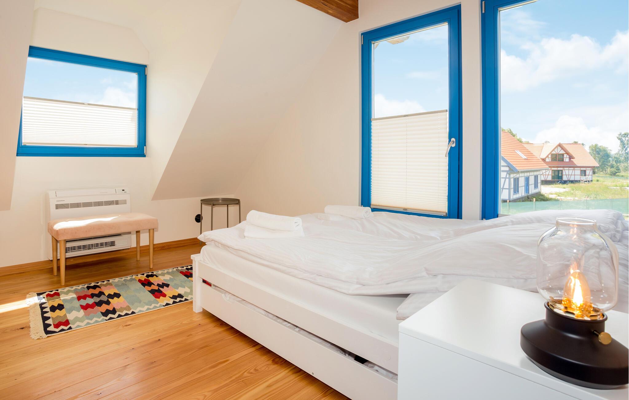 Reisen Sie in die Nähe von Rowy und genießen Ihren Aufenthalt in diesem modernen und charmanten Fachwerkhaus. Es befindet sich in einer Wohnanlage mit weiteren Ferienhäusern und lädt somit zu einem Urlaub mit Freunden oder der Großfamilie ein, ohne die Privatsphäre zu verlieren. Die lichtdurchfluteten Räume des Hauses, die geschmackvolle Einrichtung und das wohnliche Ambiente auf zwei Etagen machen Ihren Urlaub zum Erfolg. Freuen Sie sich auch Ihre Morgen oder Abende auf der Terrasse ausklingen zu lassen, den Blick über die Landschaft schweifen zu lassen und über Ihre Tageserlebnisse zu sprechen.